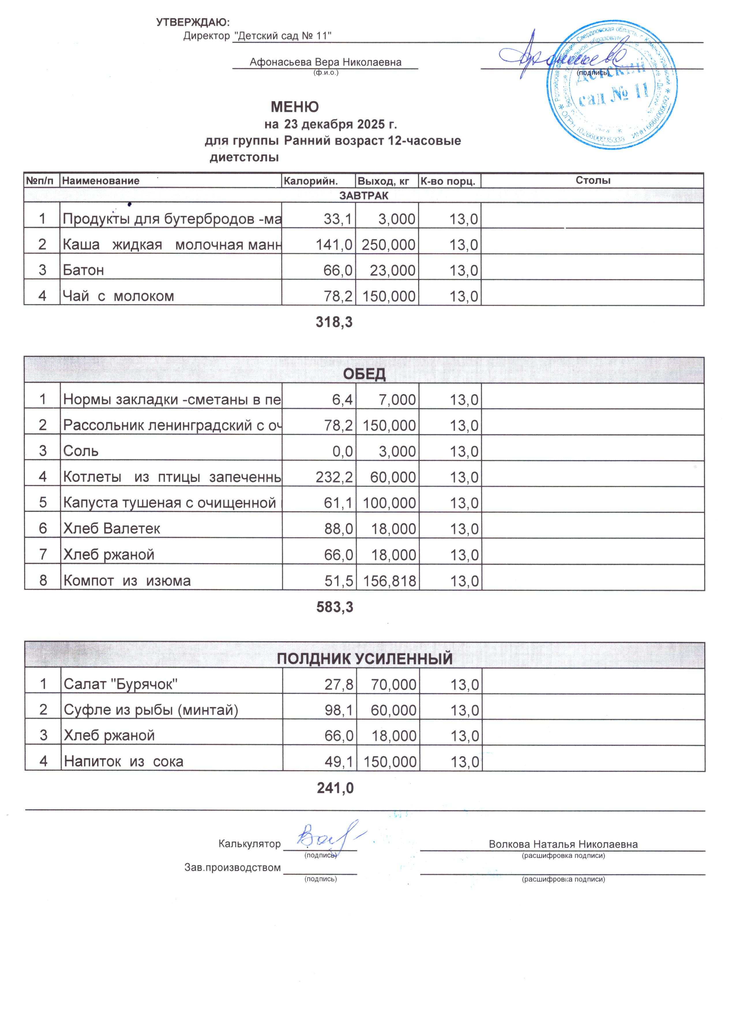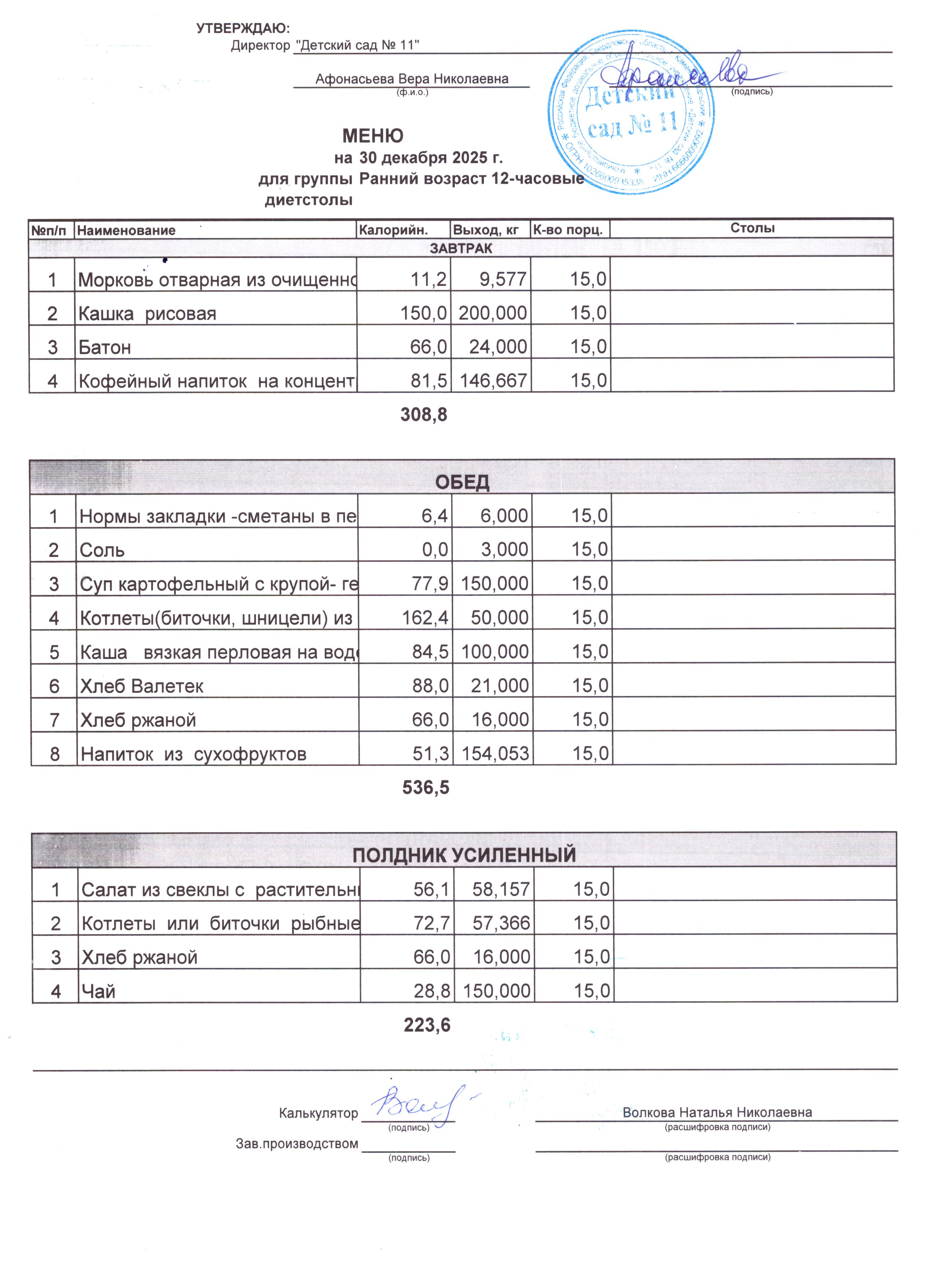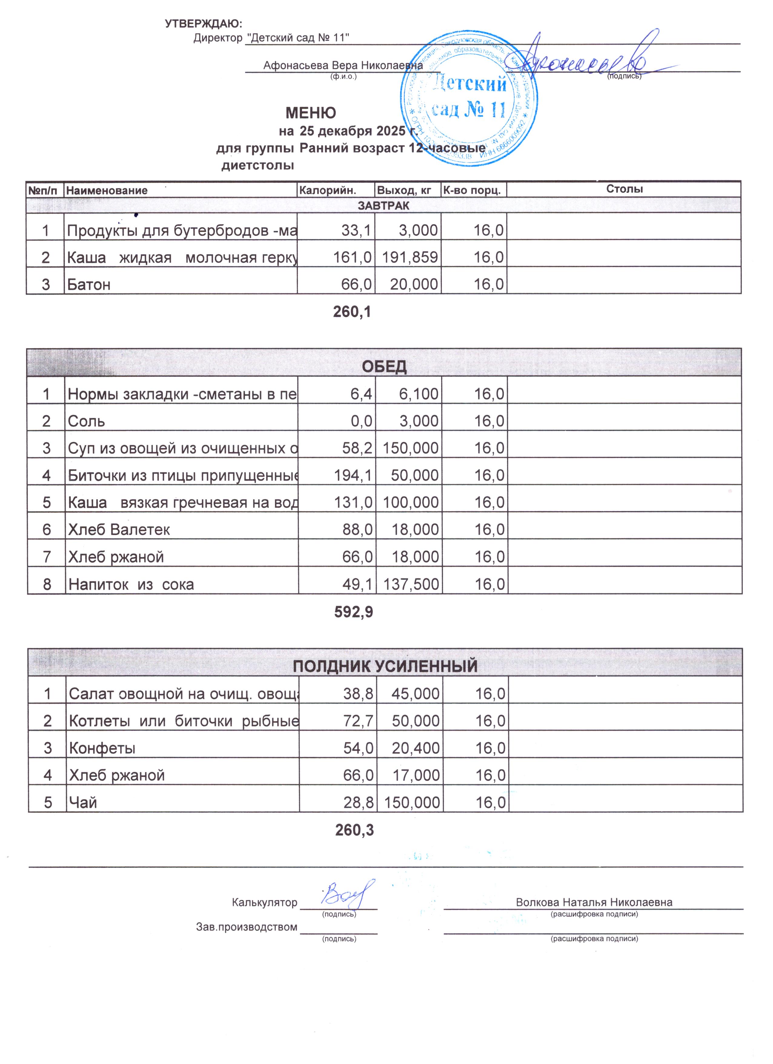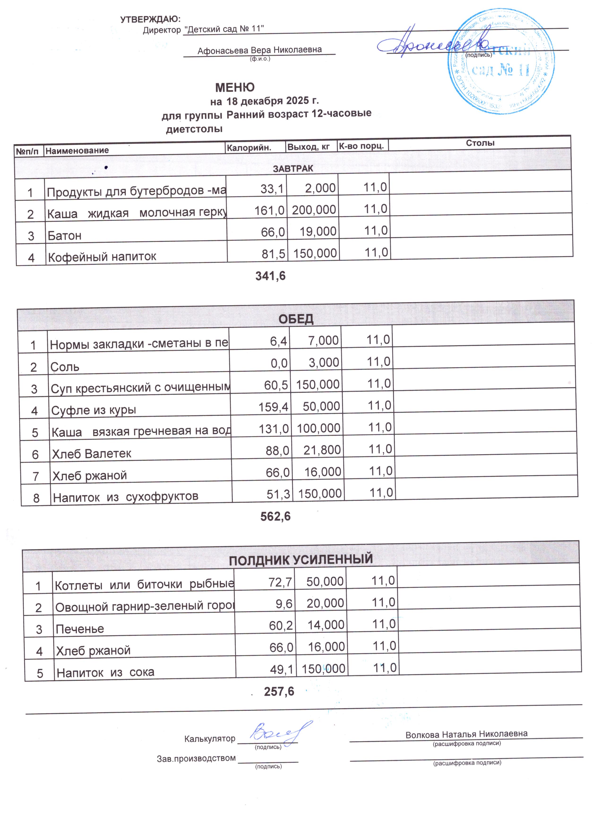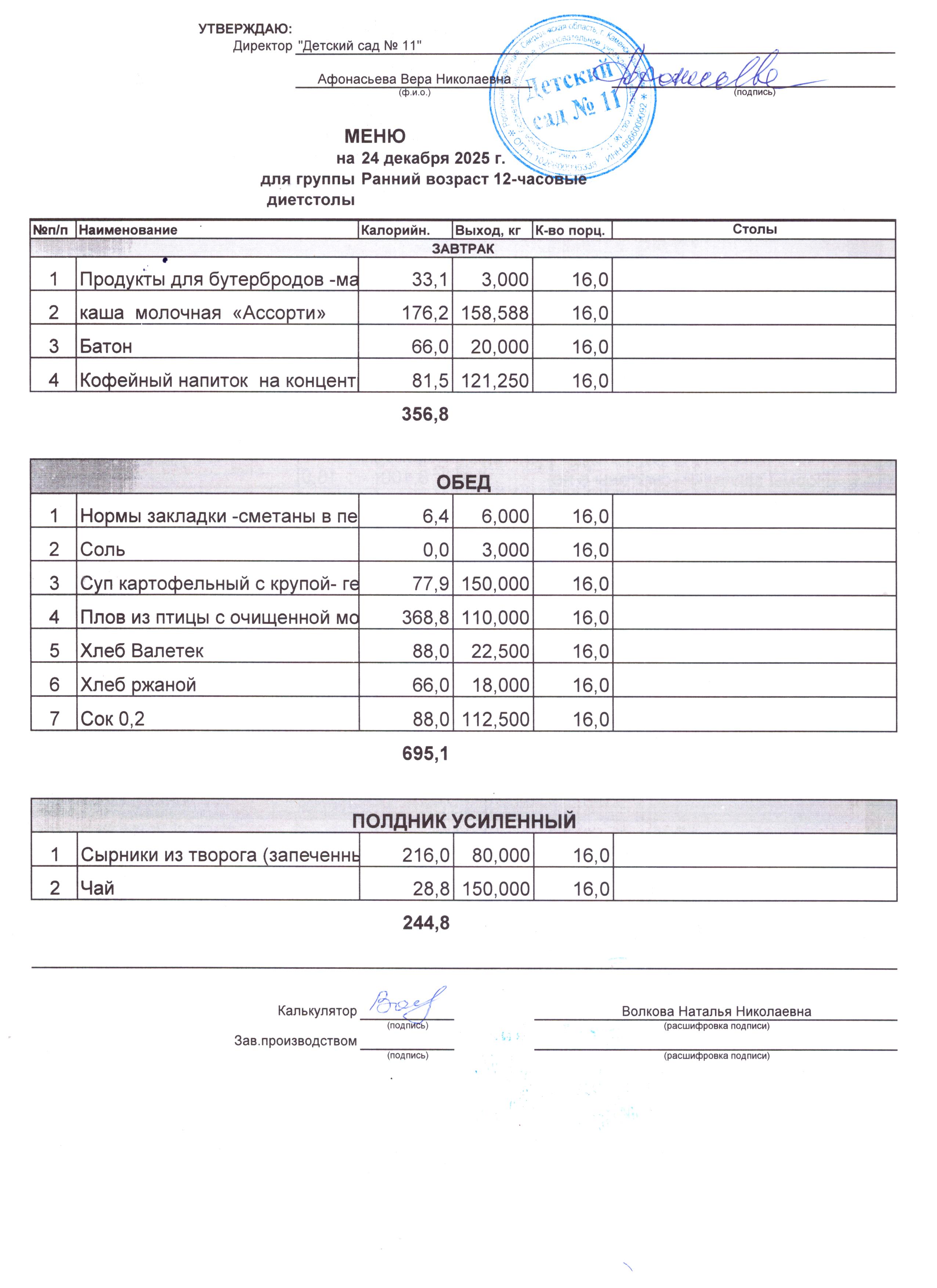 - Соки, фрукты, кисломолочные напитки включены в усиленный полдник.