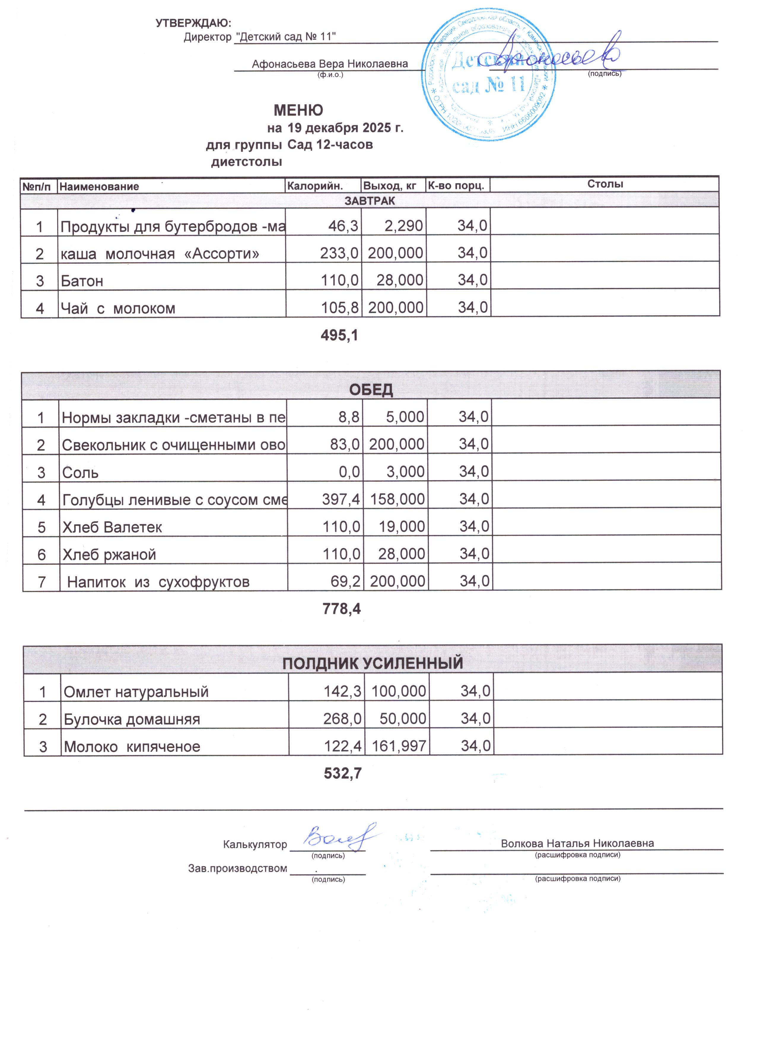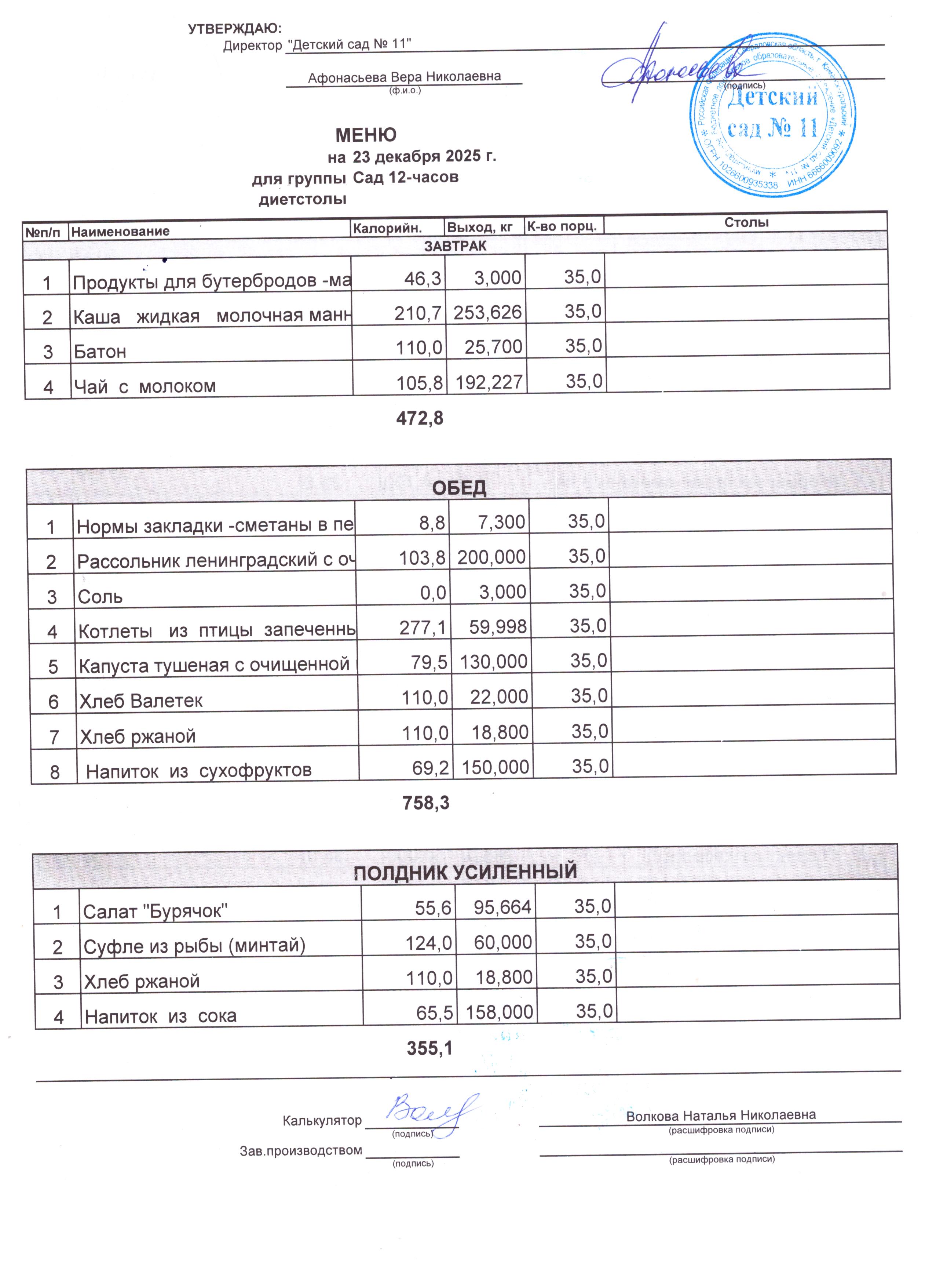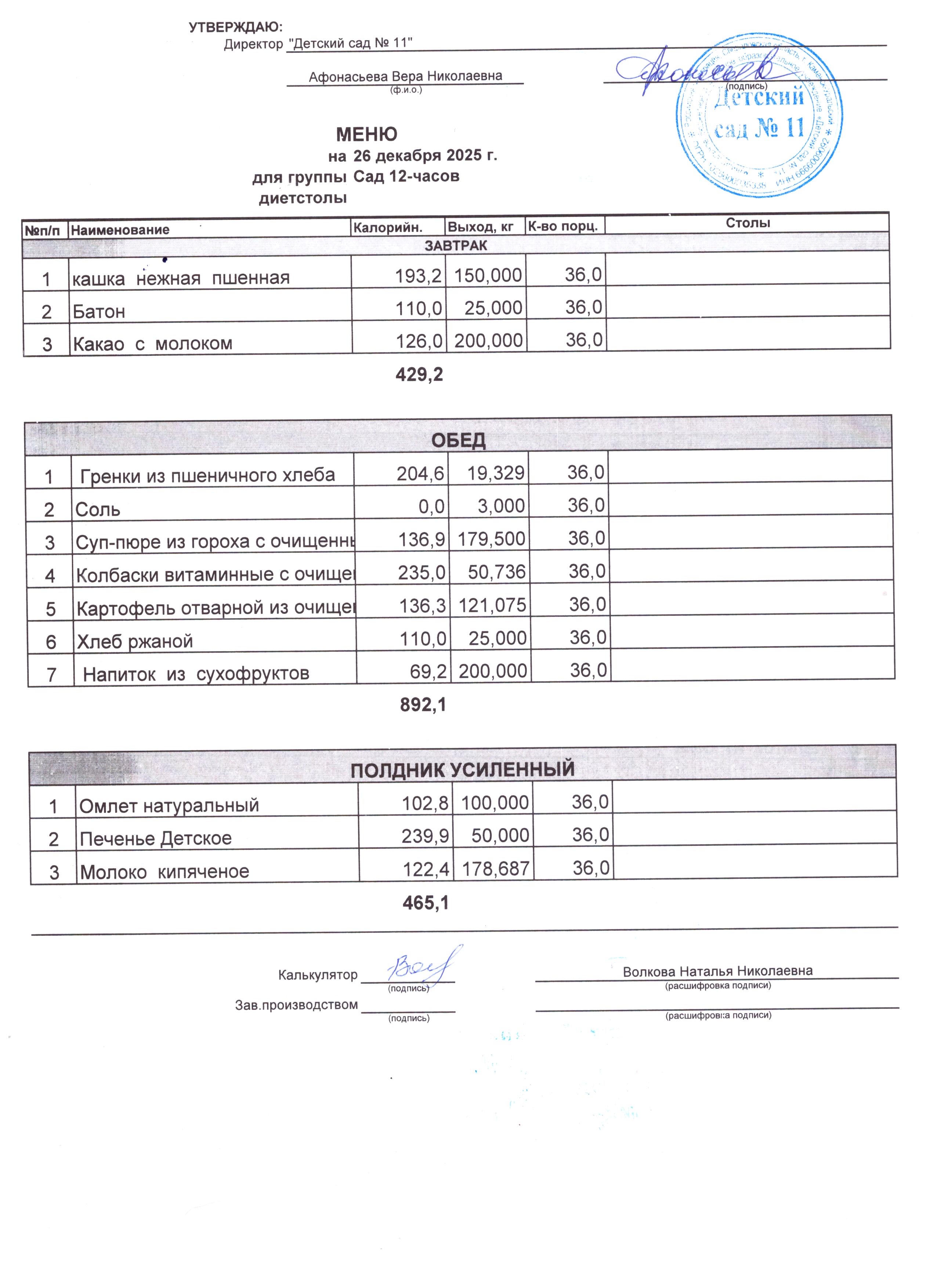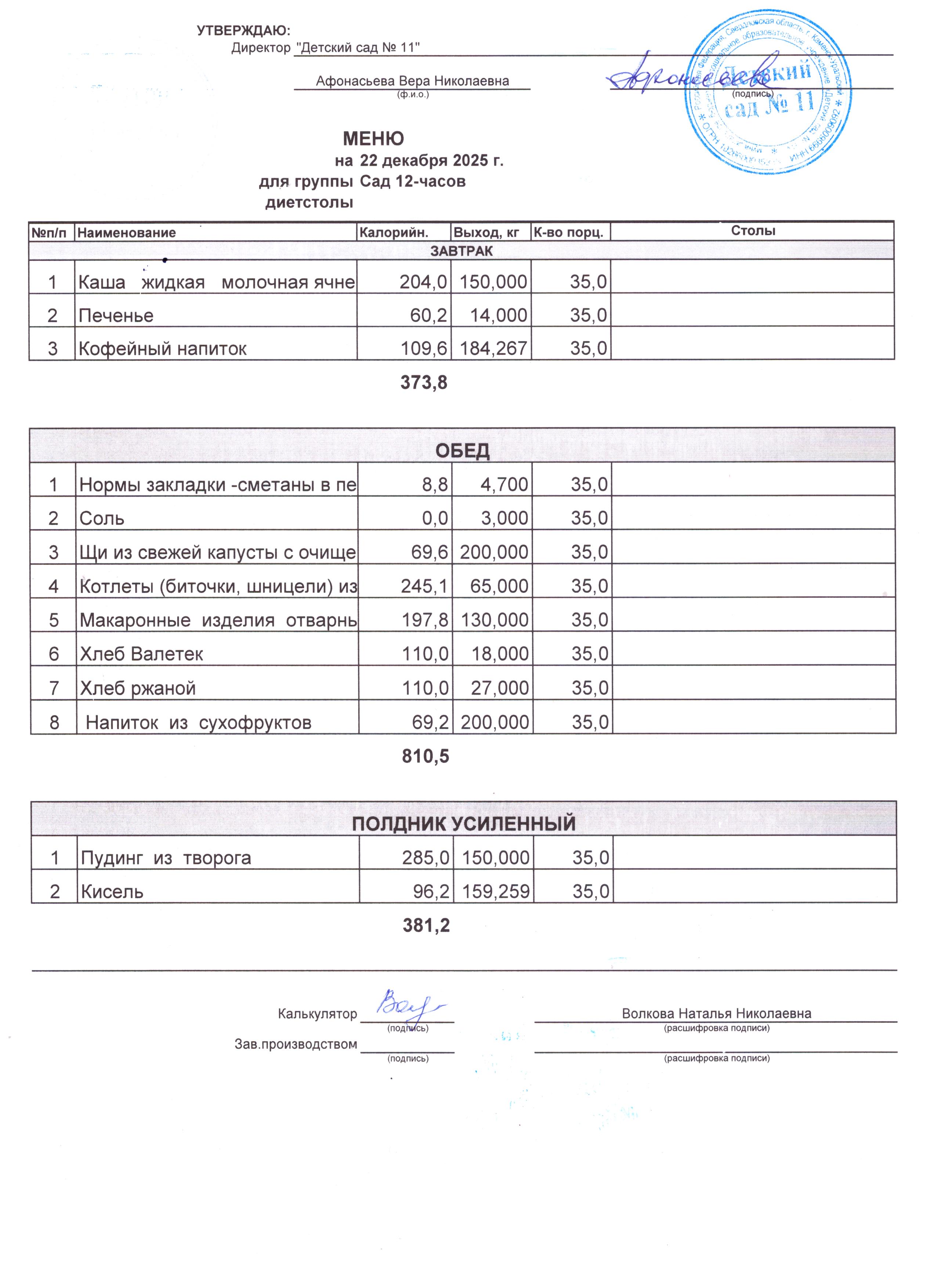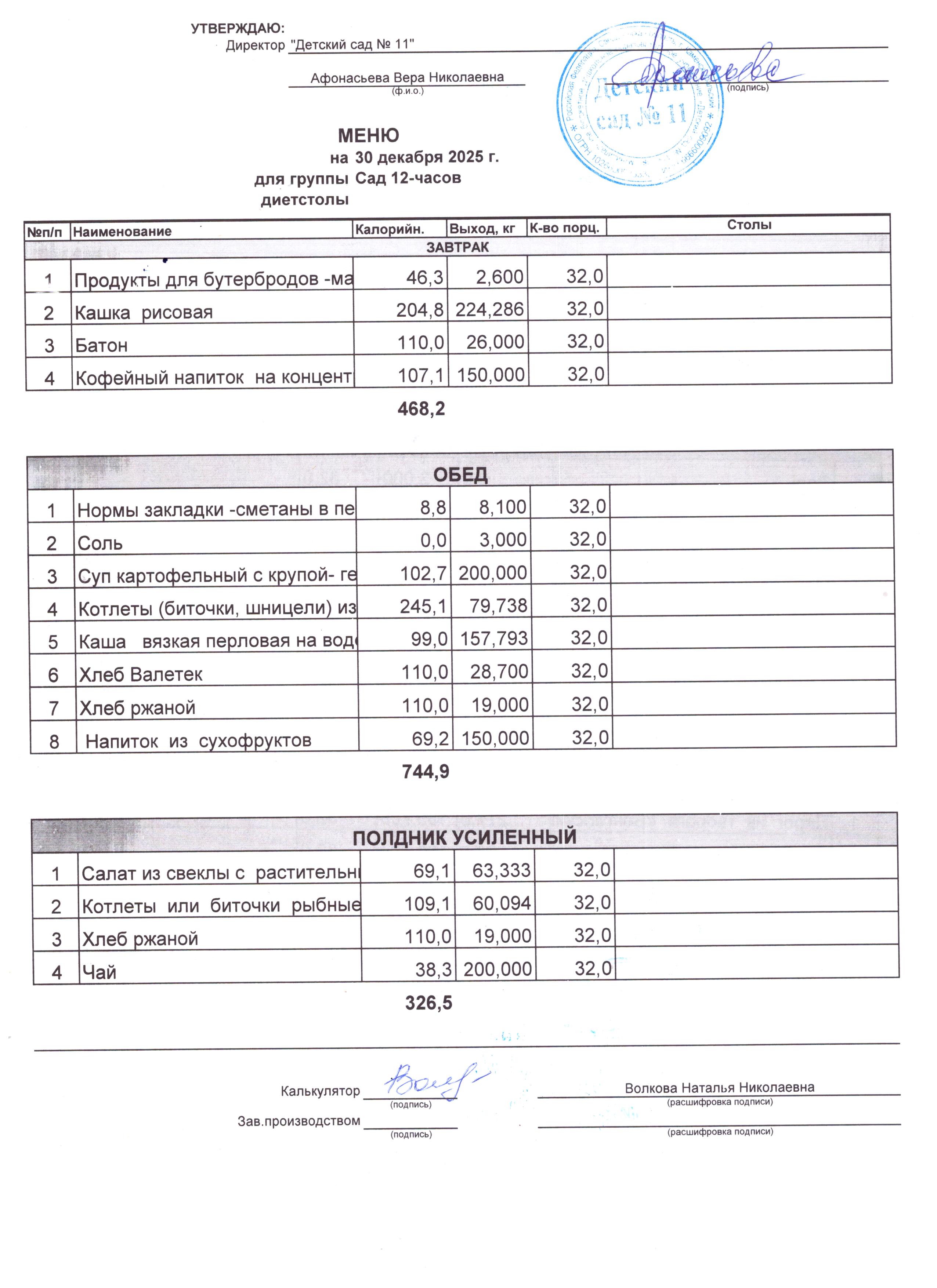 - Соки, фрукты, кисломолочные напитки включены в усиленный полдник.