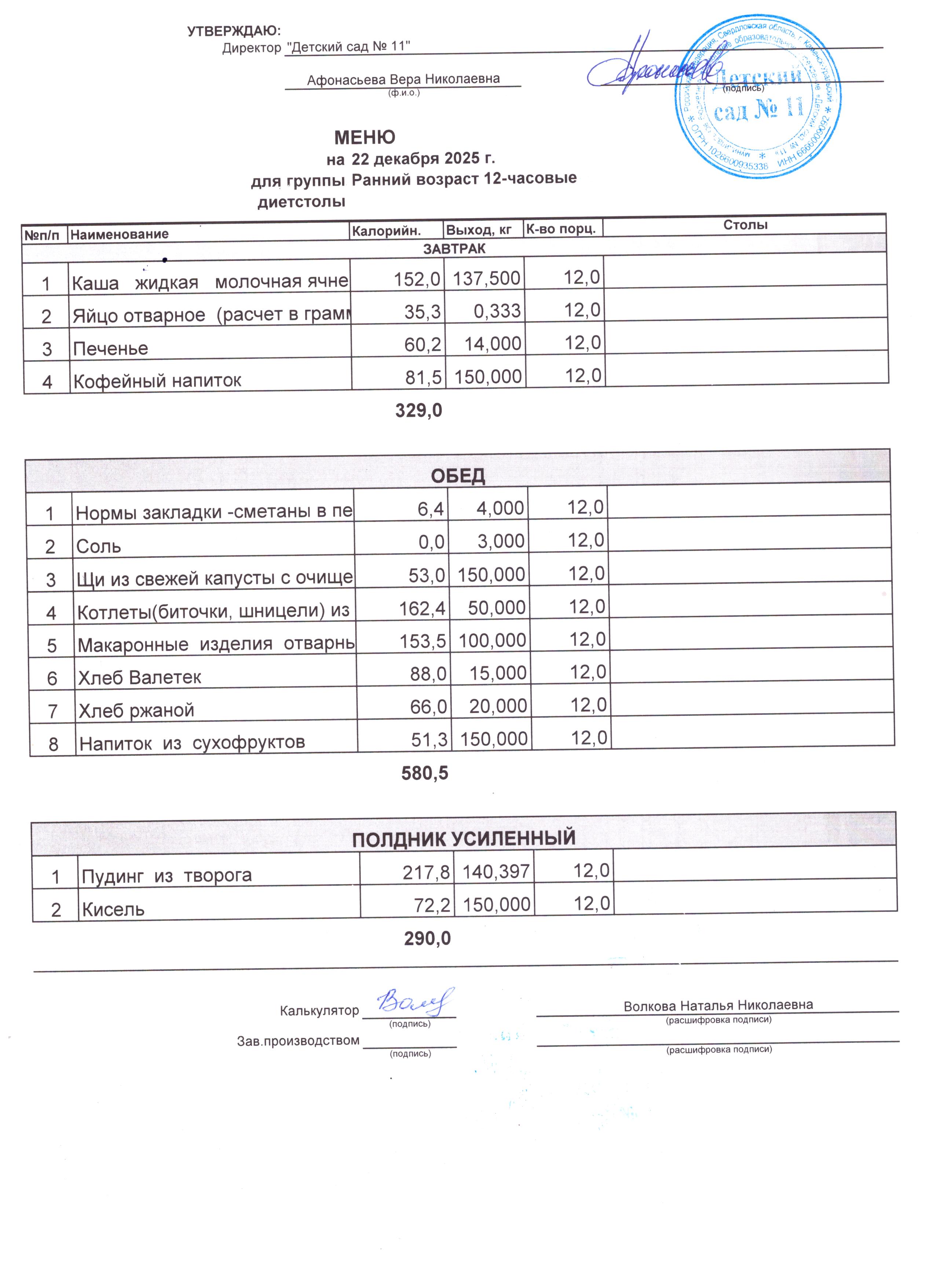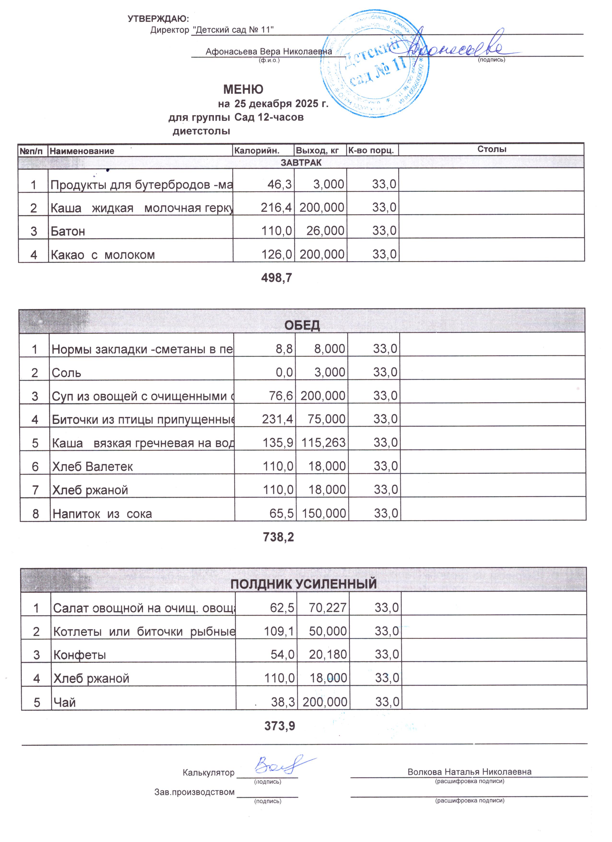 2) выдача детям рационов питания осуществляться в соответствии с утвержденными индивидуальными меню, под контролем ответственных лиц, назначенных в детском саду.