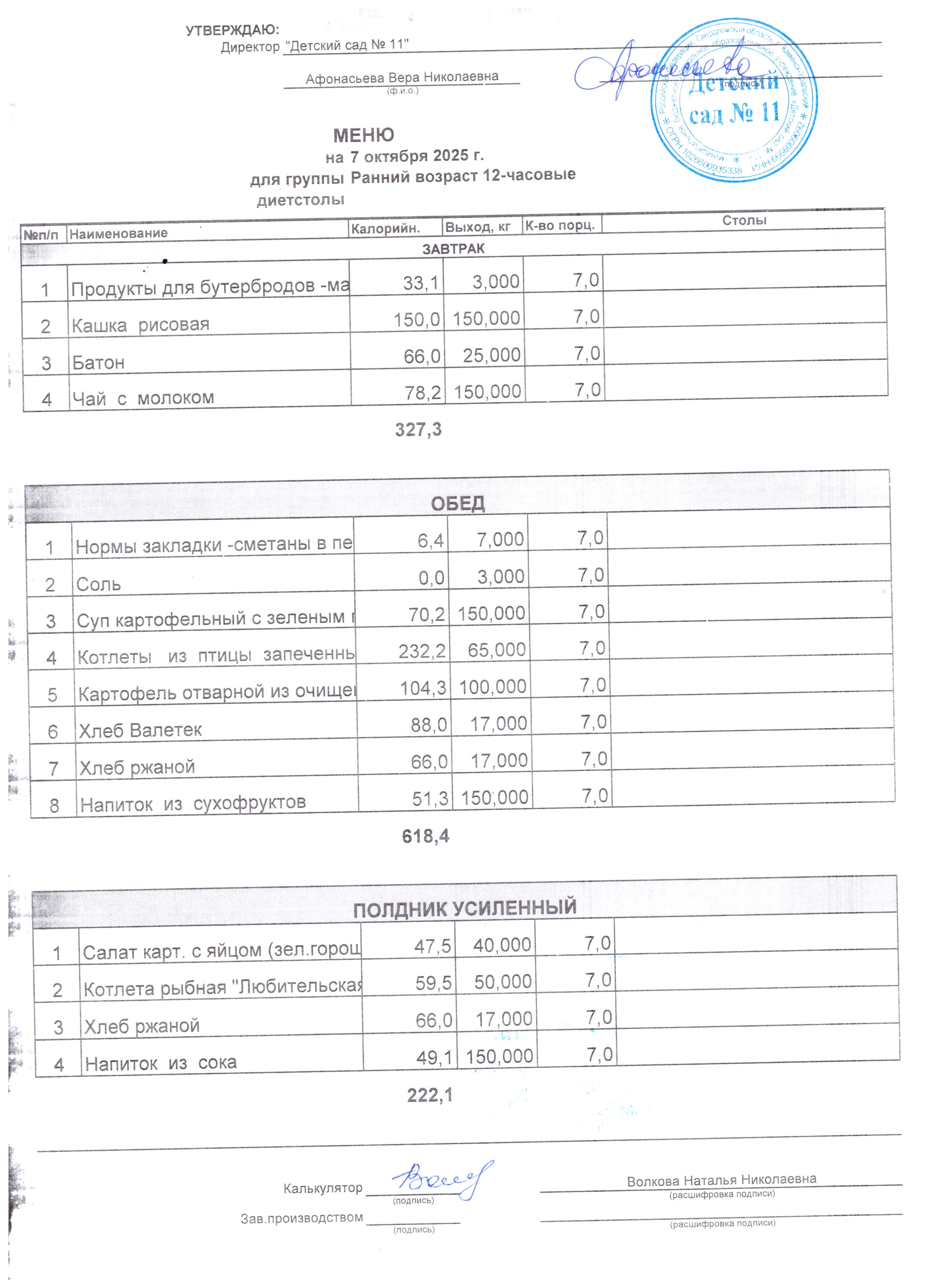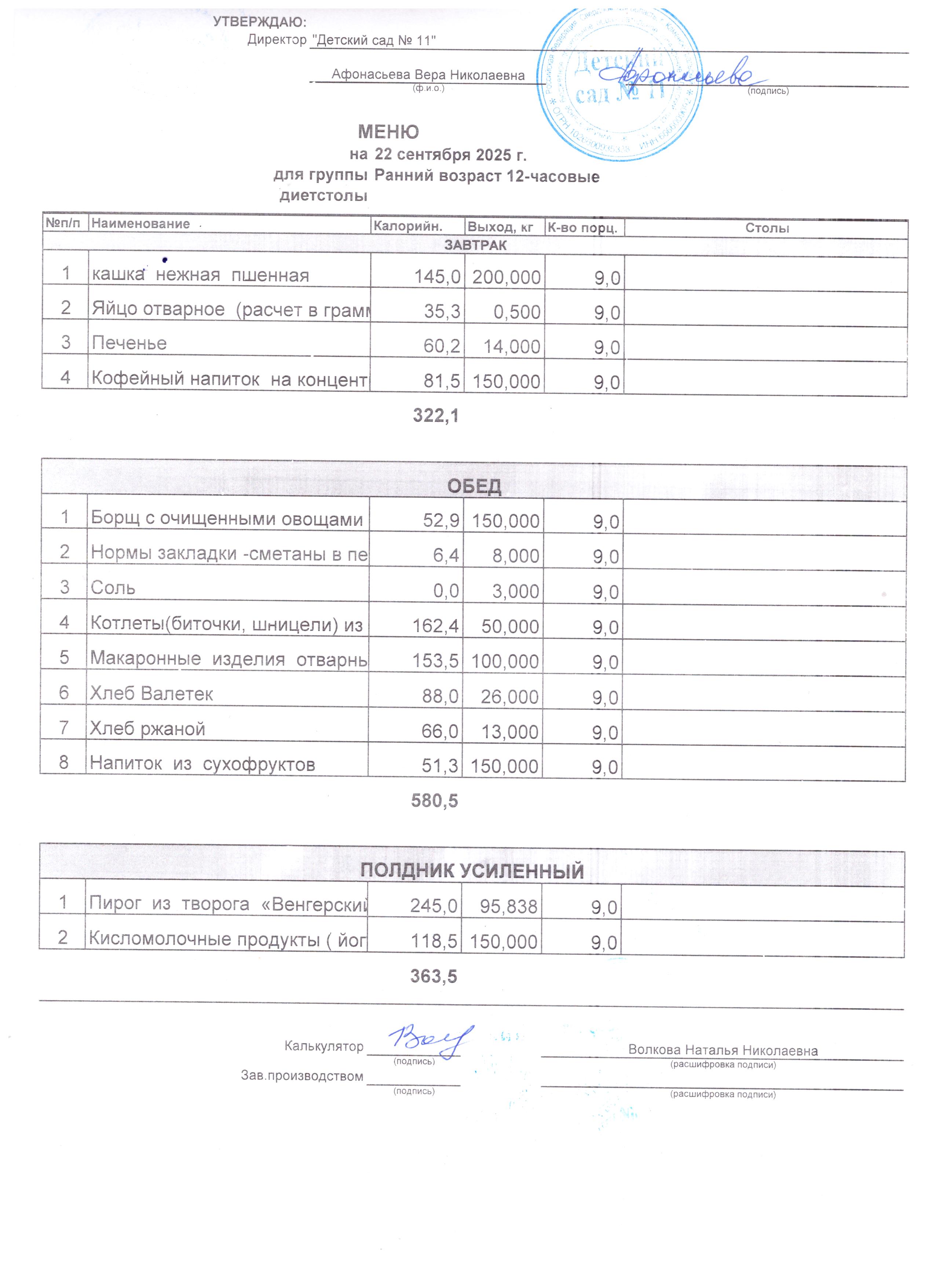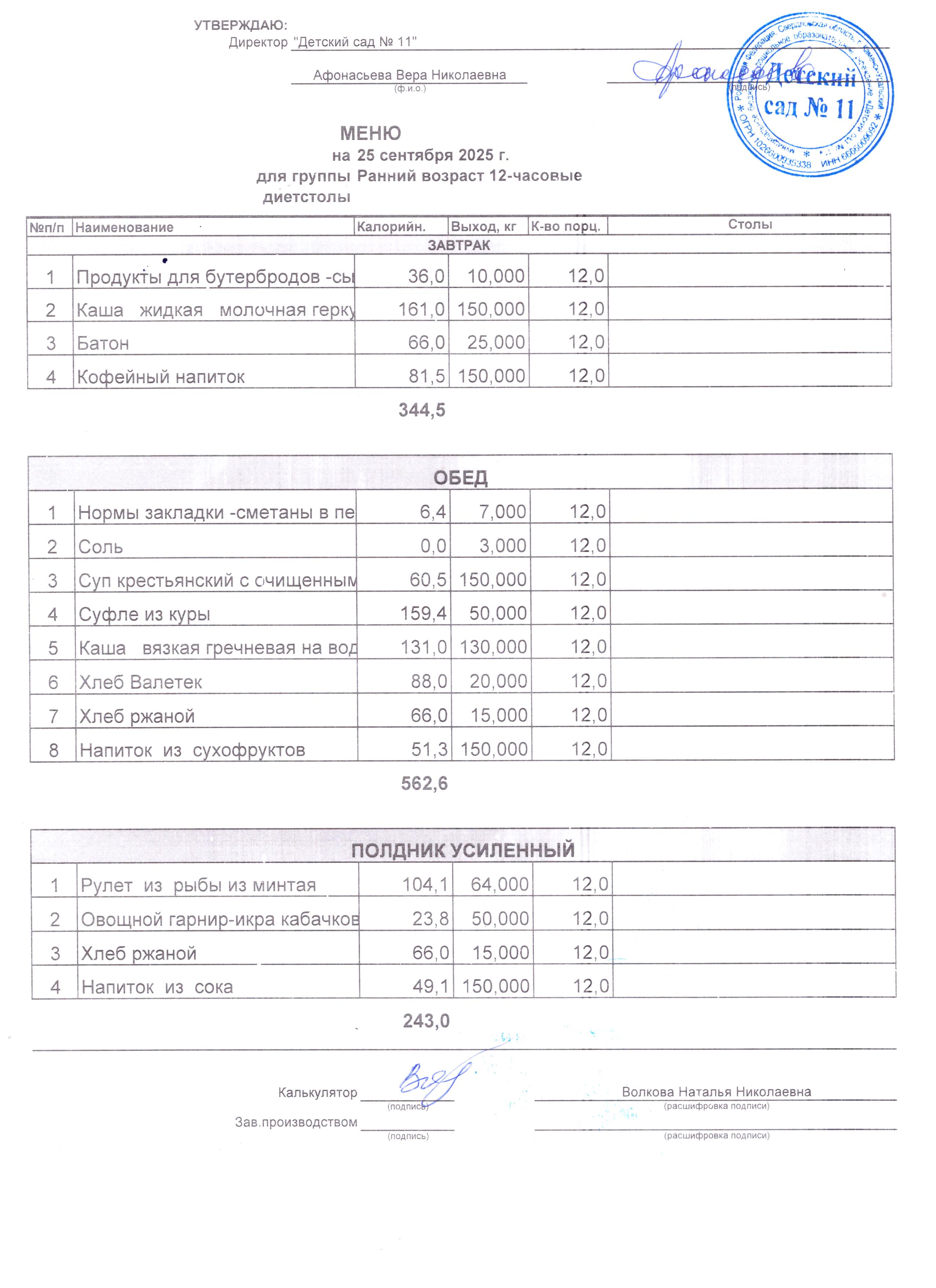 - Соки, фрукты, кисломолочные напитки включены в усиленный полдник.