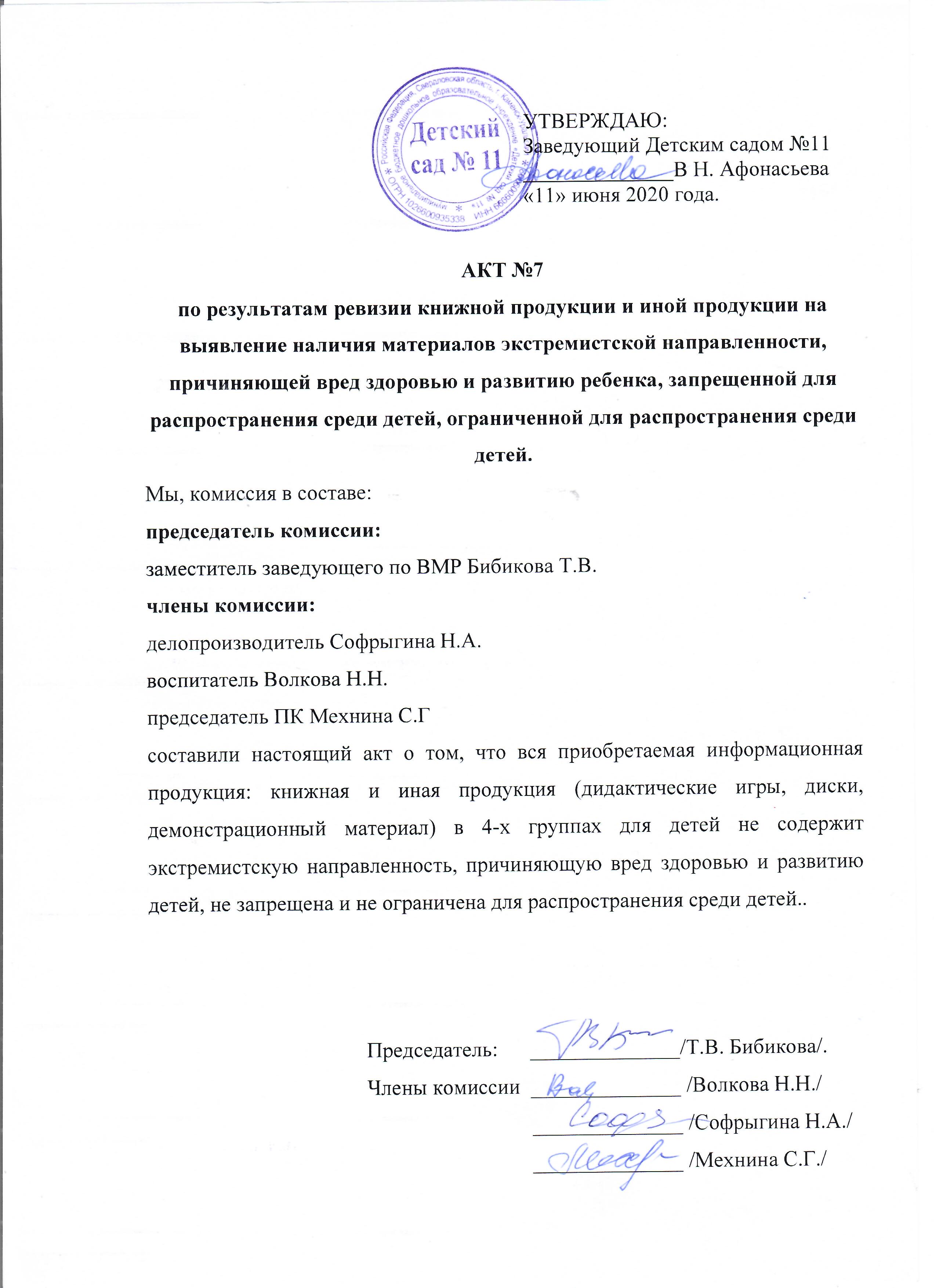 Акт по результатам ревизии книжной продукции от 11.06.2020 г