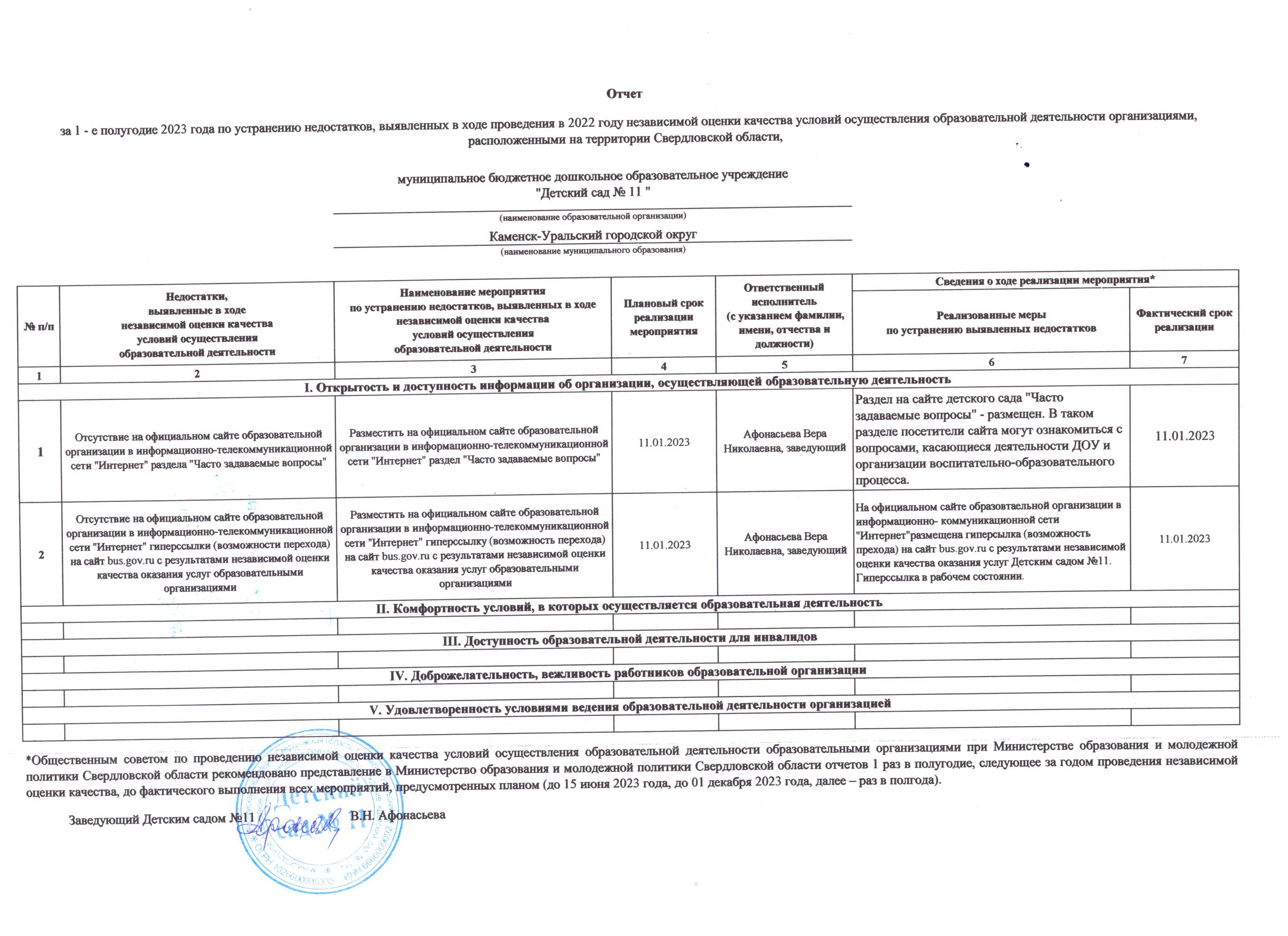 Отчет за первое полугодие 2022 г. по устранению недостатков, выявленных в ходе НОК в 2019 году