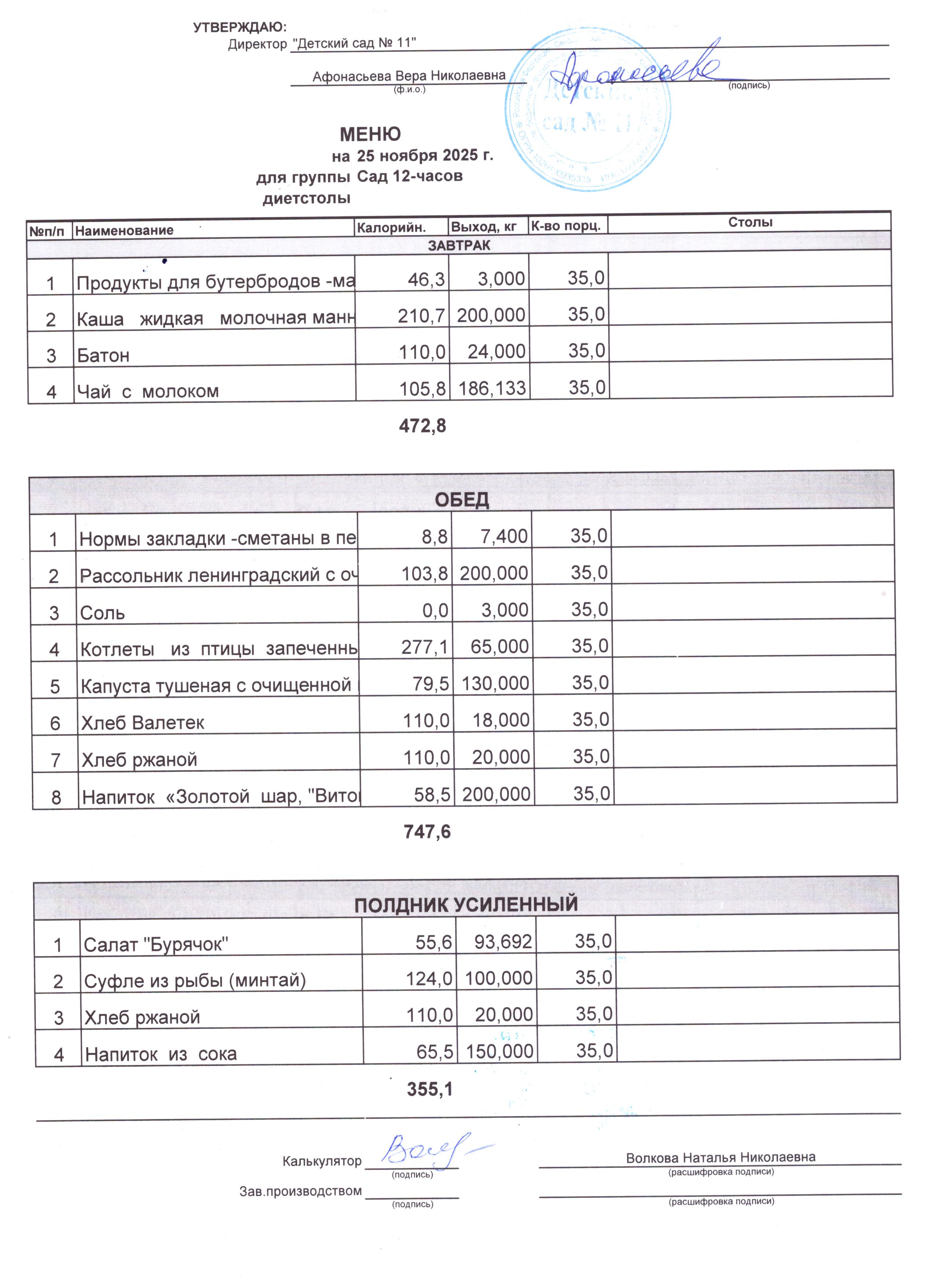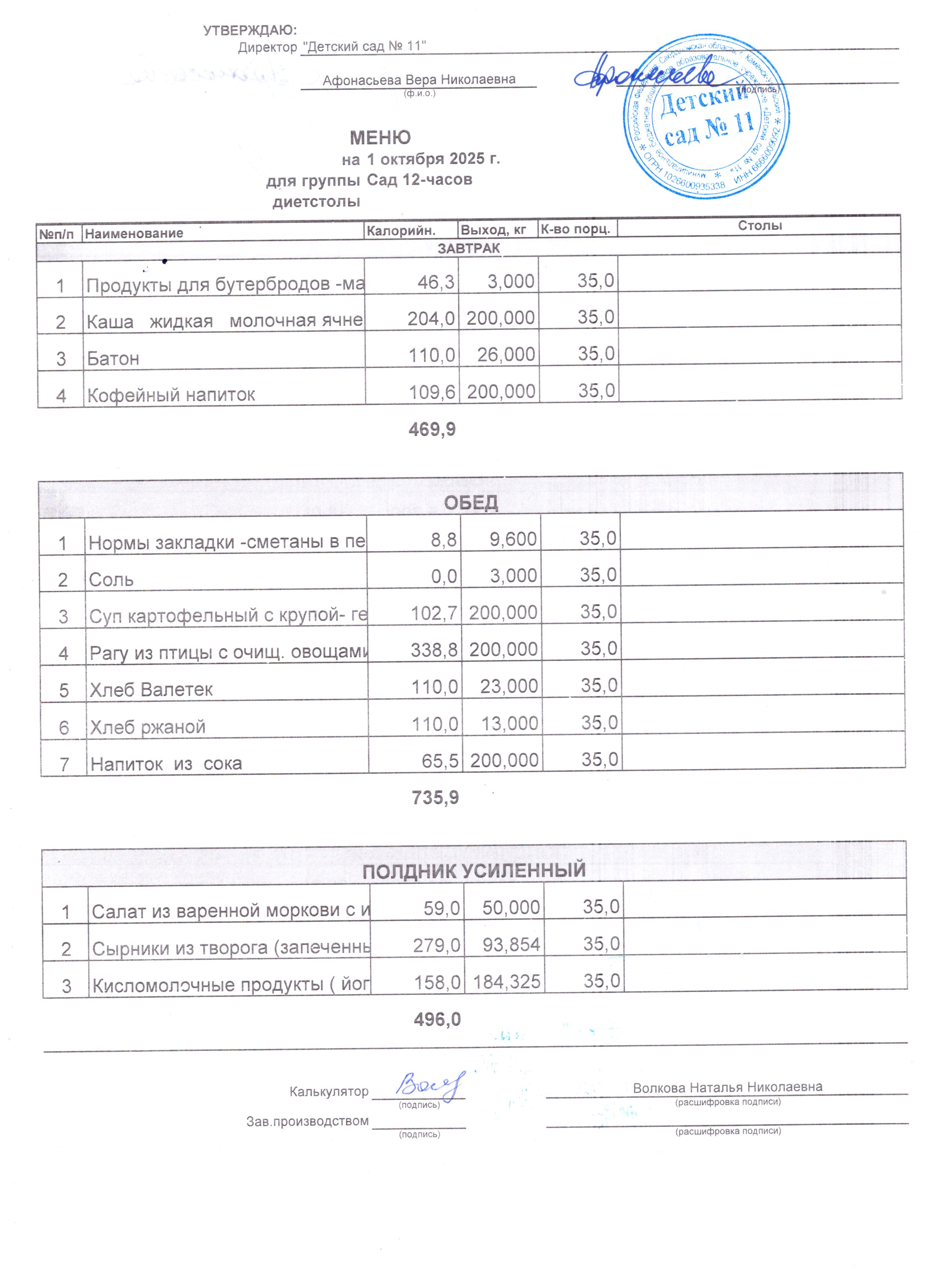 Обед - 35%, усиленный полдник -30%.