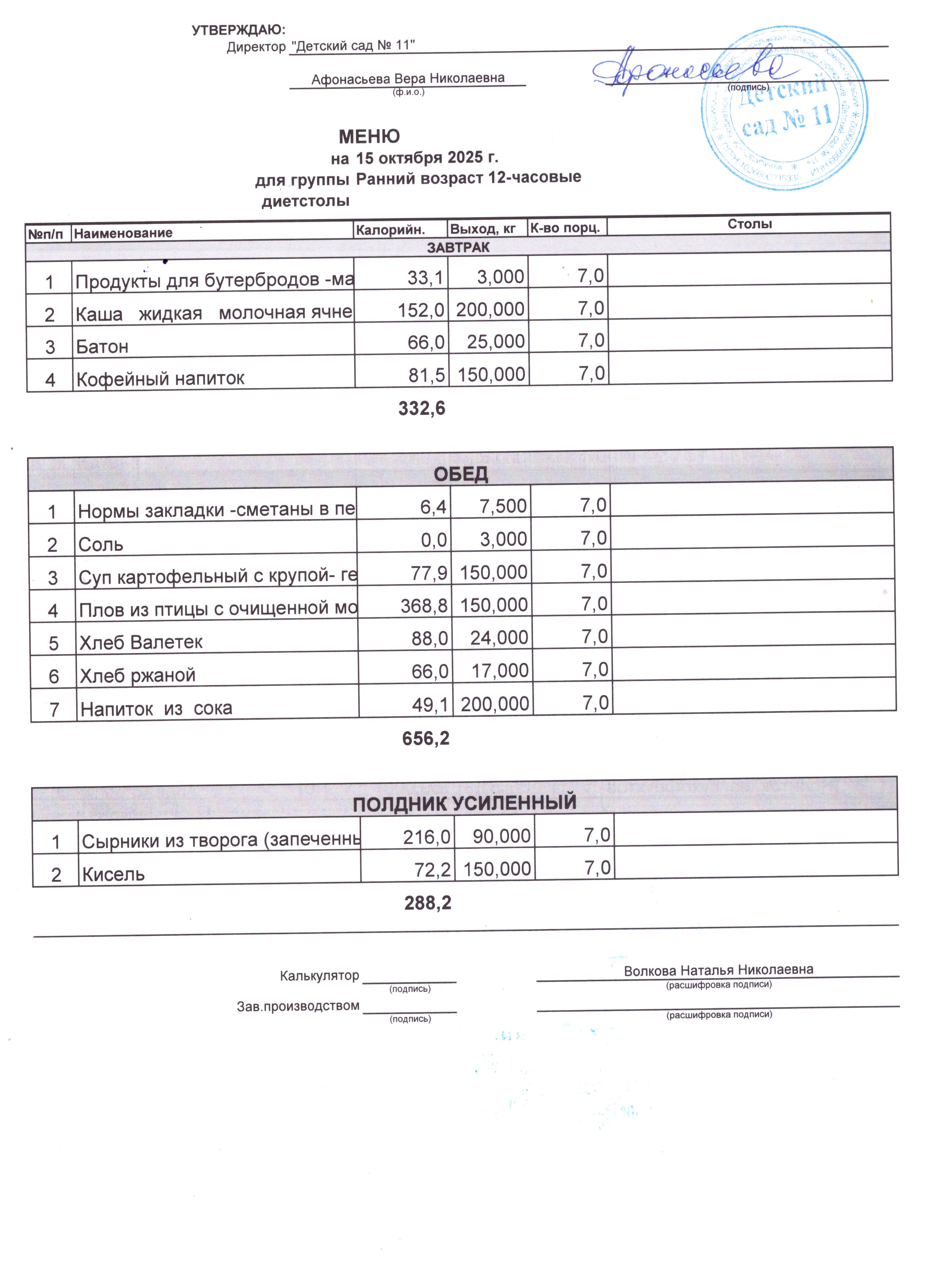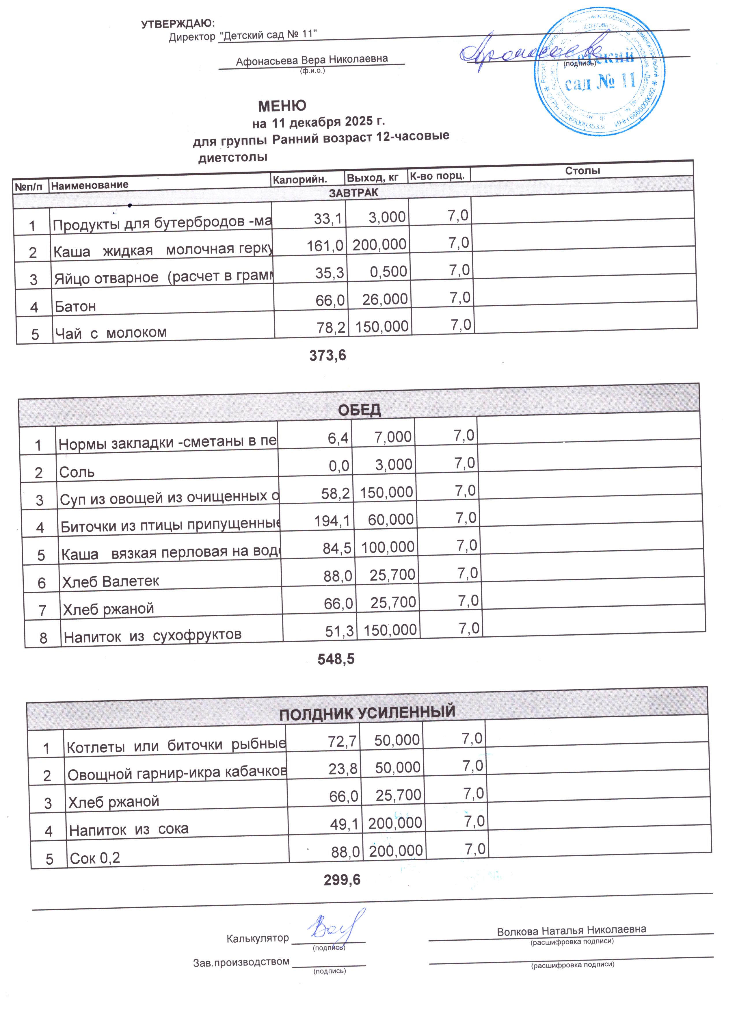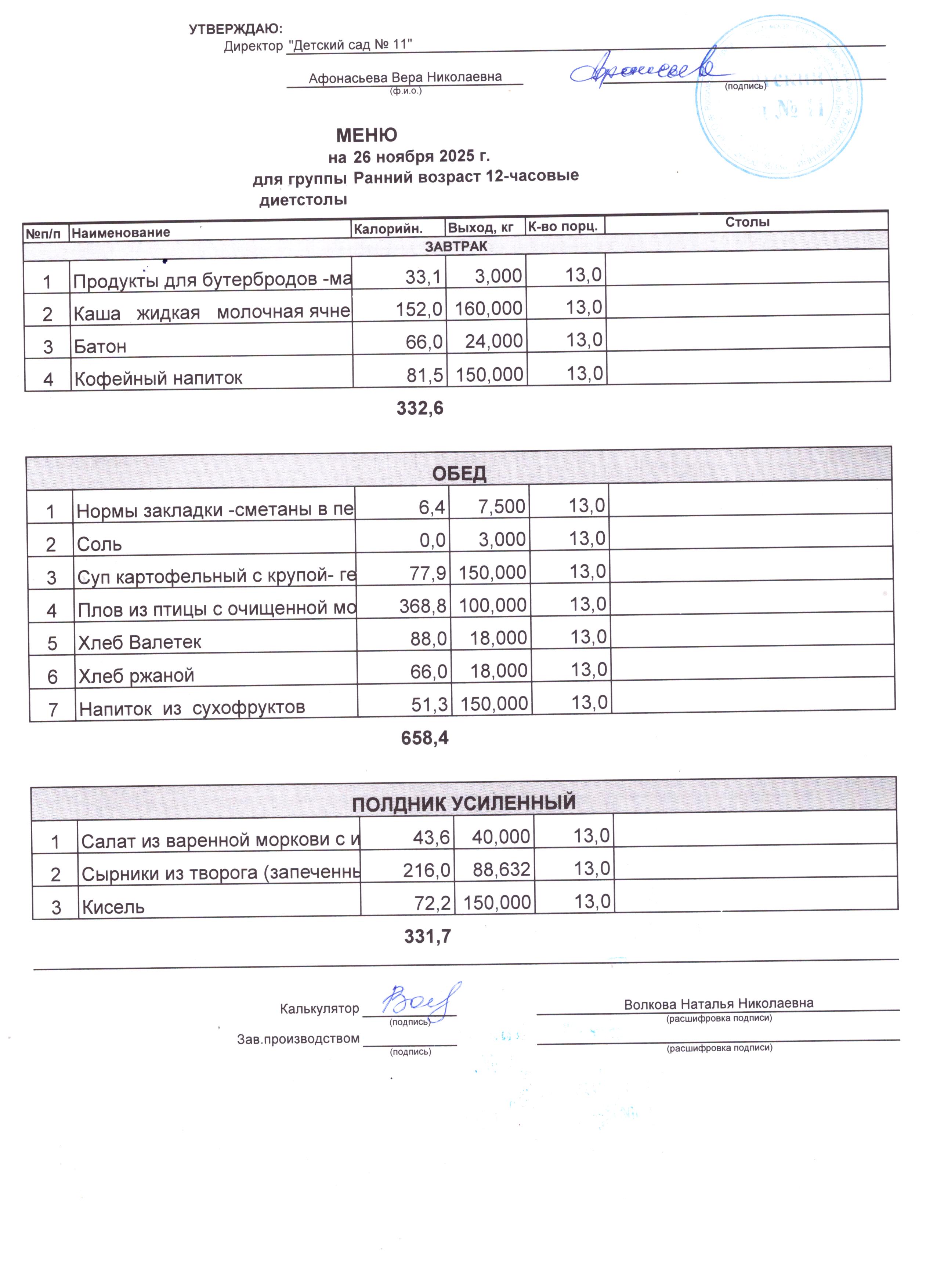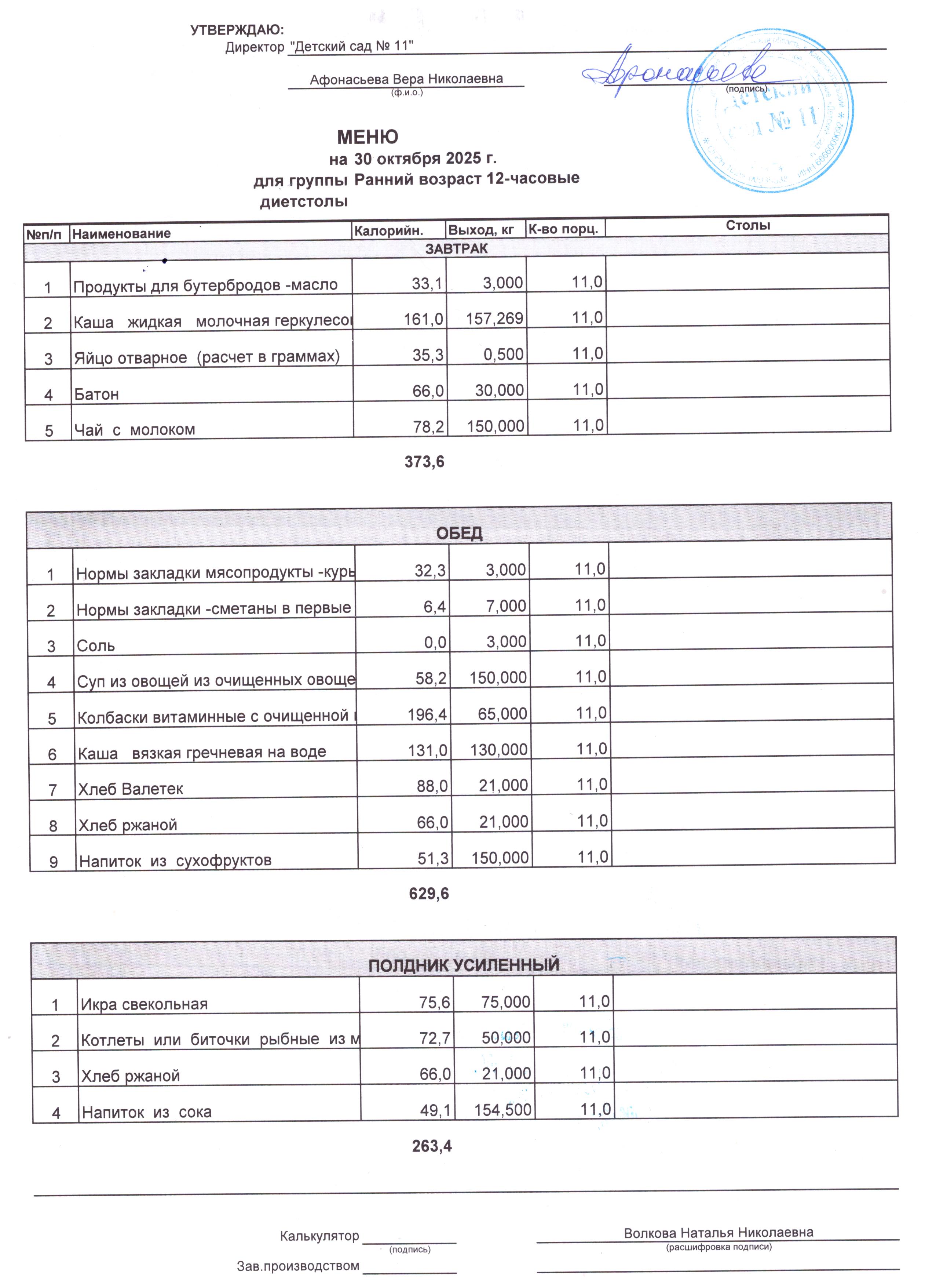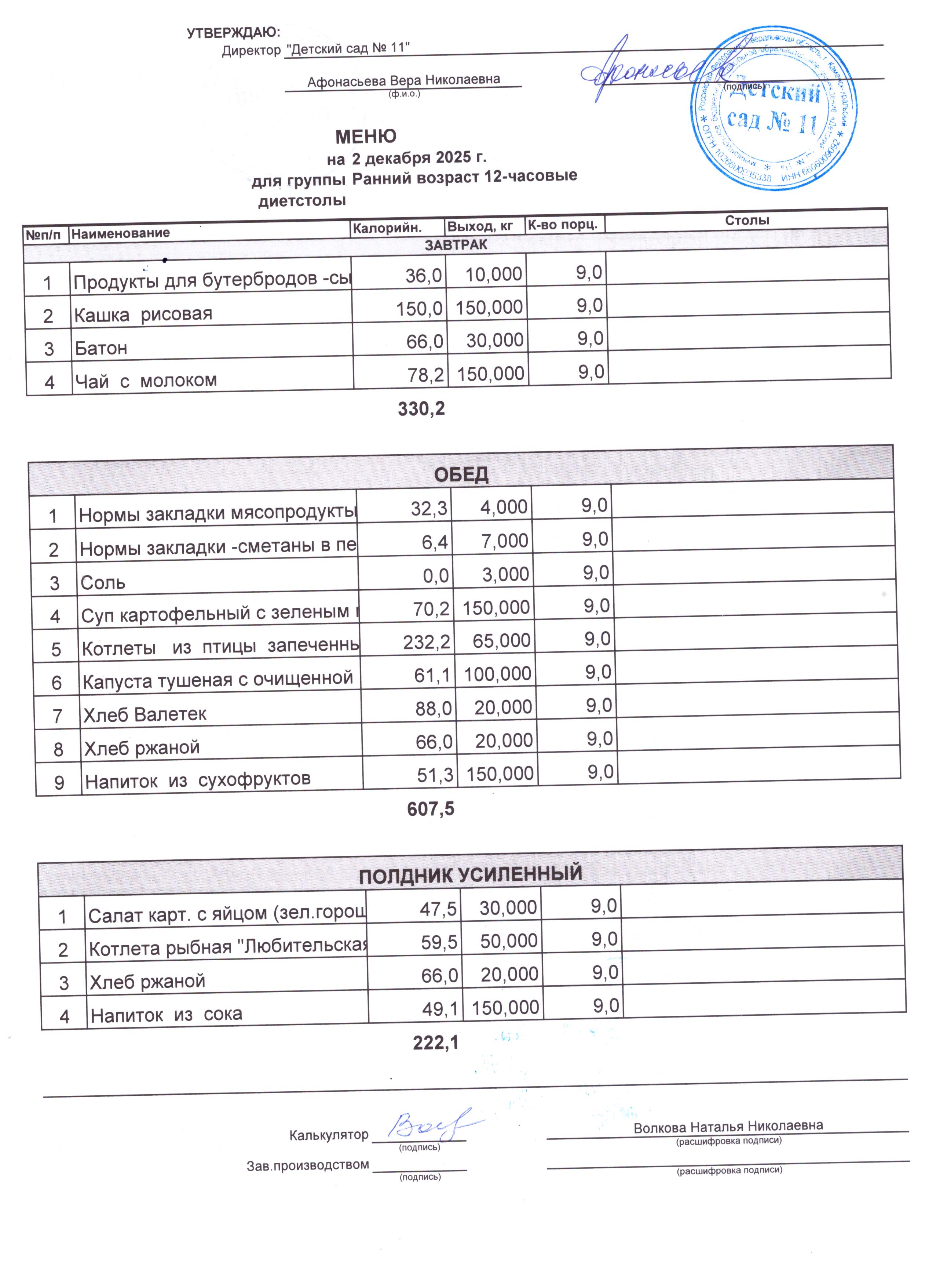 - Соки, фрукты, кисломолочные напитки включены в усиленный полдник.