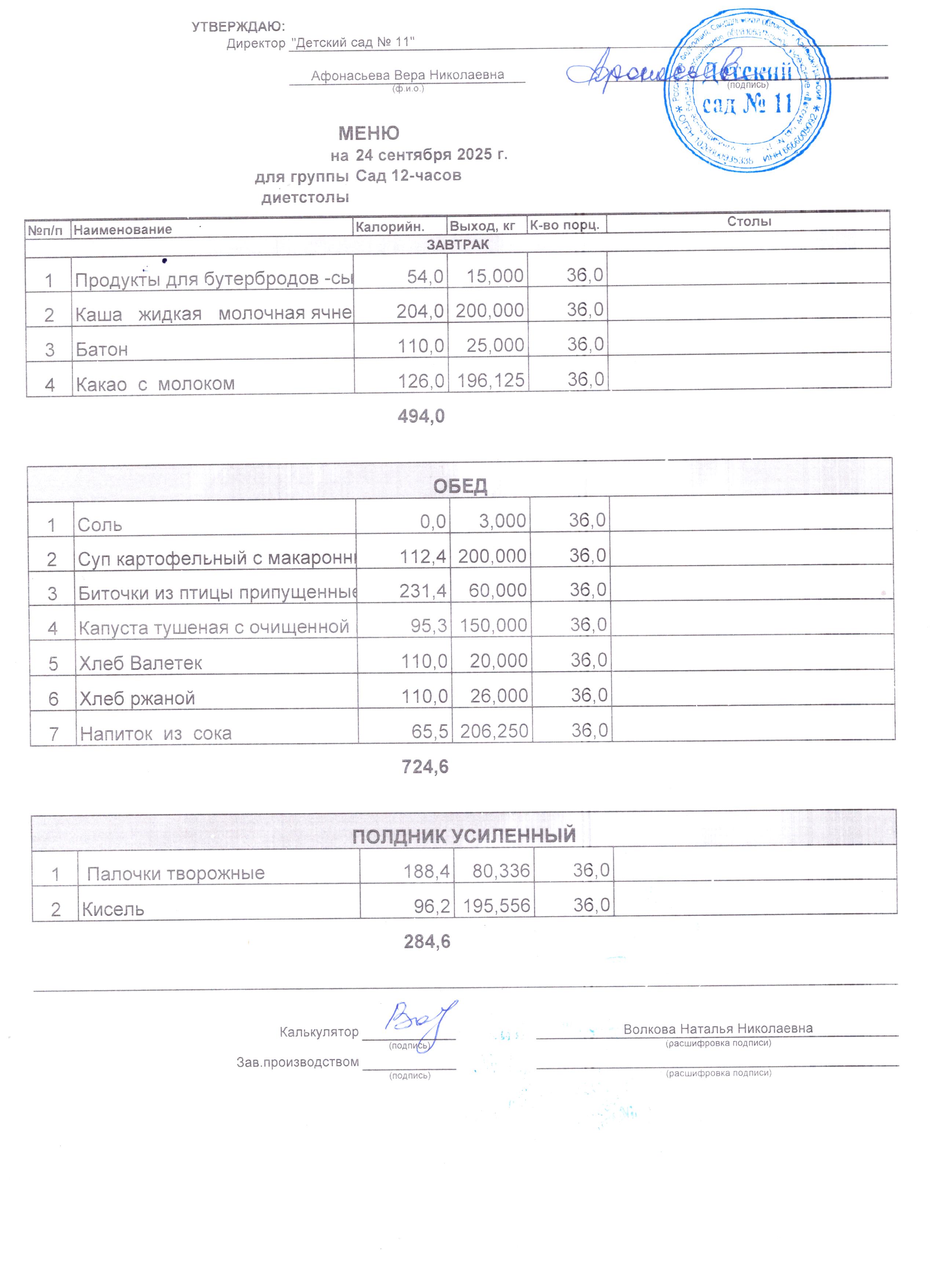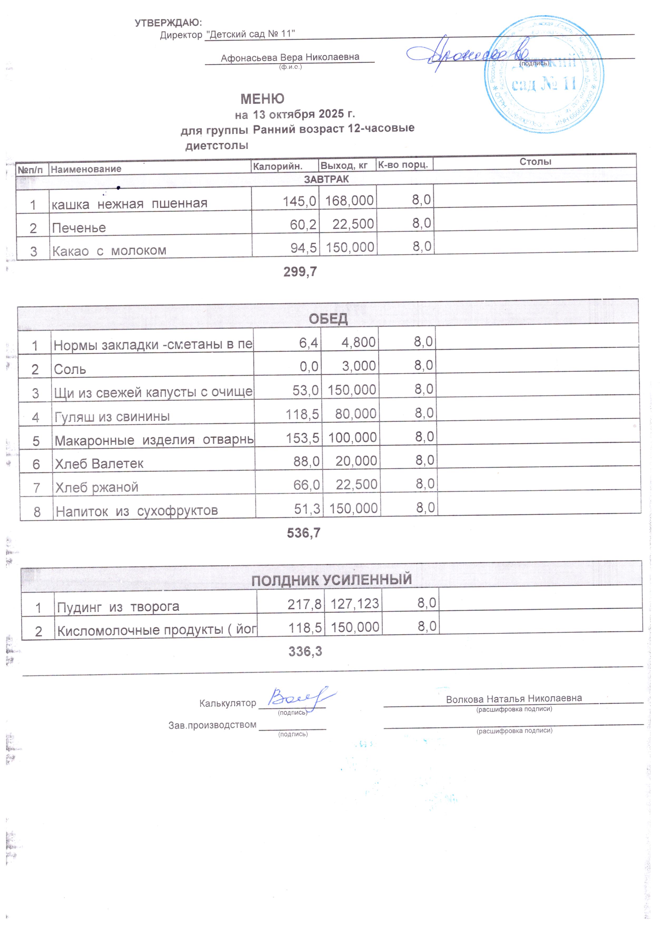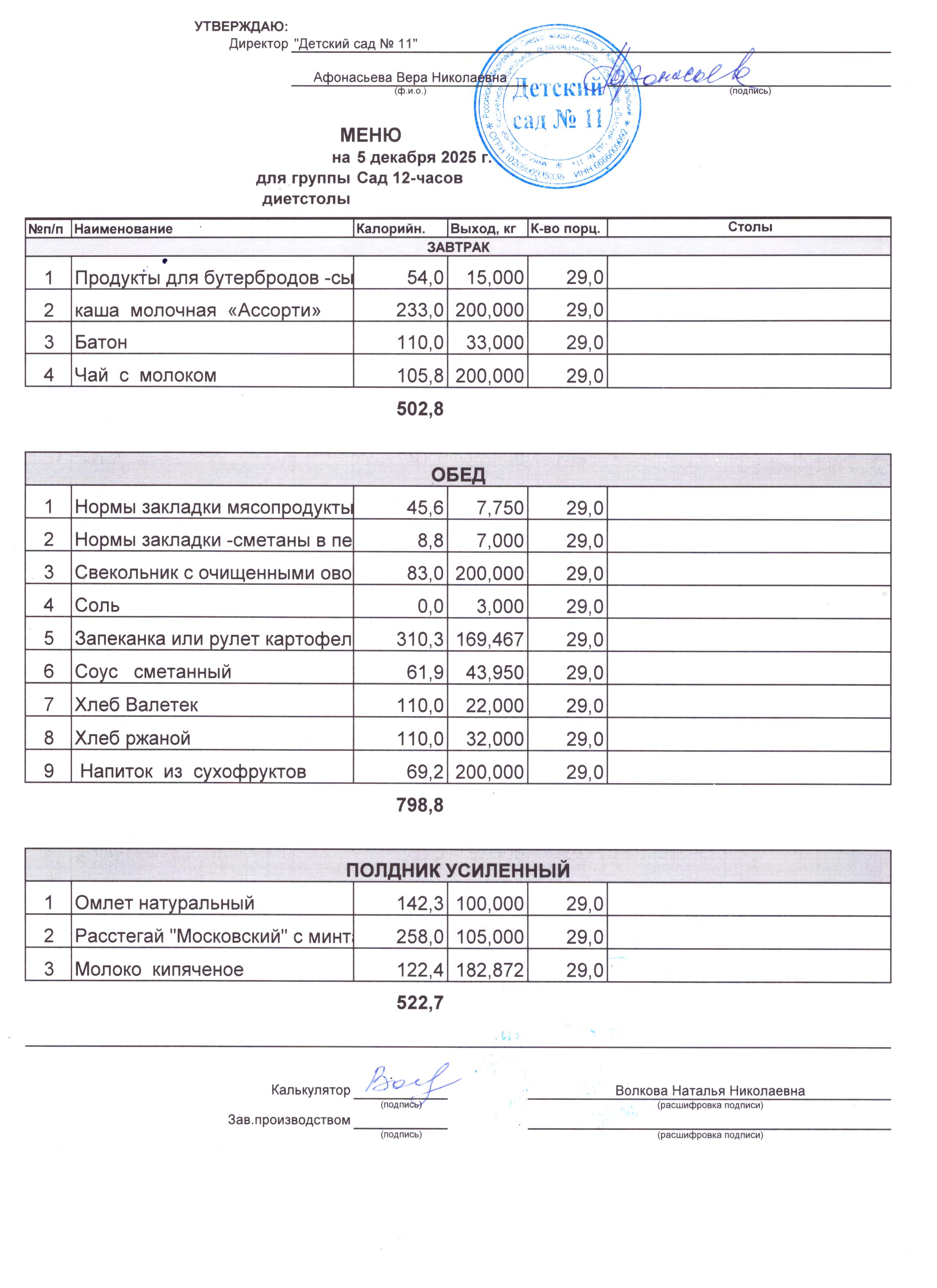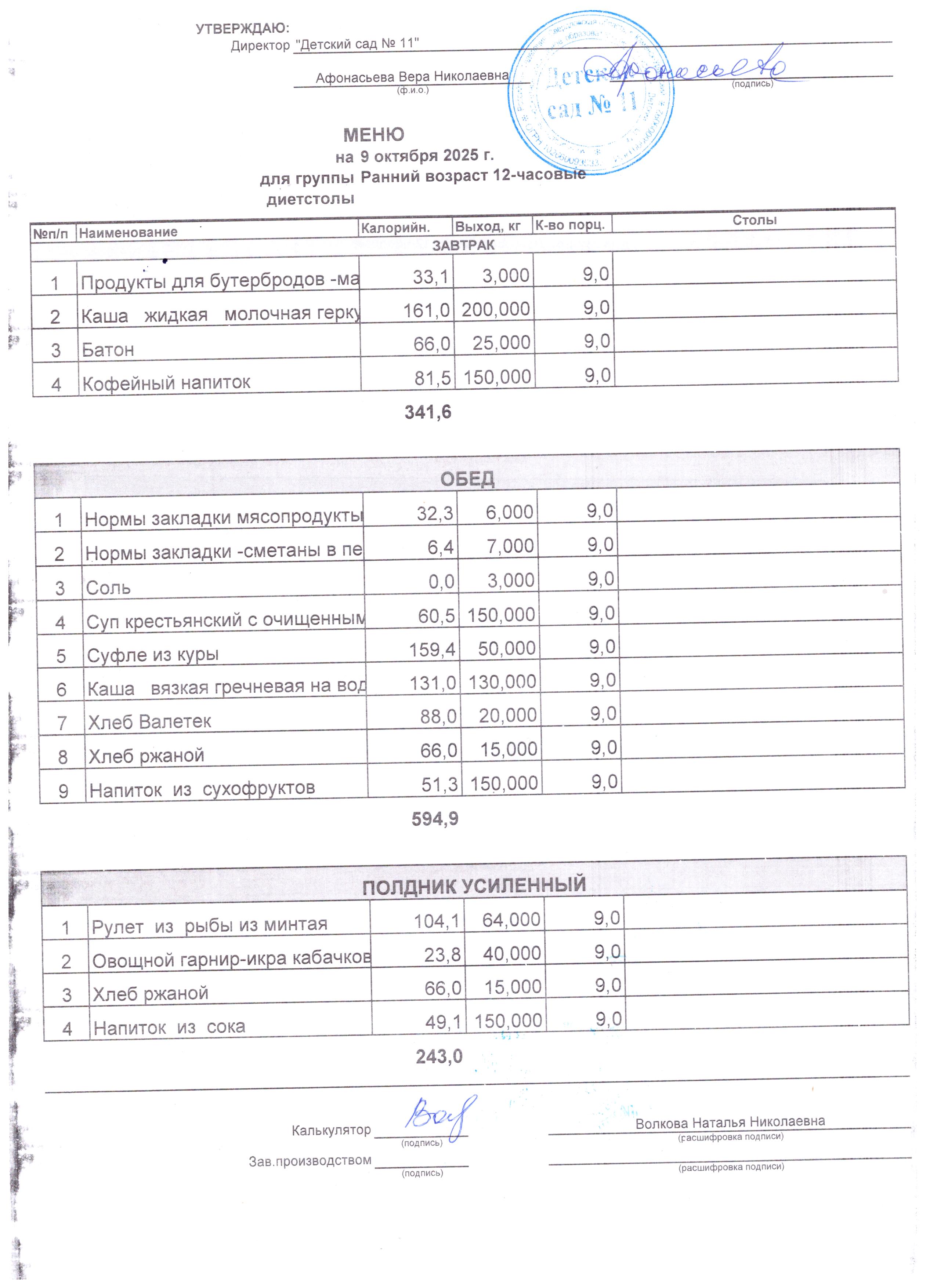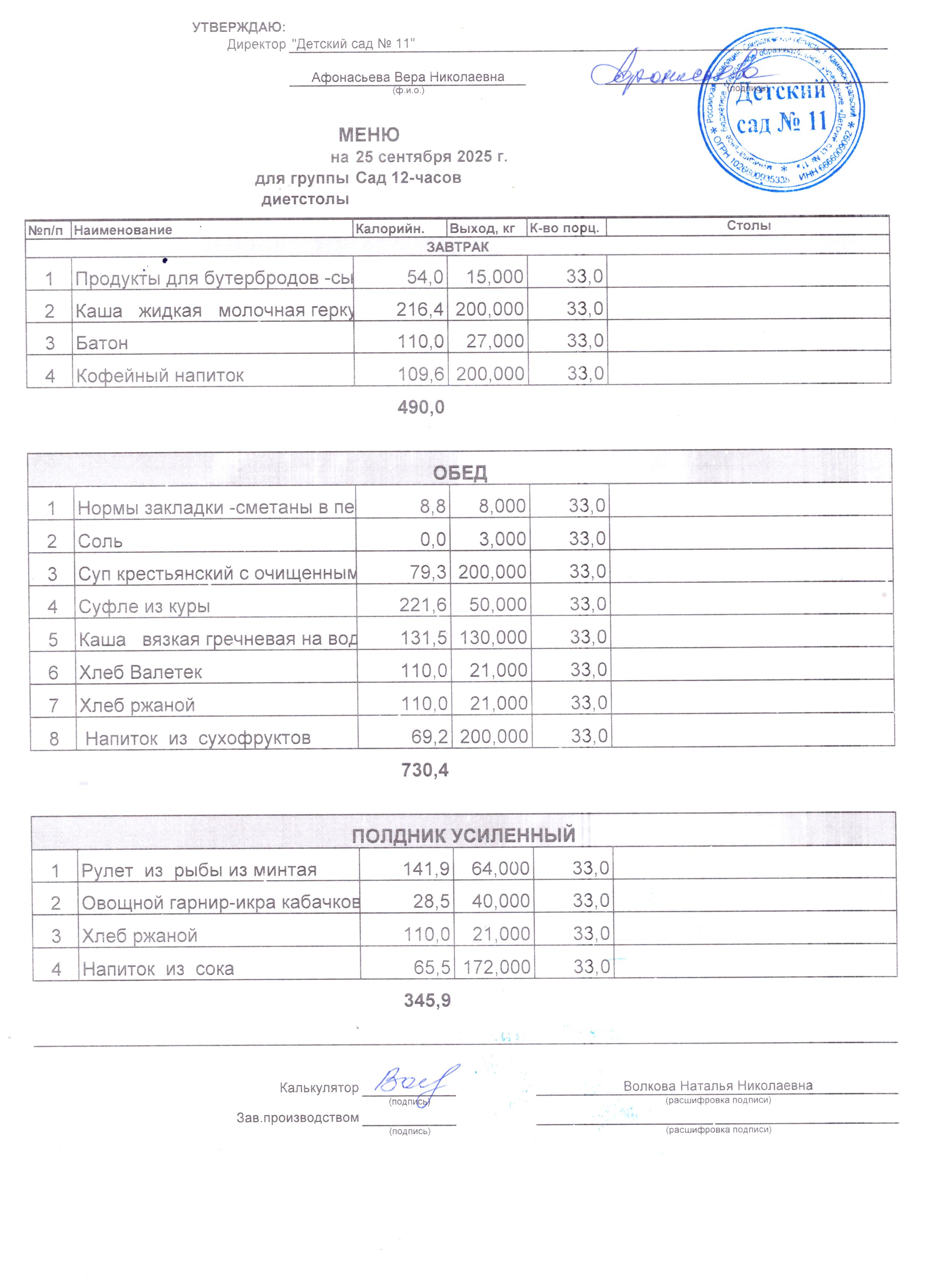 - Соки, фрукты, кисломолочные напитки включены в усиленный полдник.