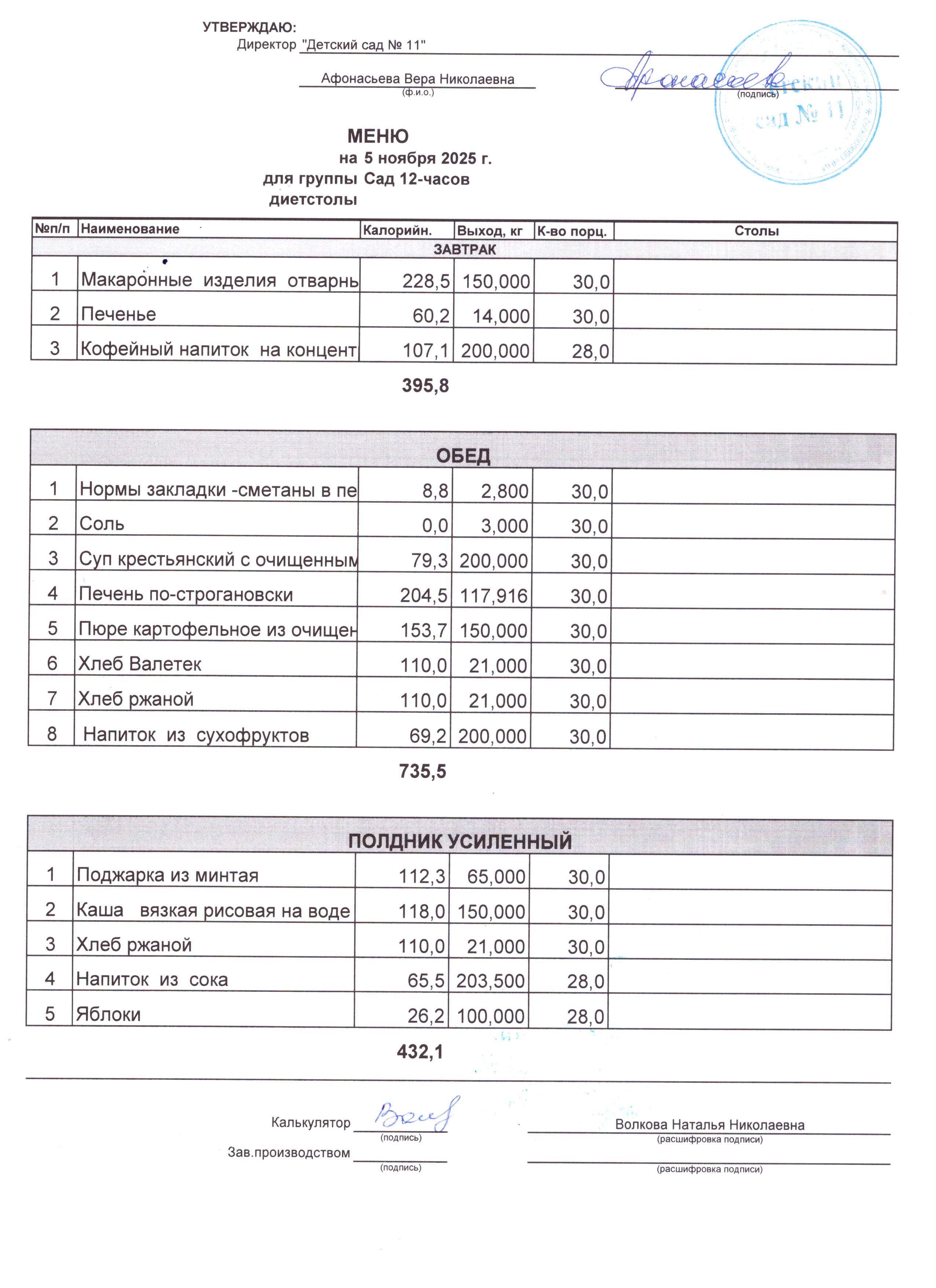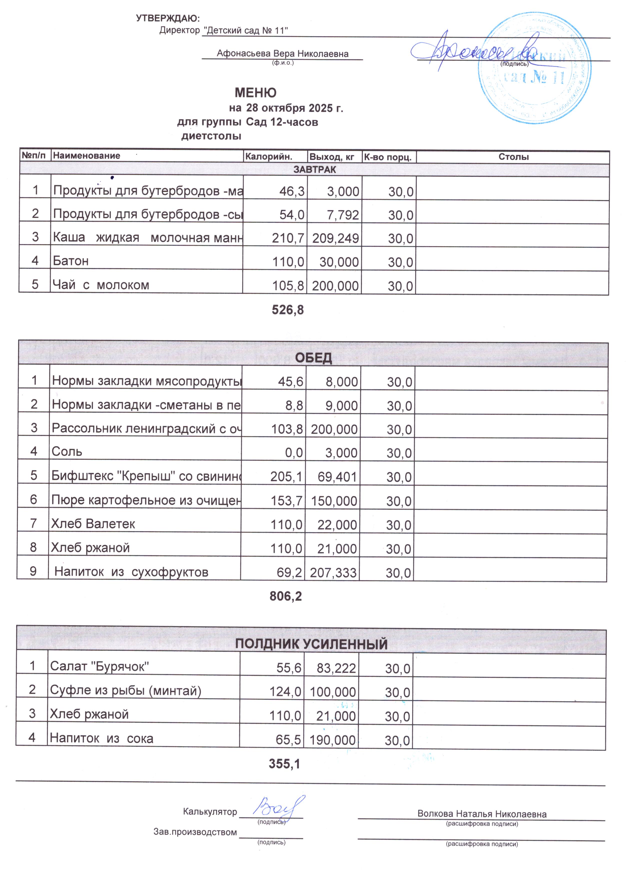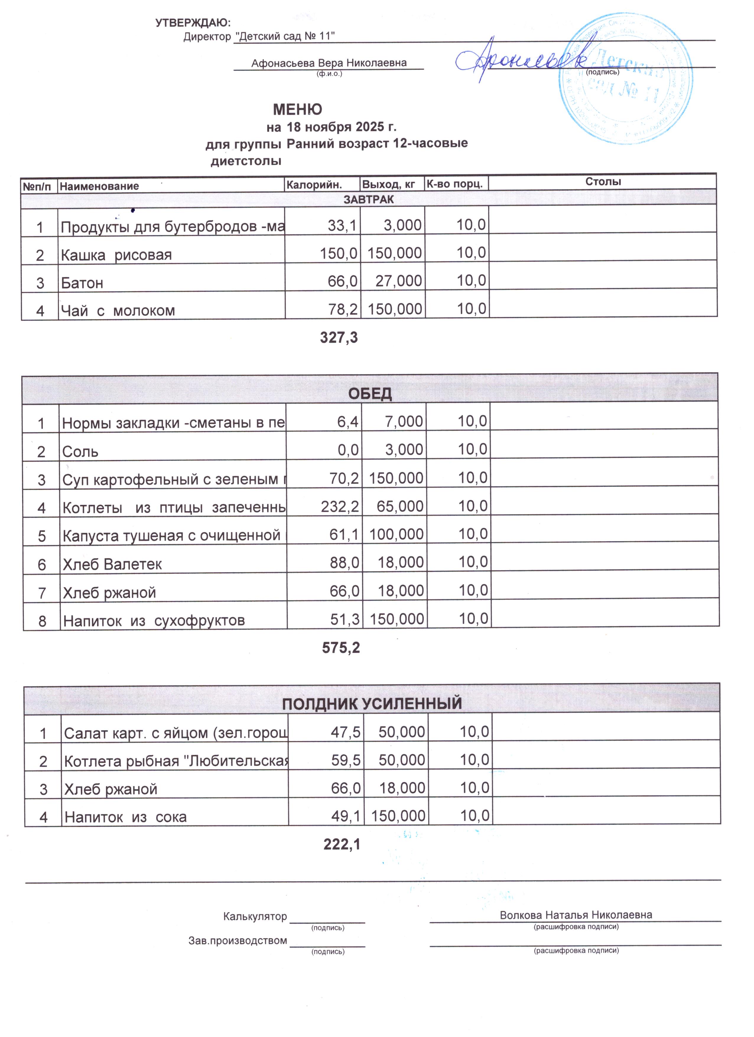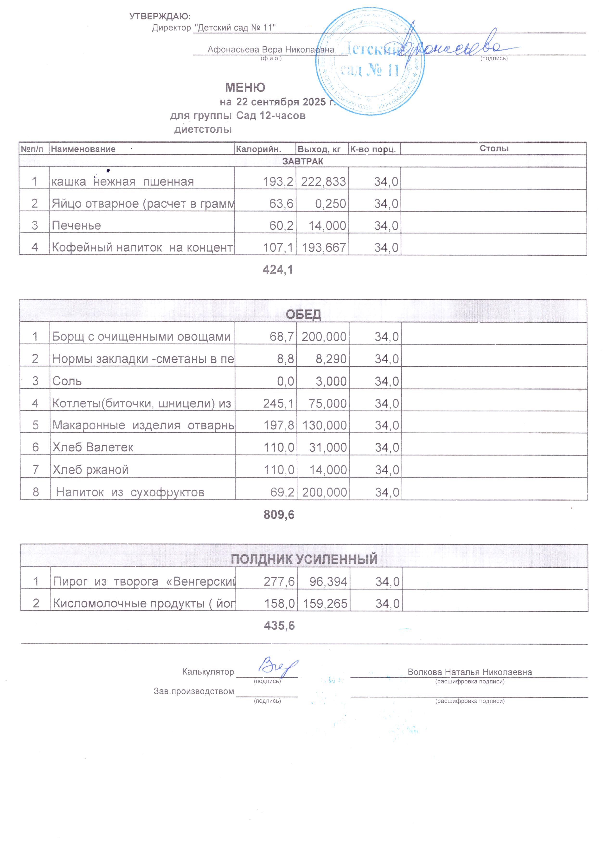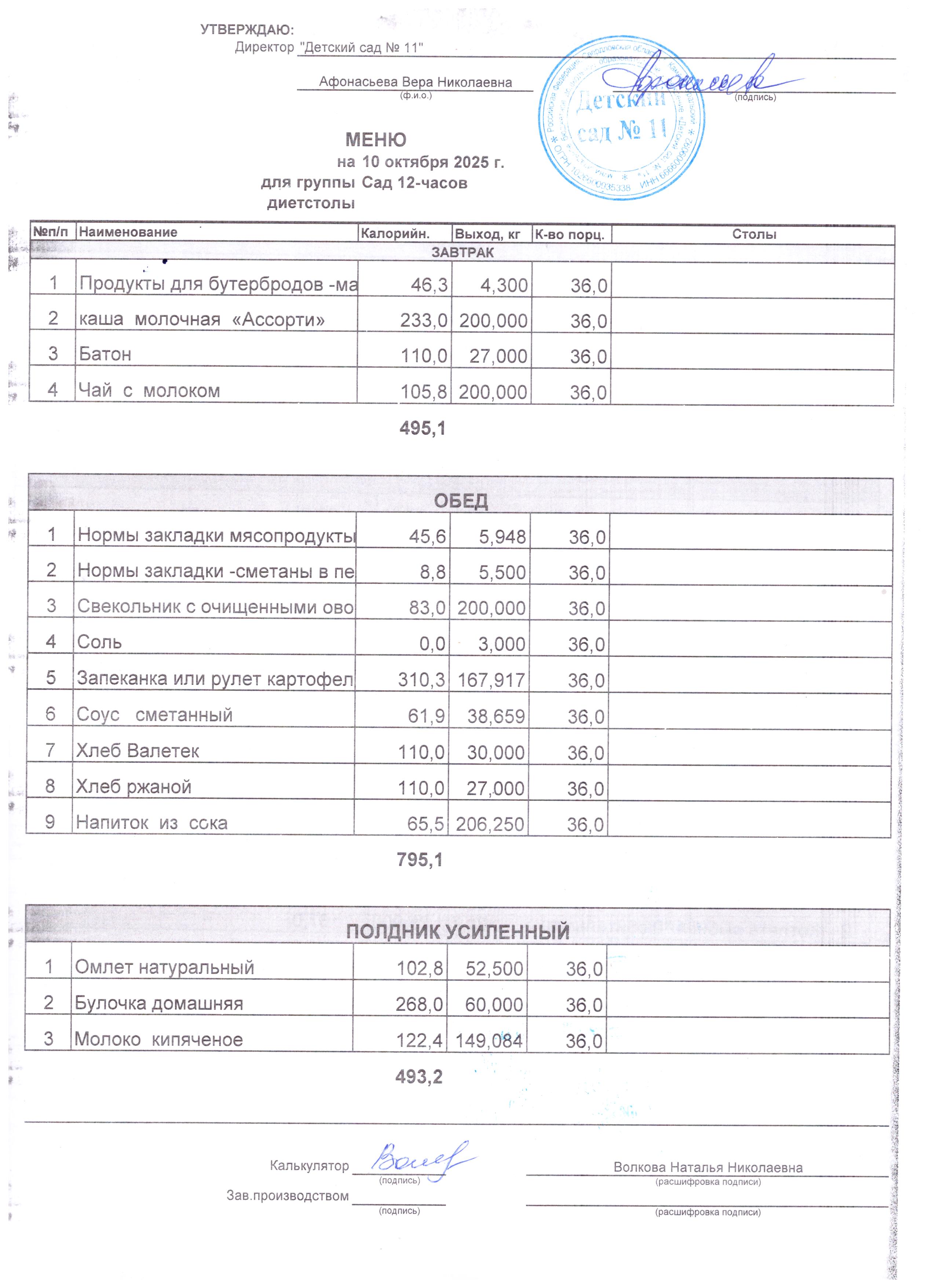 - Соки, фрукты, кисломолочные напитки включены в усиленный полдник.