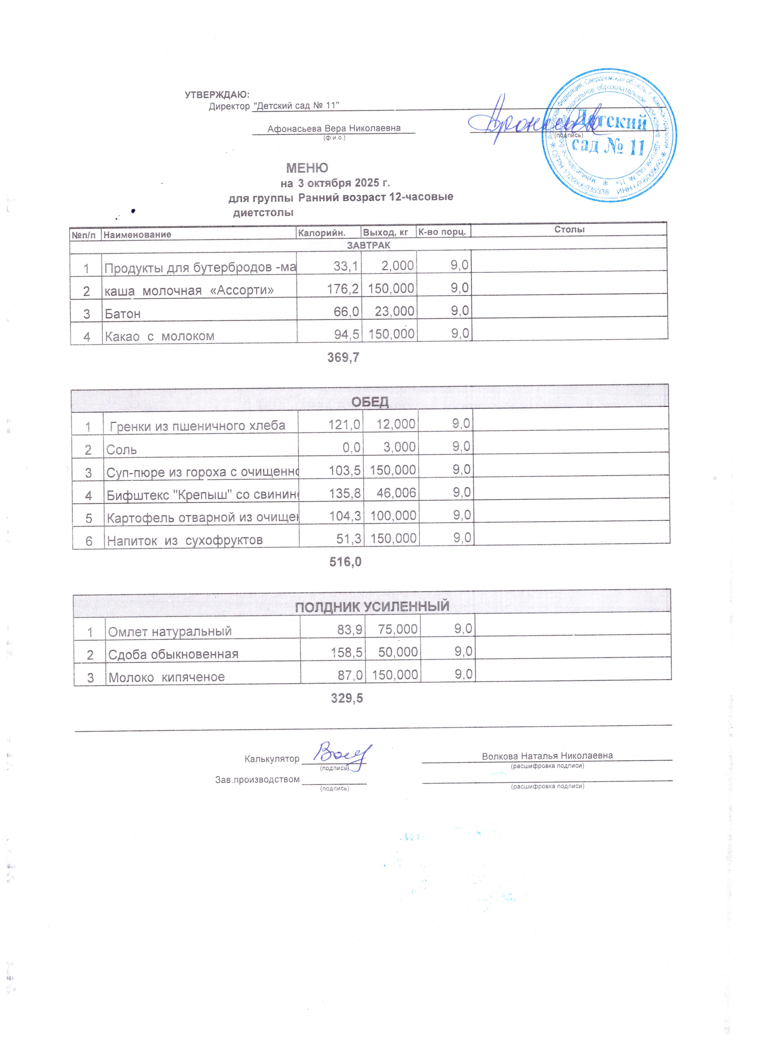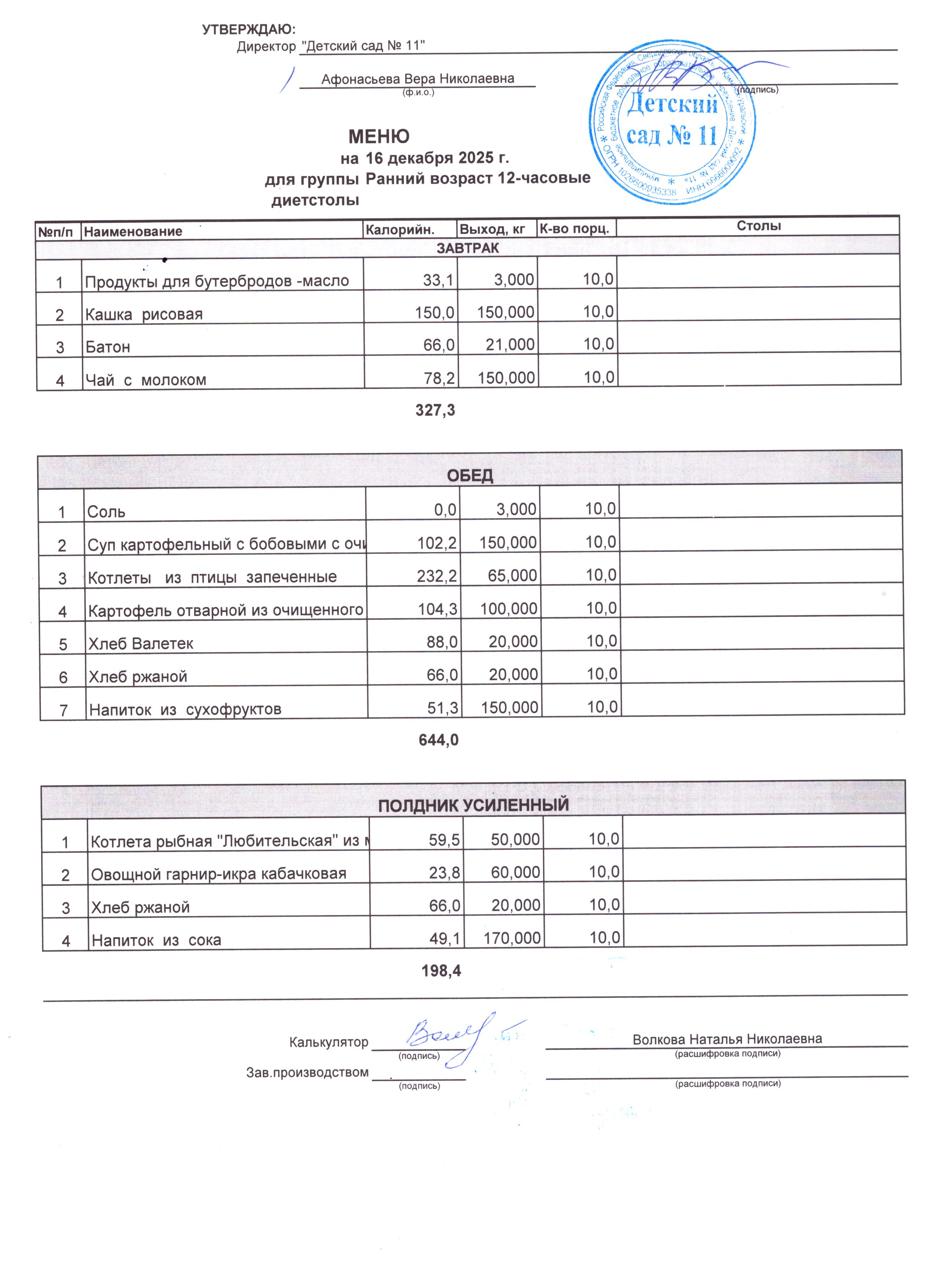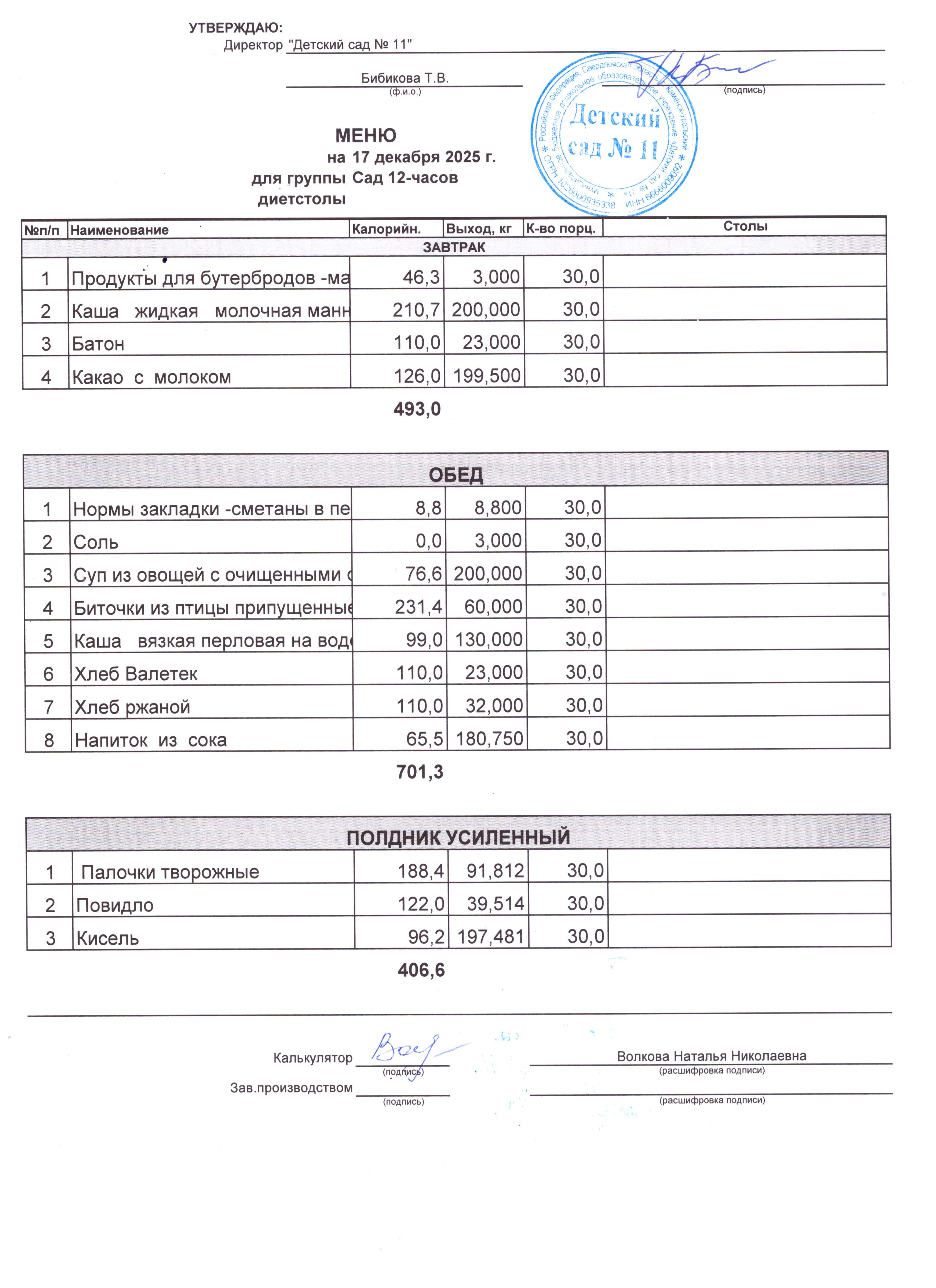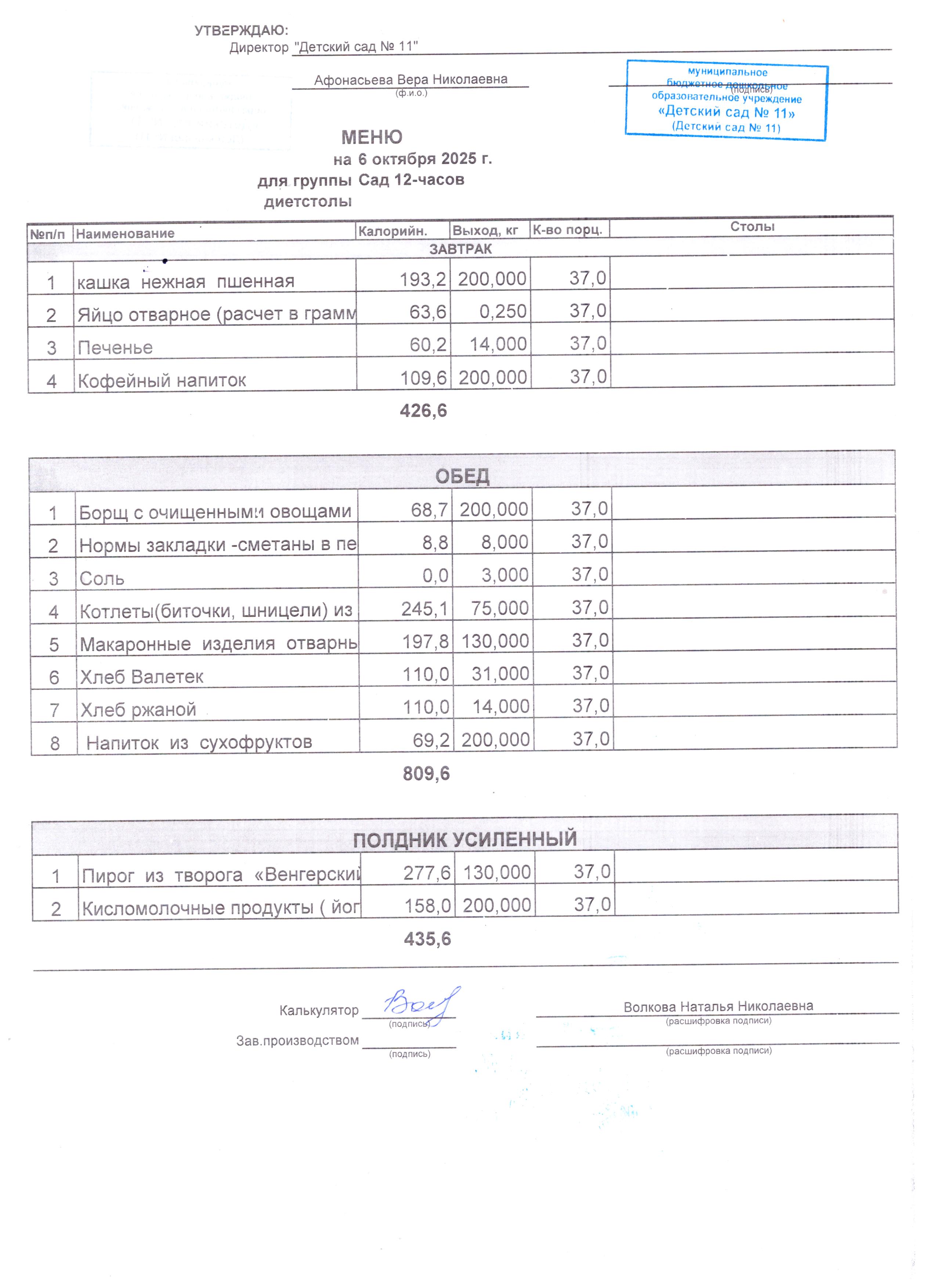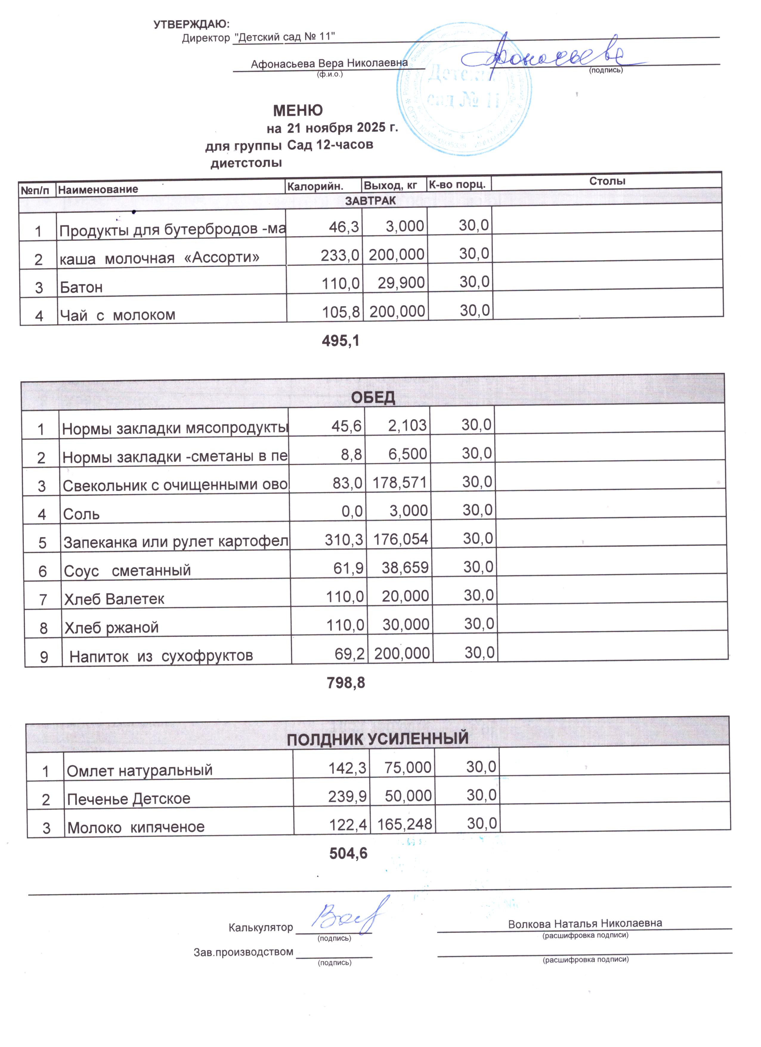 - Соки, фрукты, кисломолочные напитки включены в усиленный полдник.
