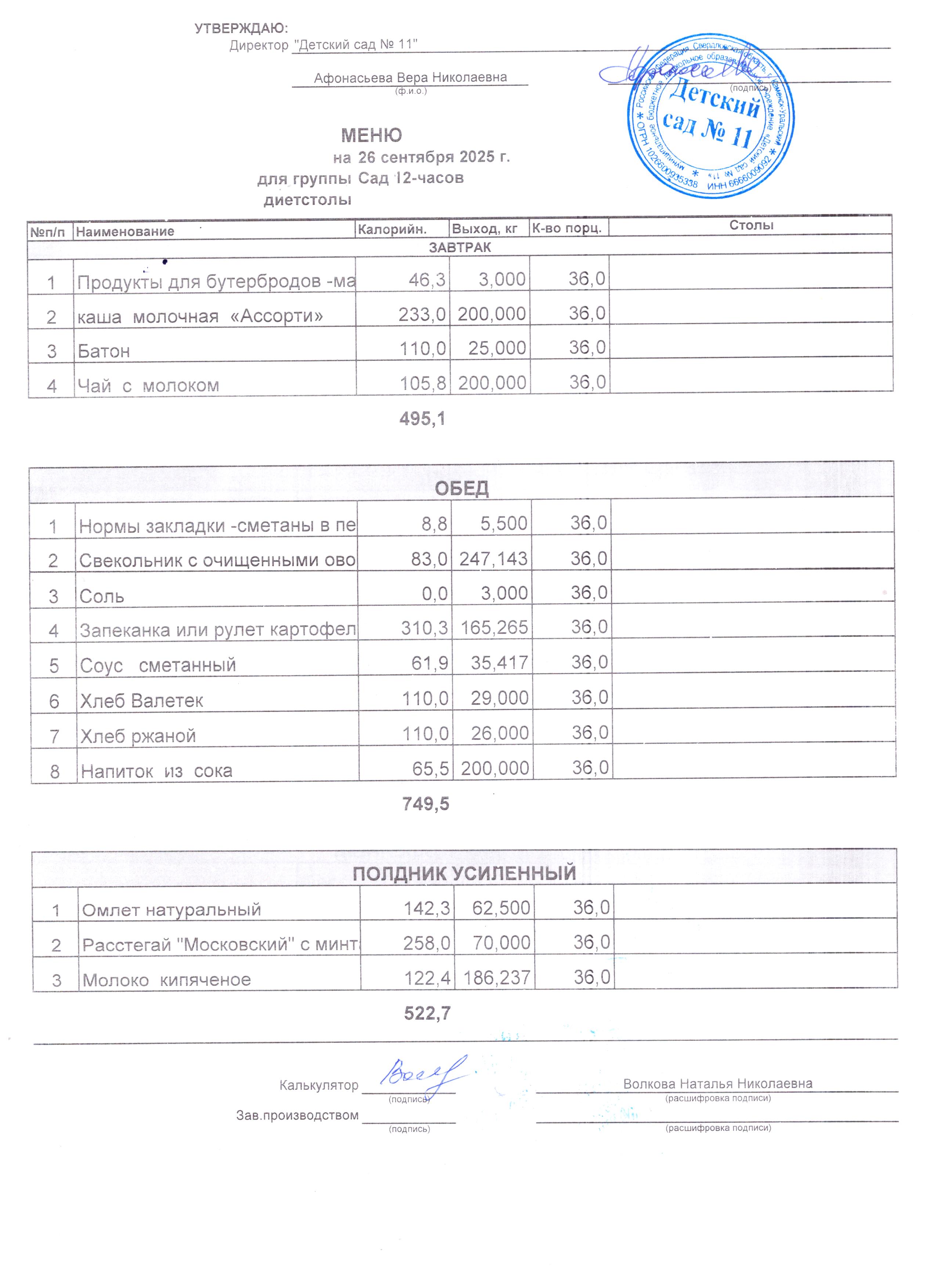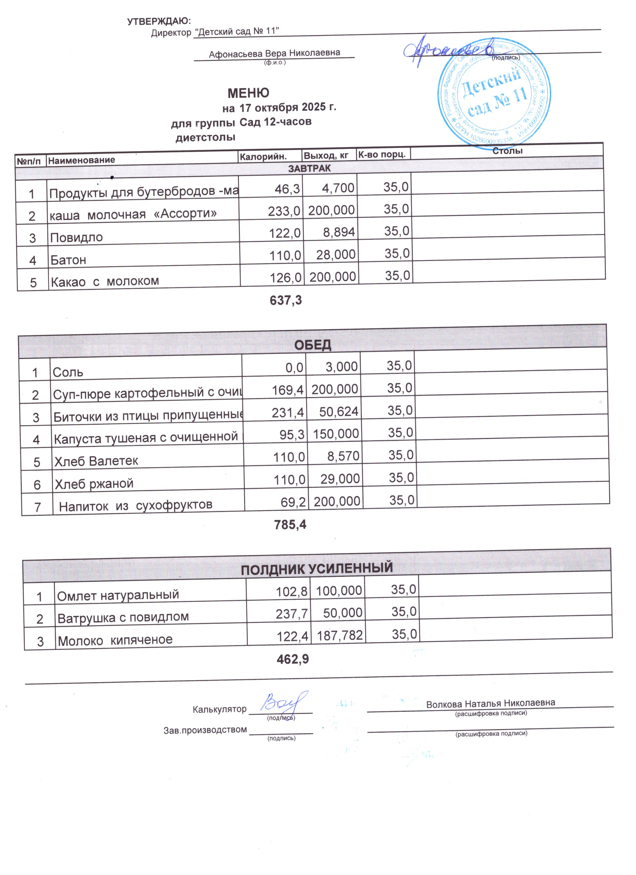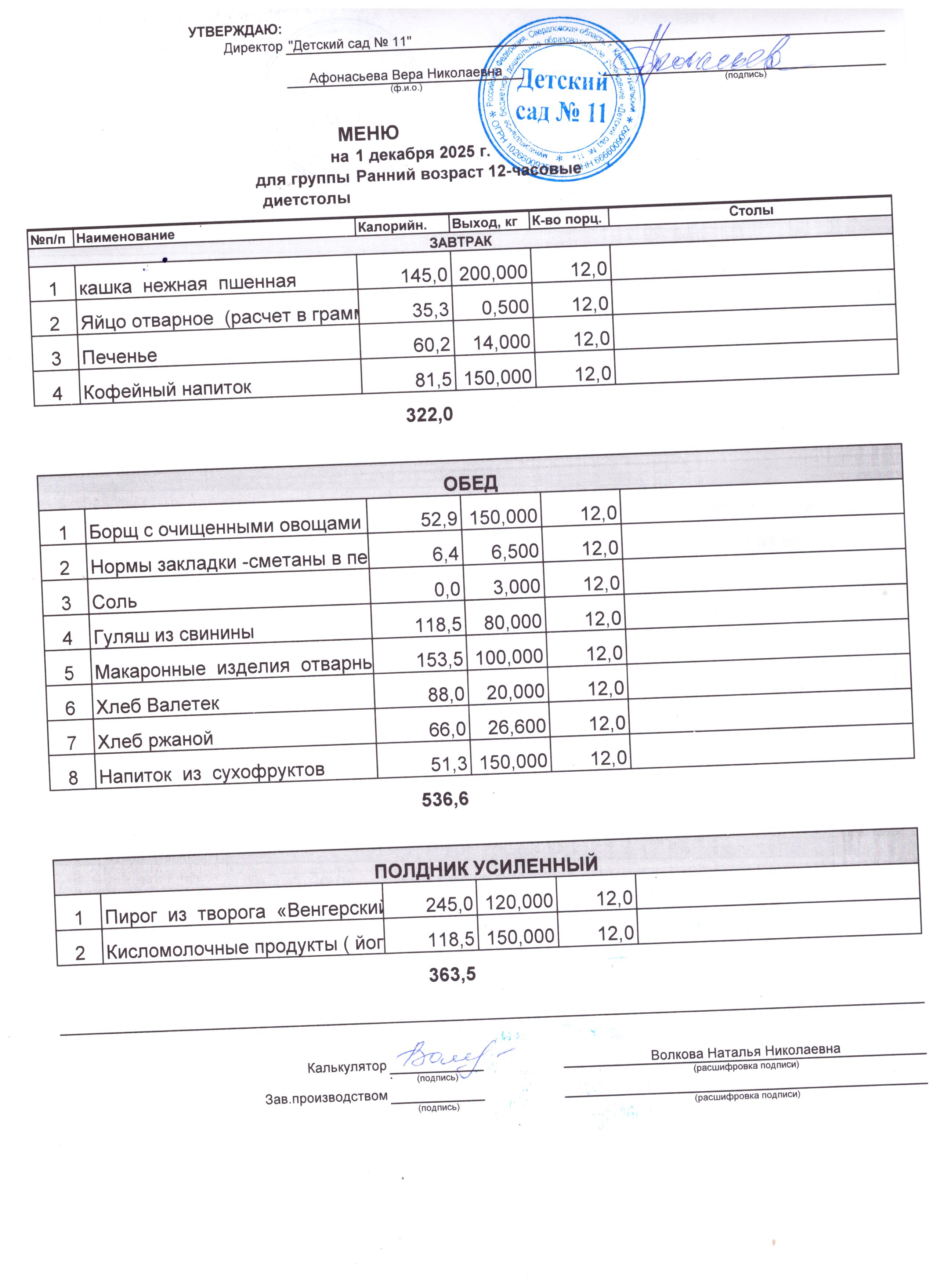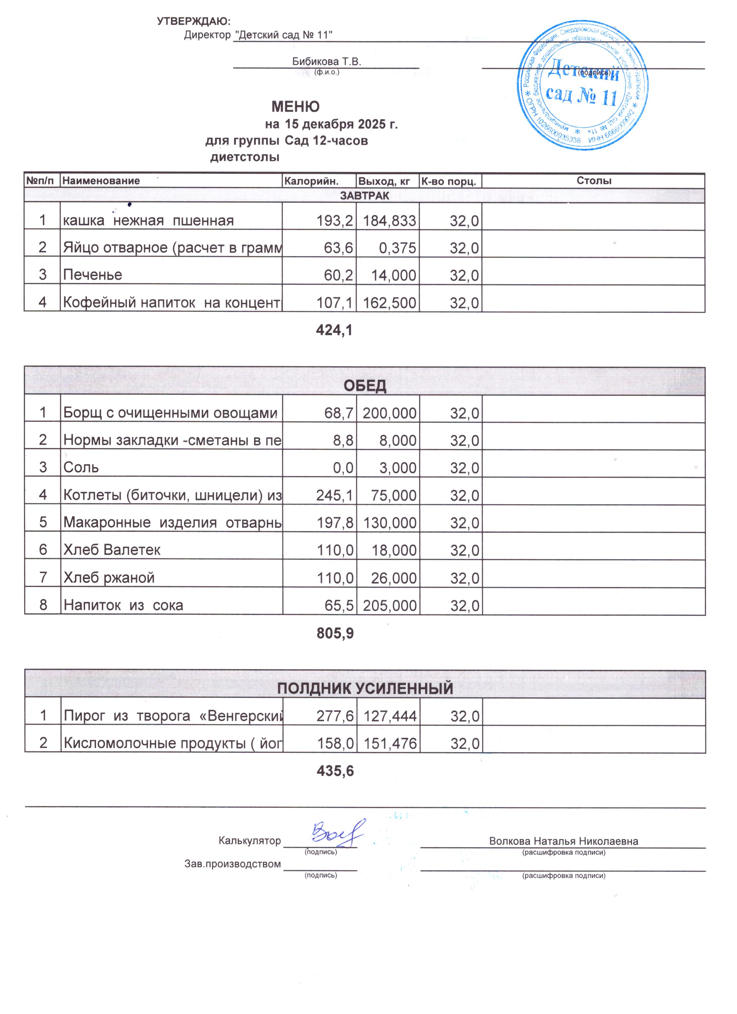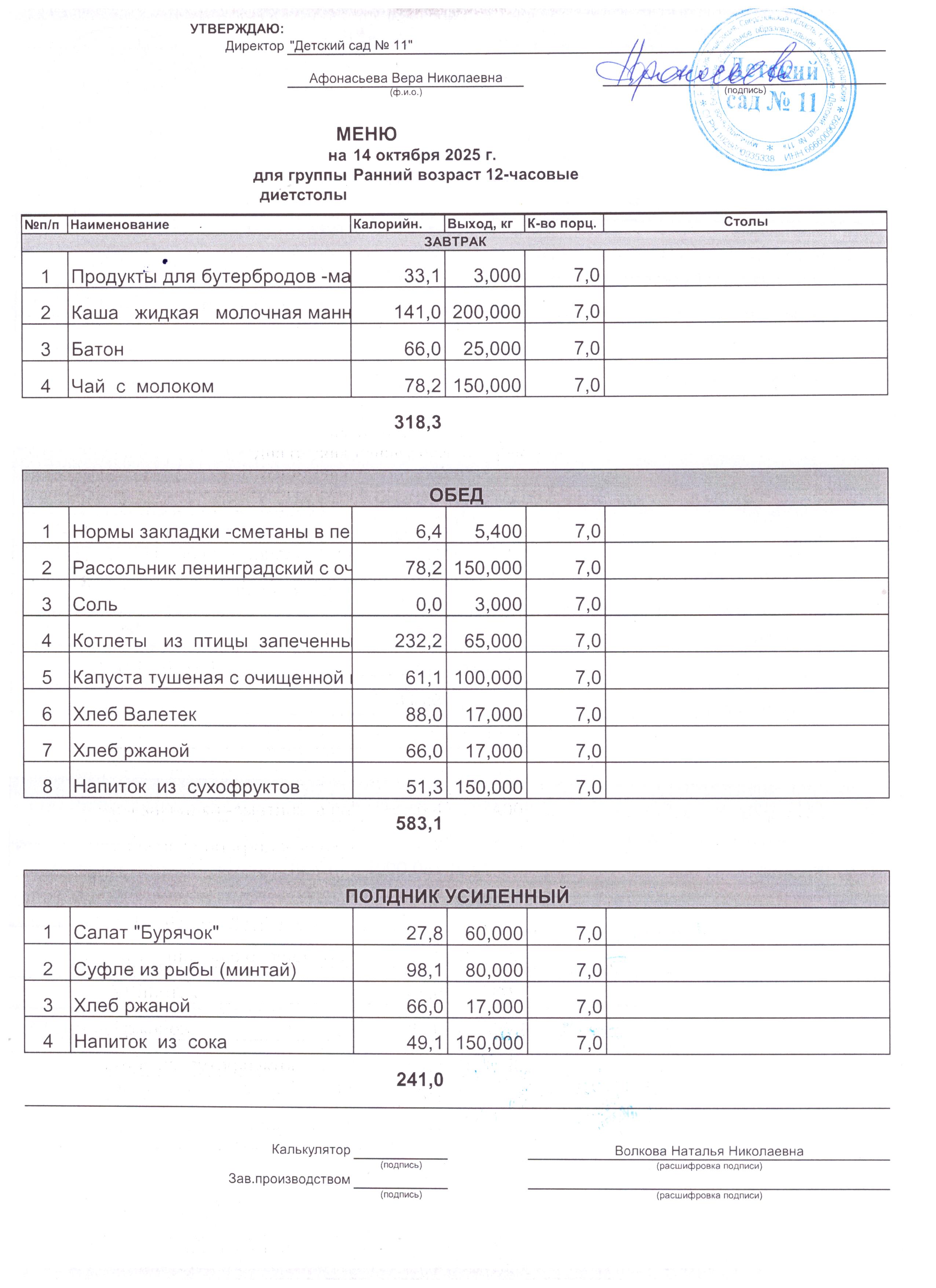 - Соки, фрукты, кисломолочные напитки включены в усиленный полдник.