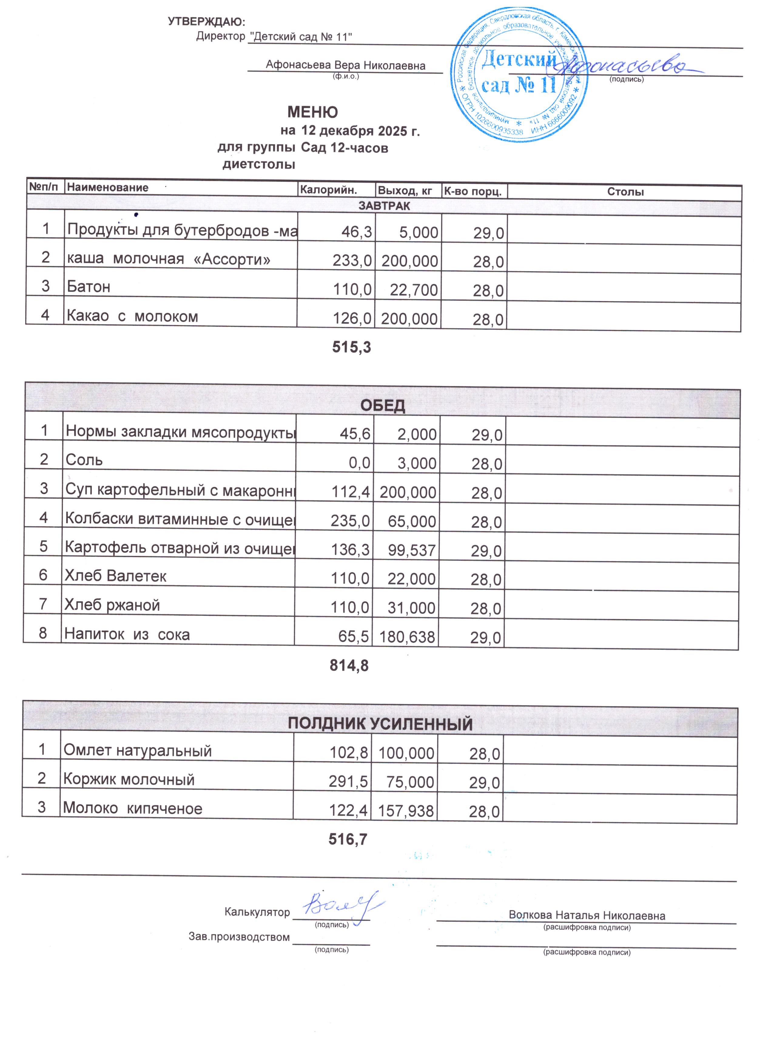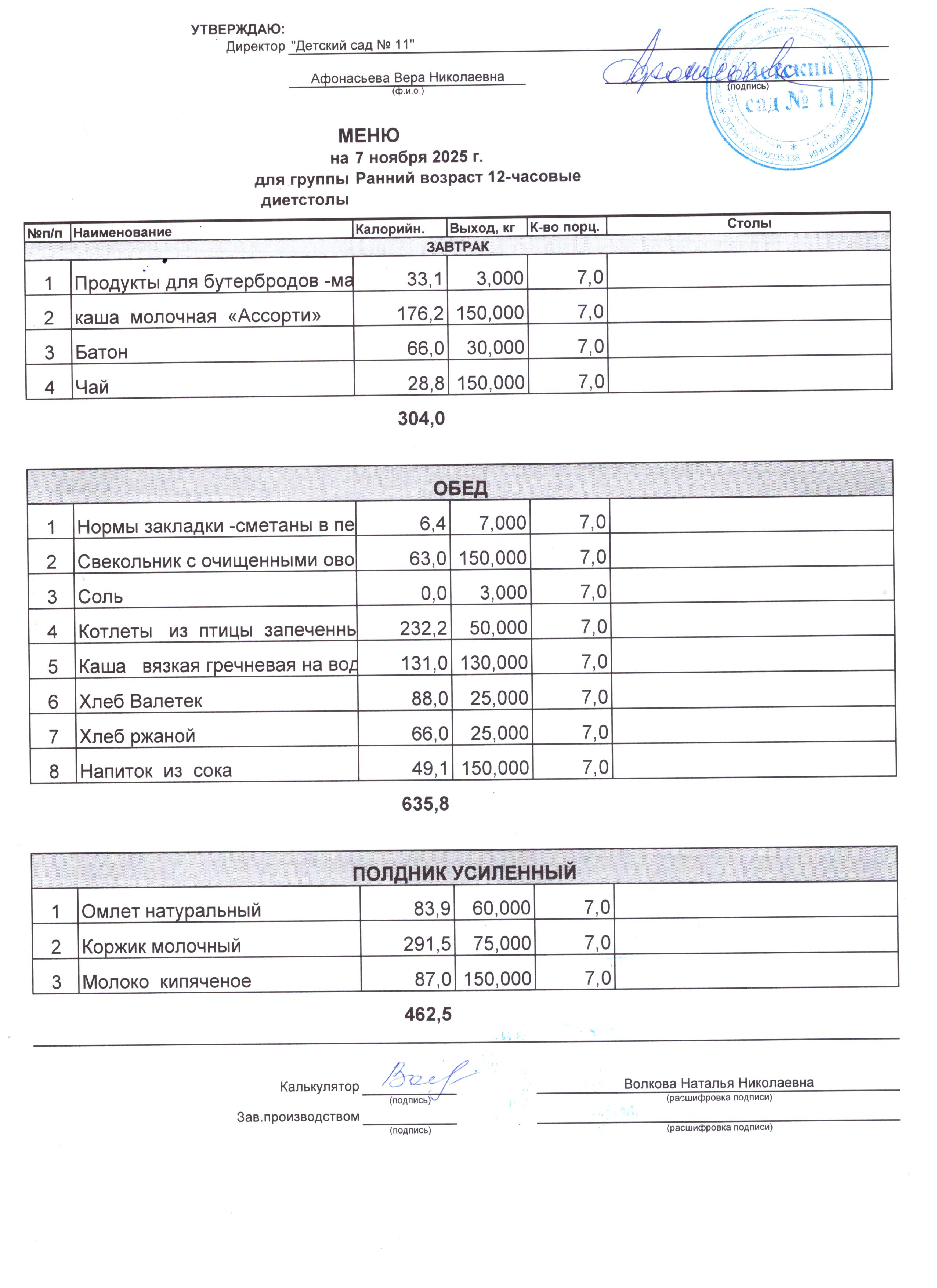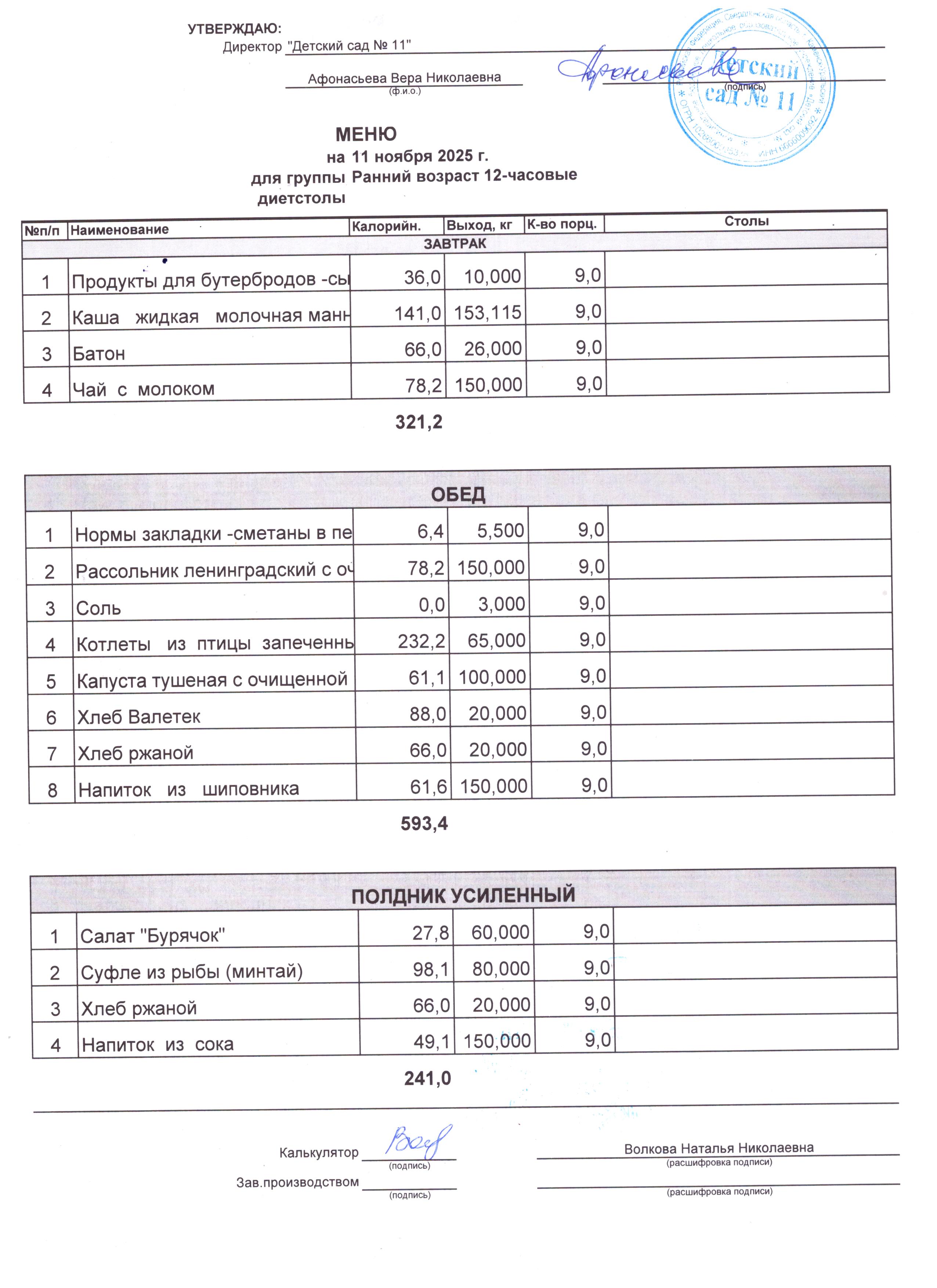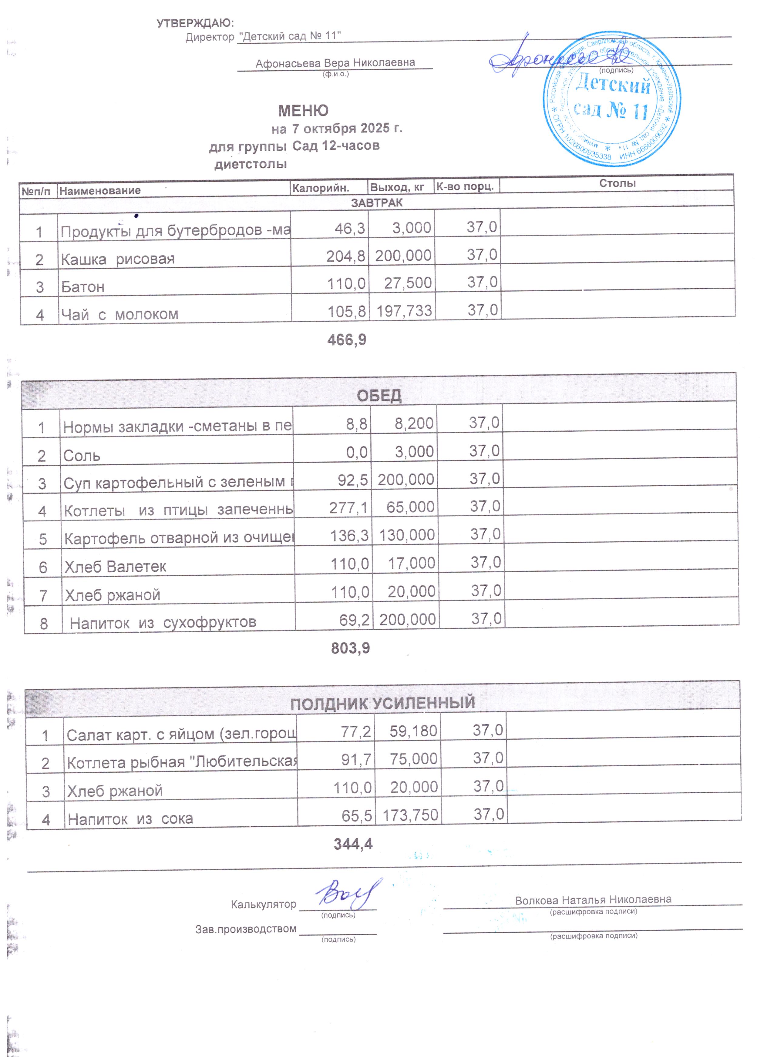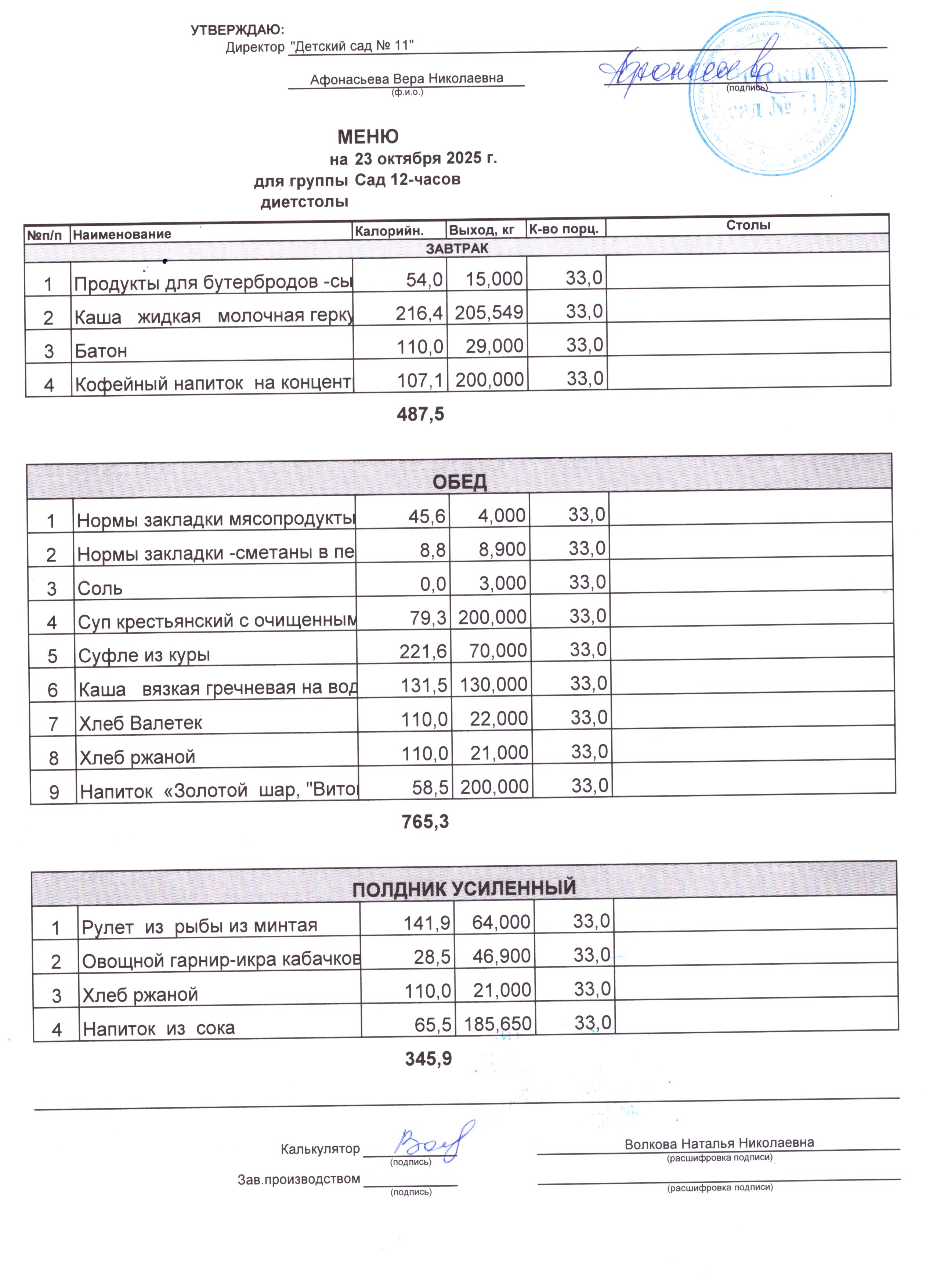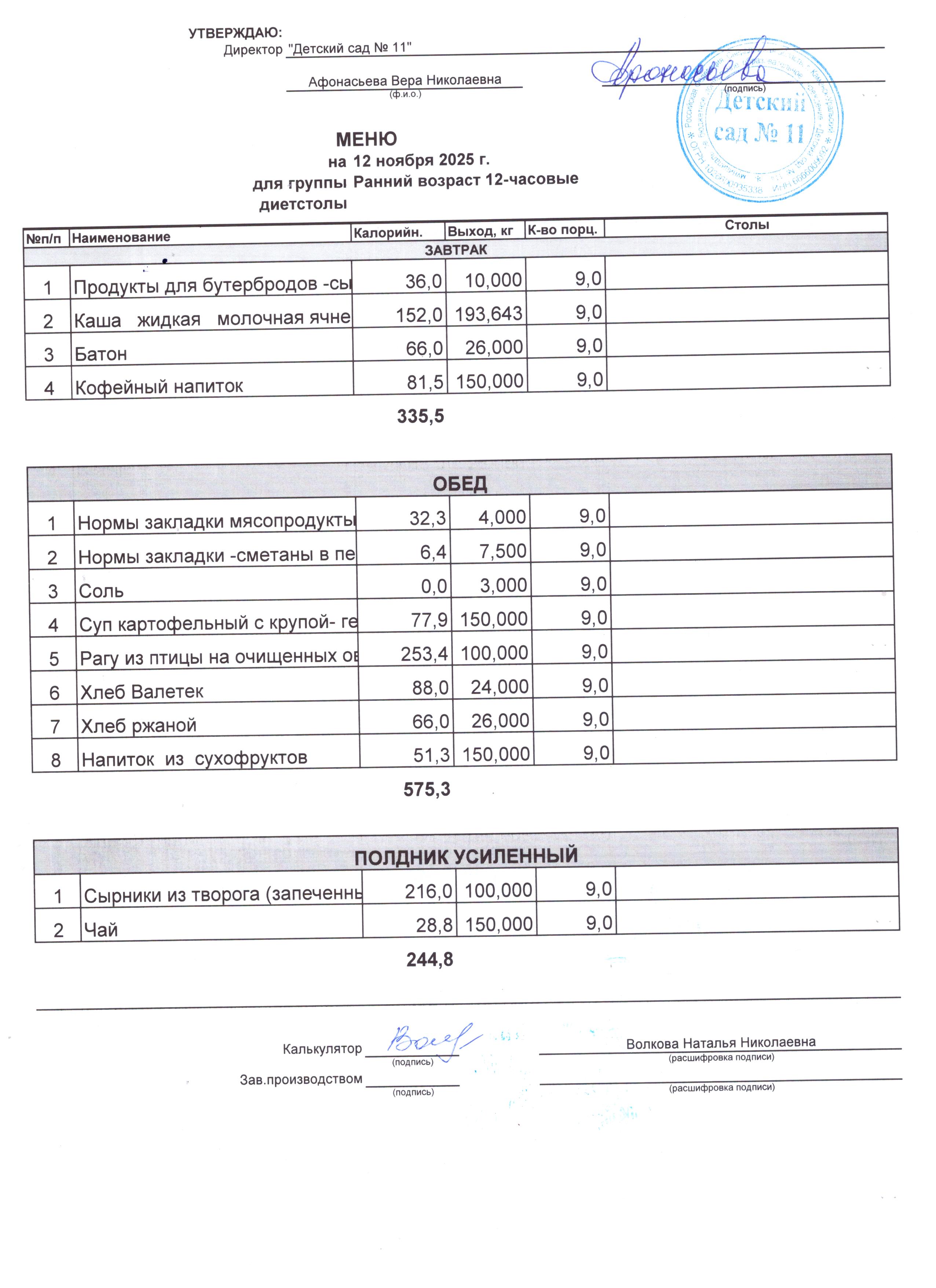 - Соки, фрукты, кисломолочные напитки включены в усиленный полдник.