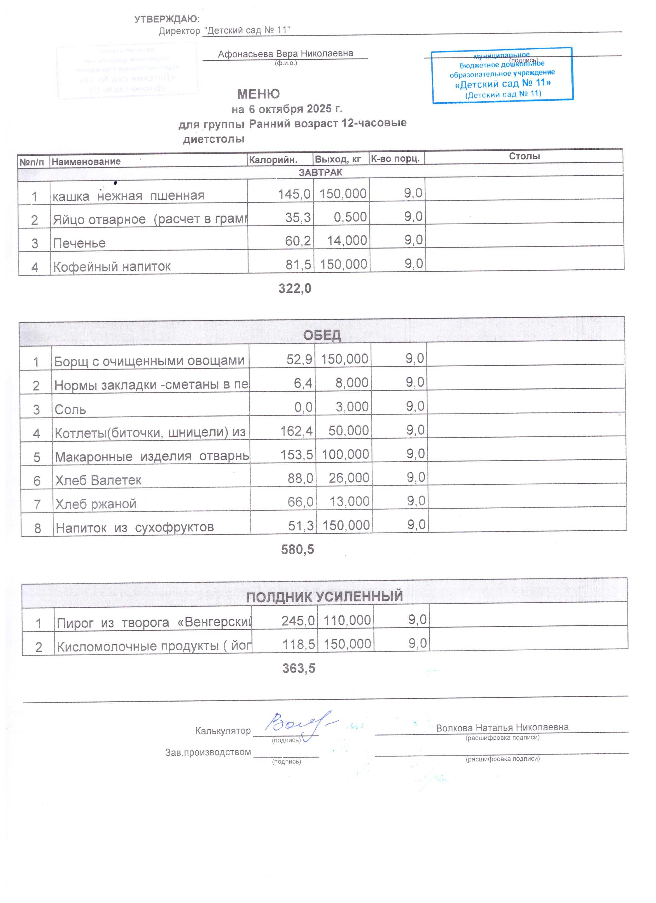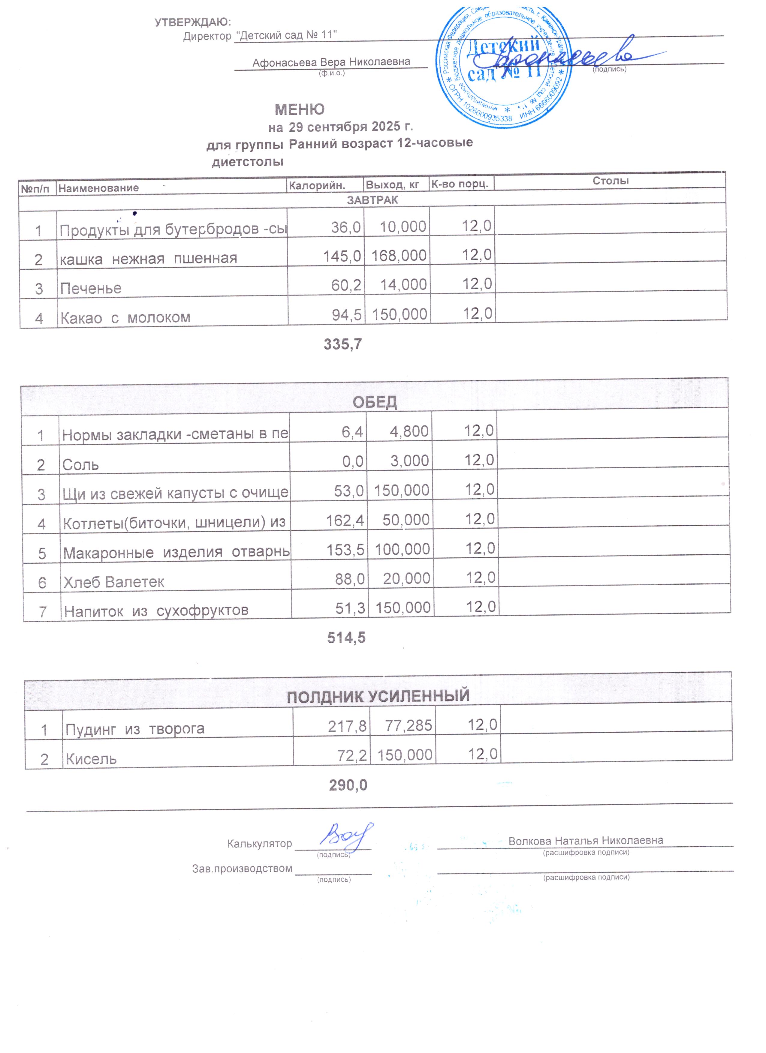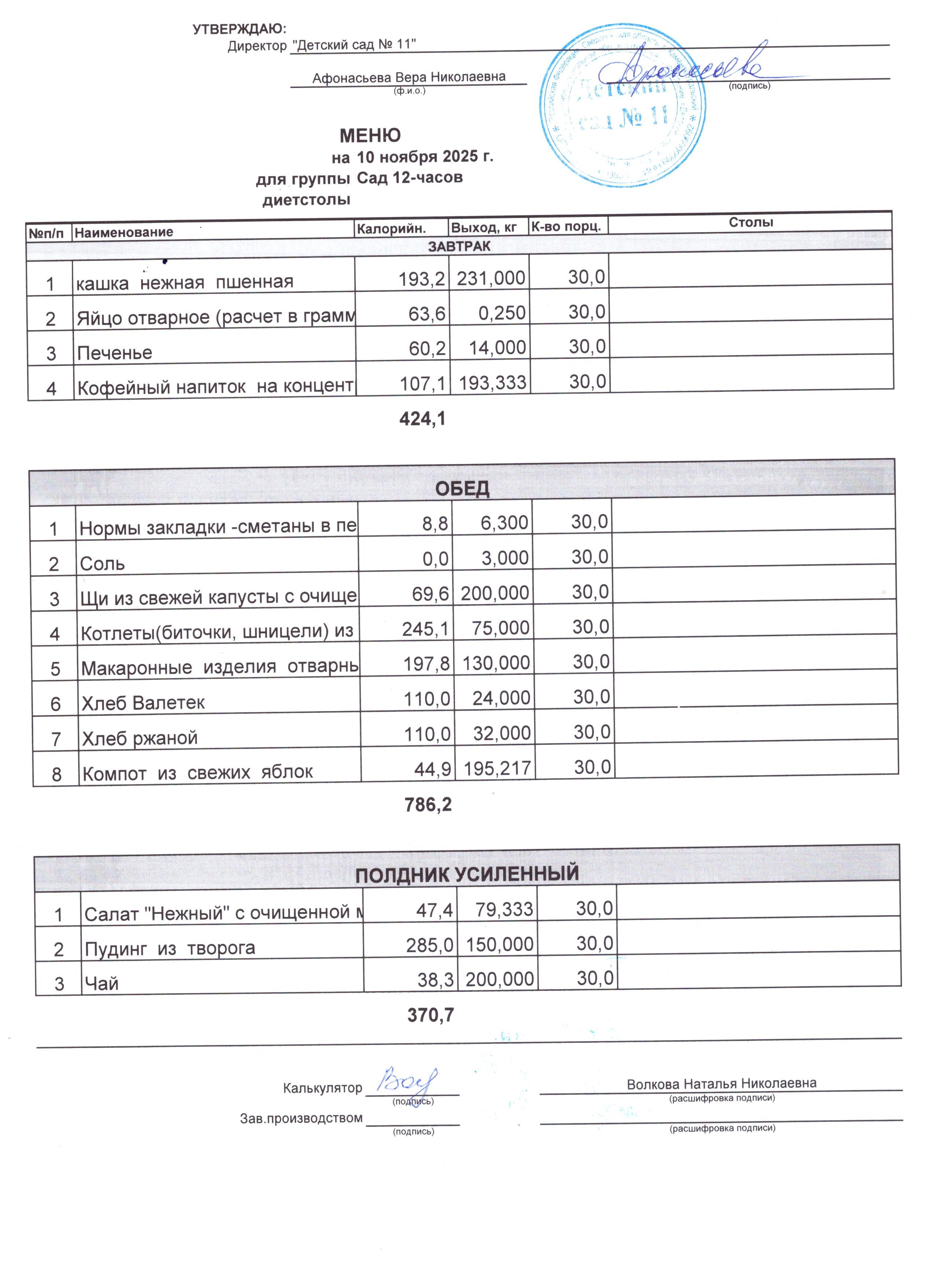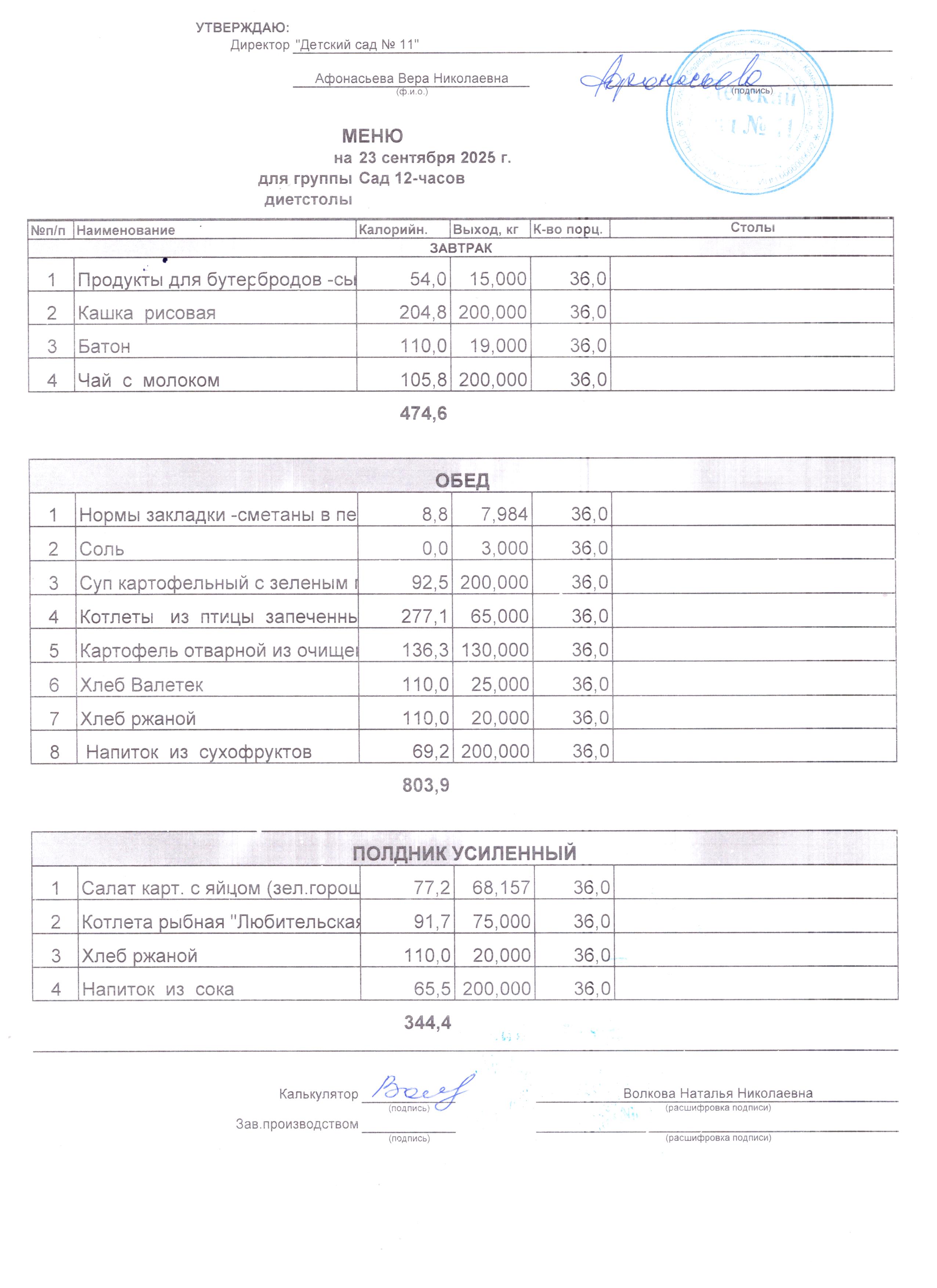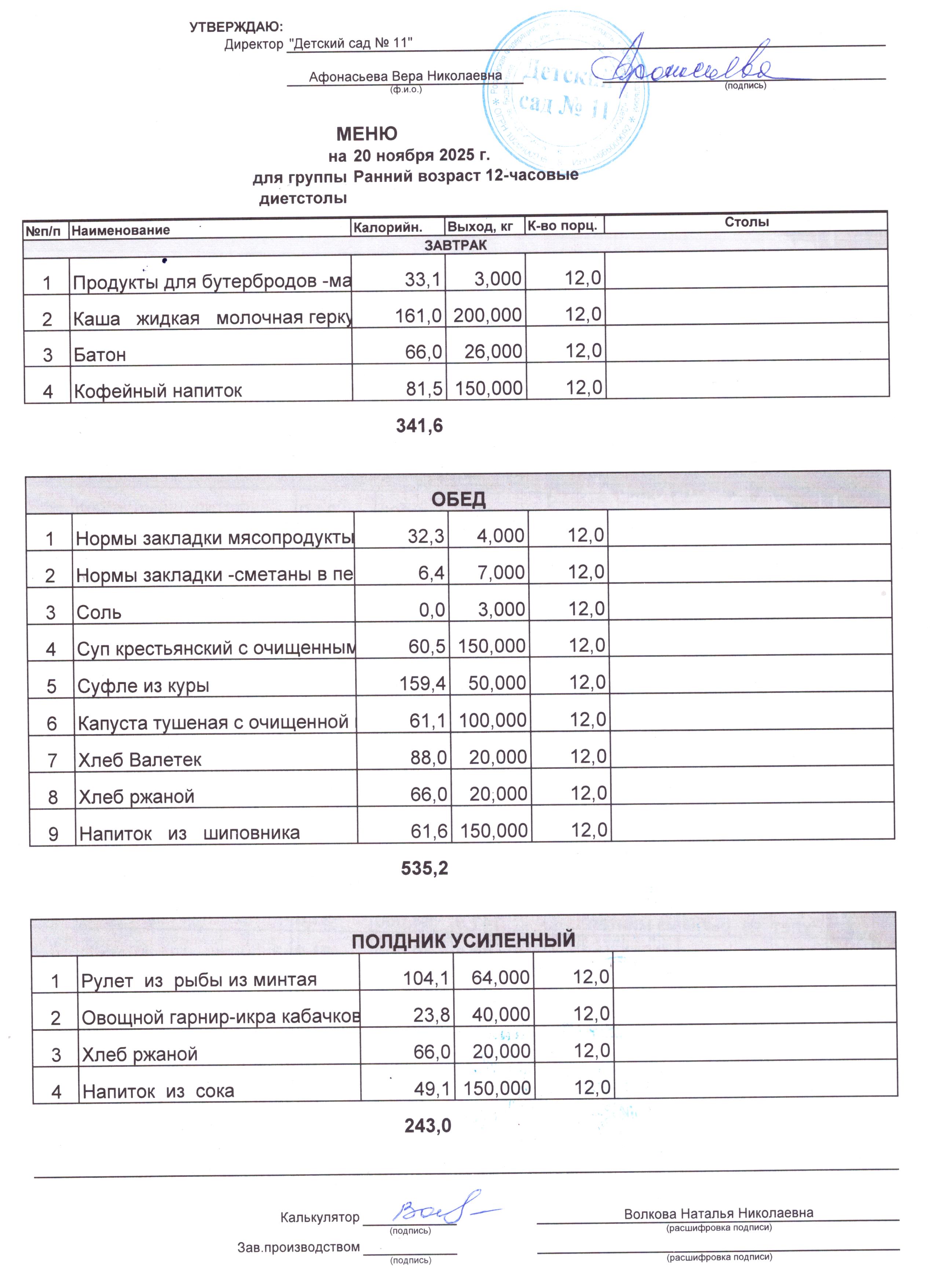 - Соки, фрукты, кисломолочные напитки включены в усиленный полдник.