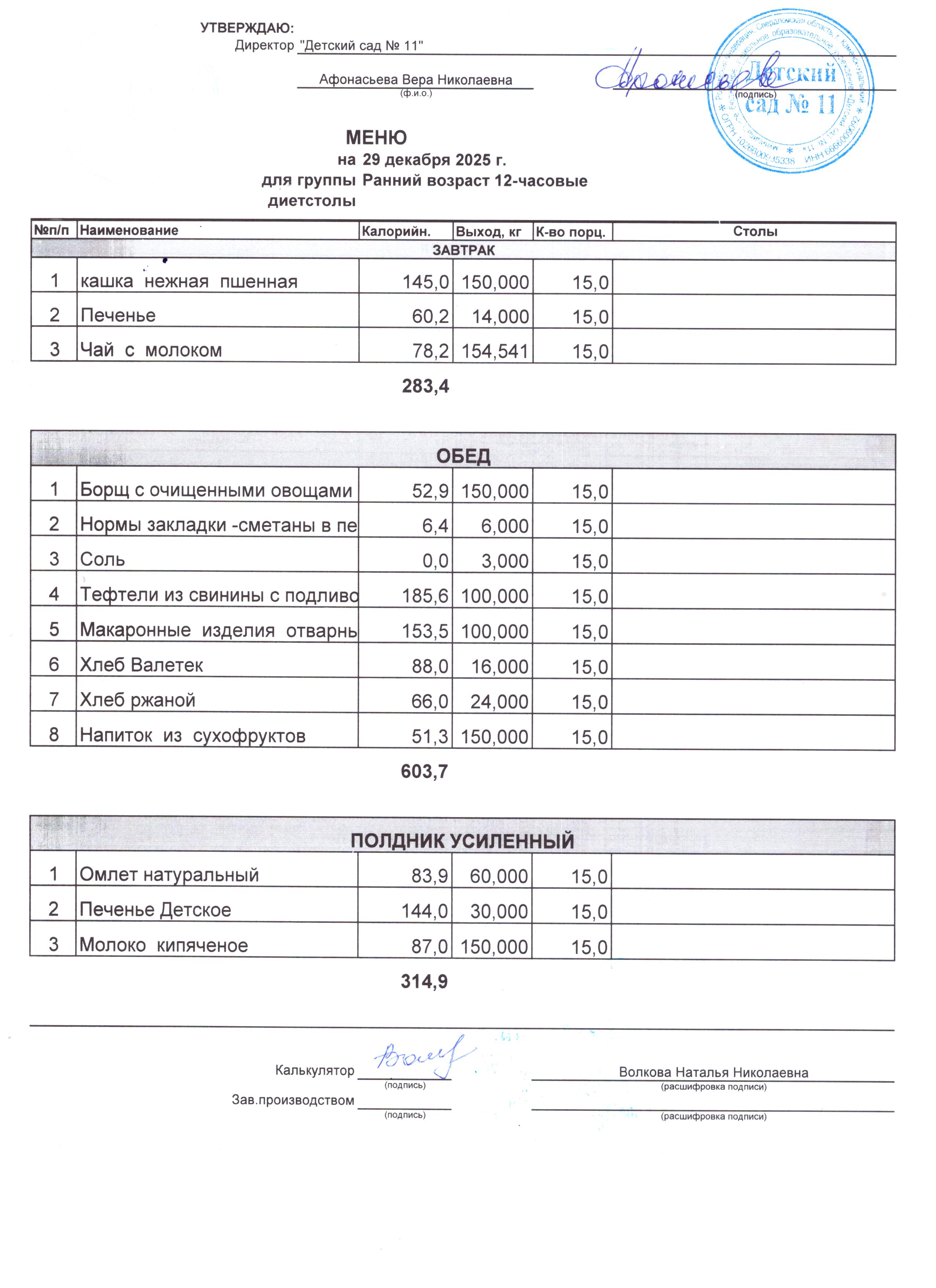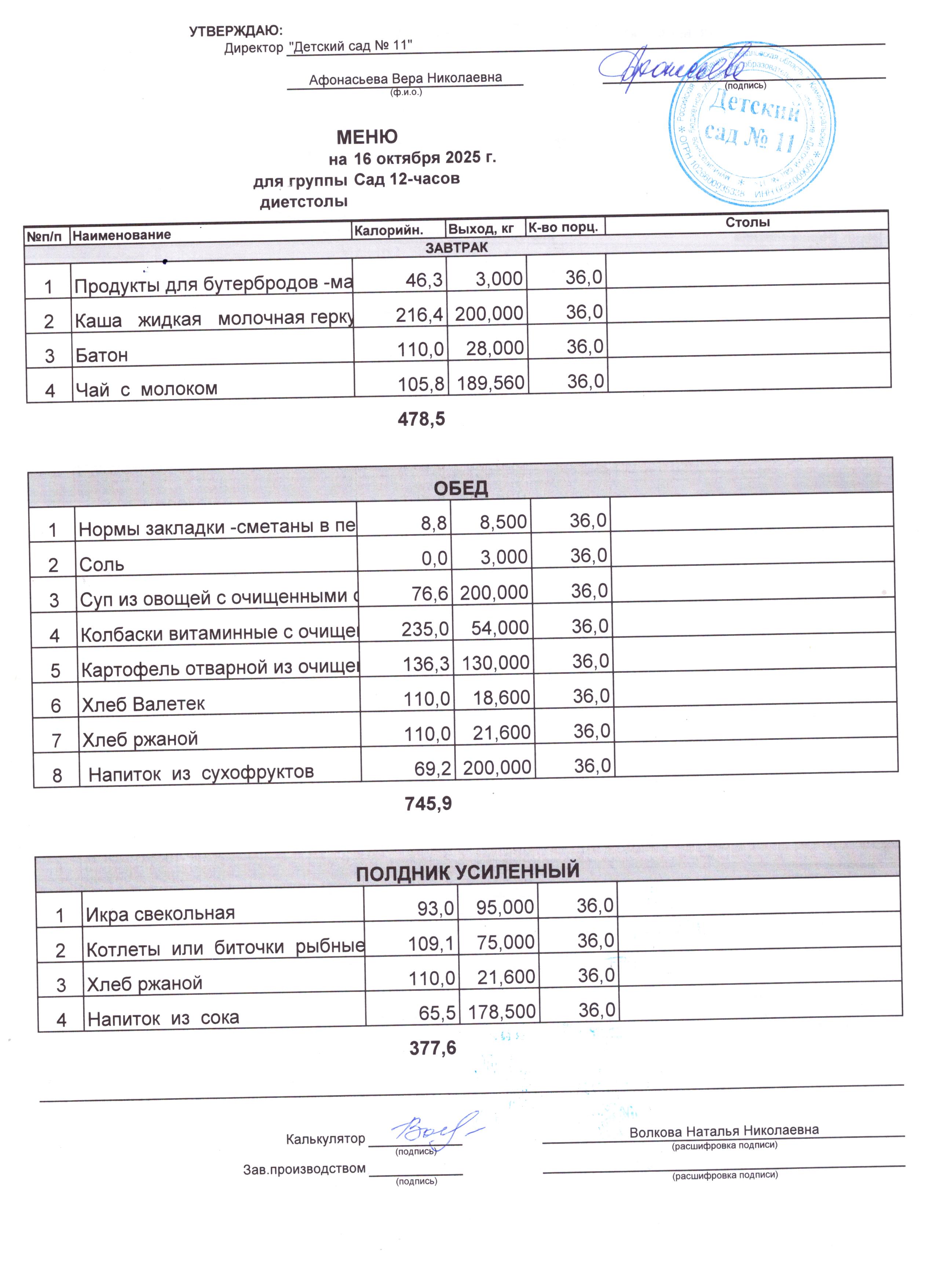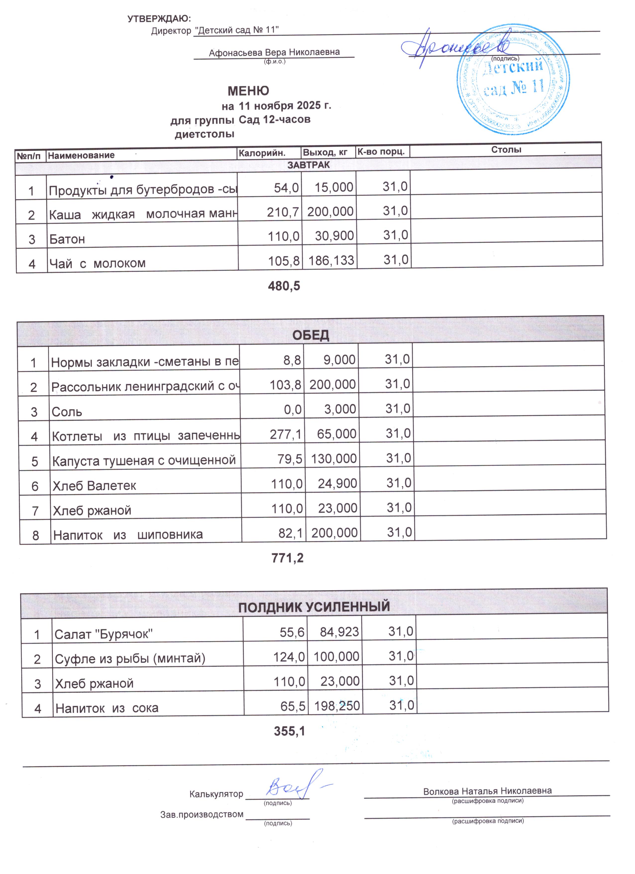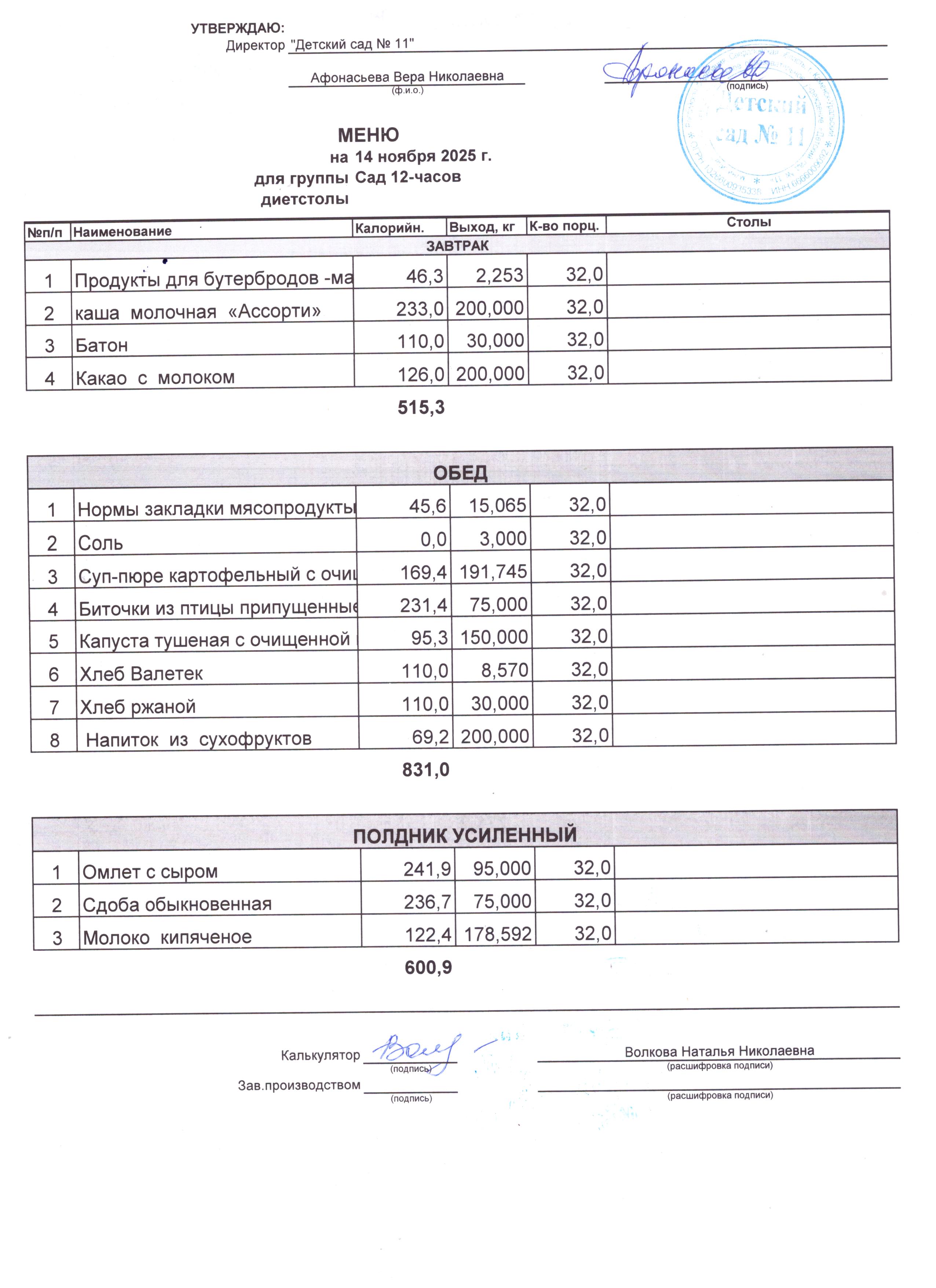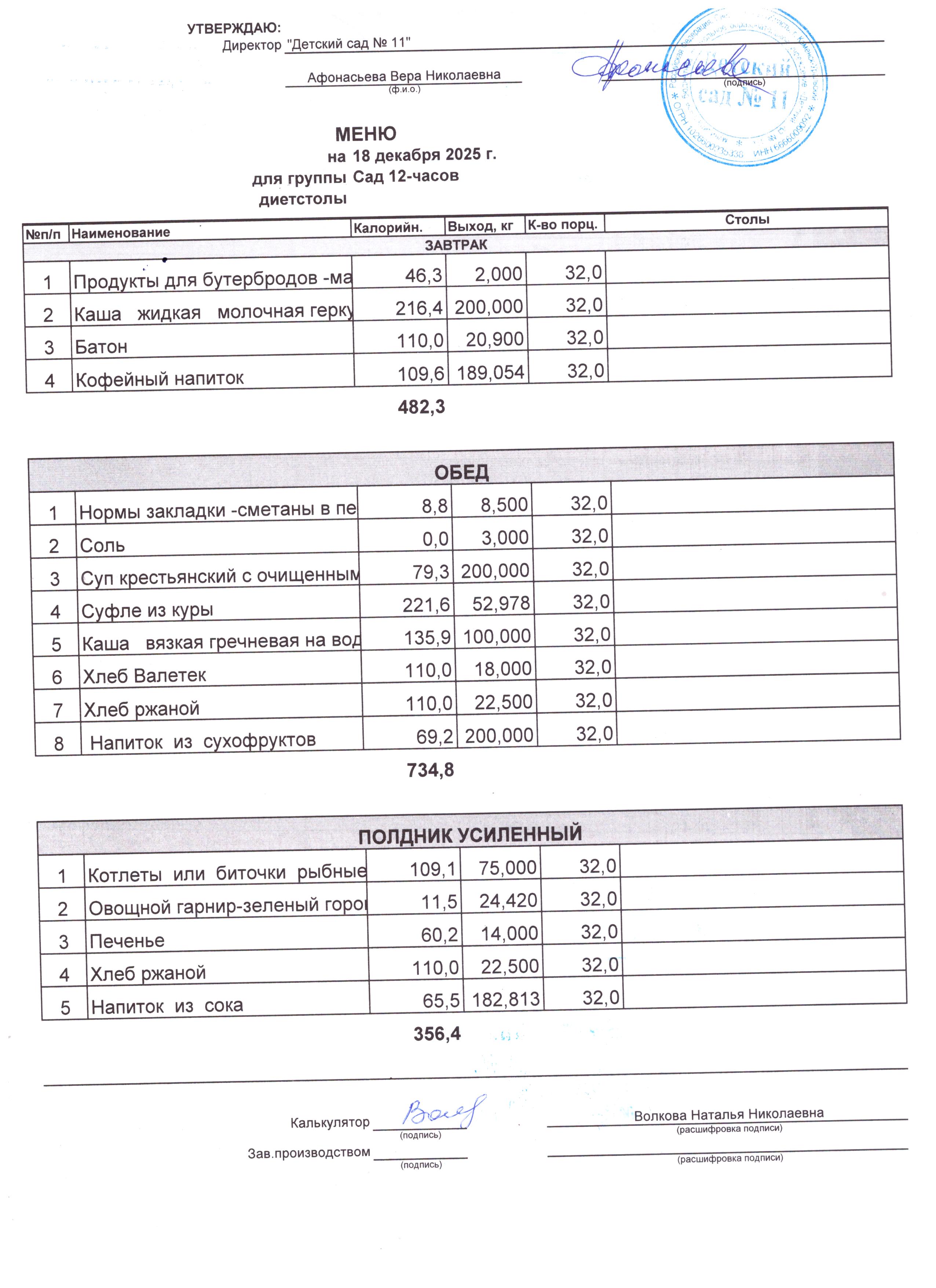 - Соки, фрукты, кисломолочные напитки включены в усиленный полдник.