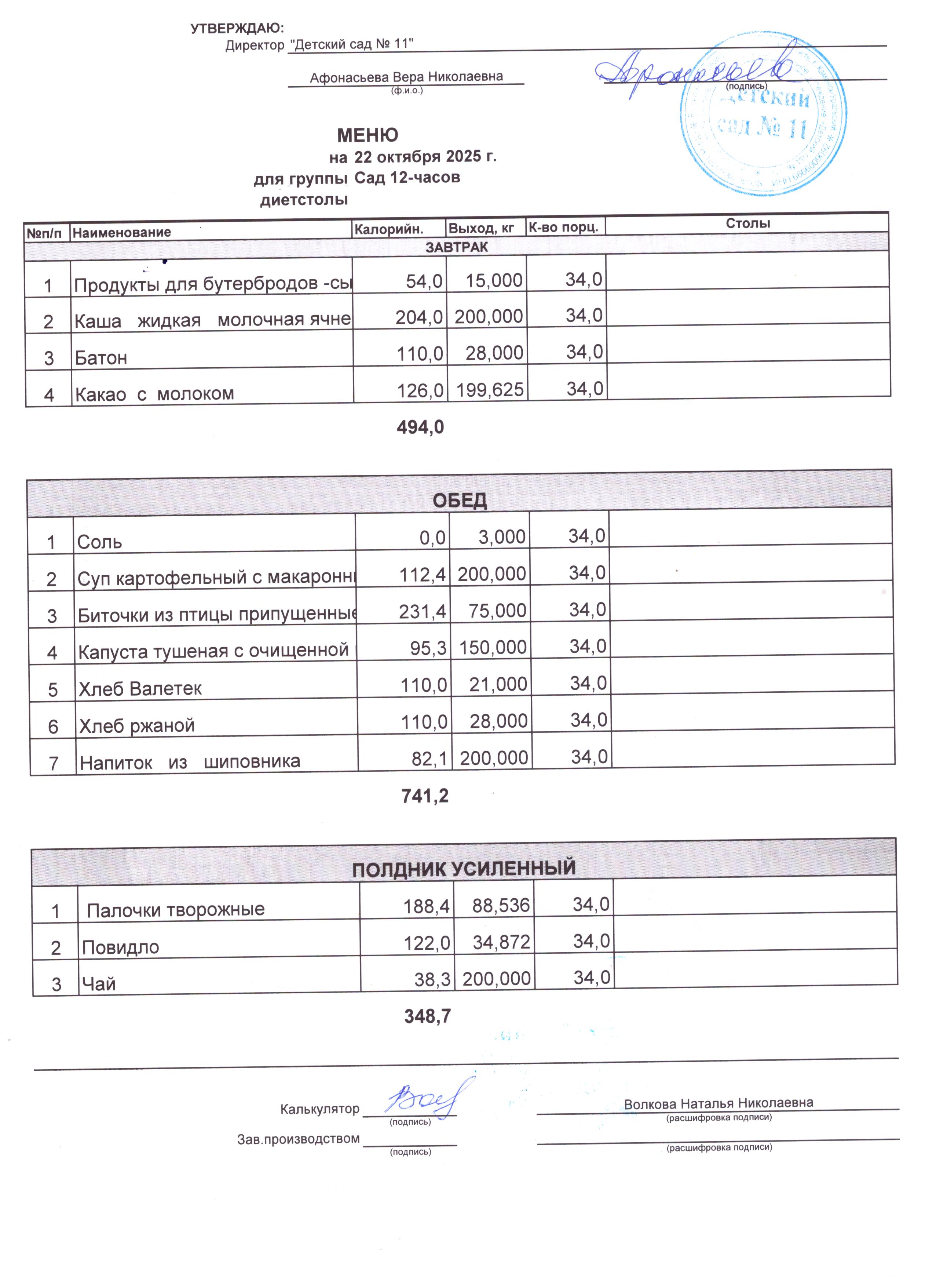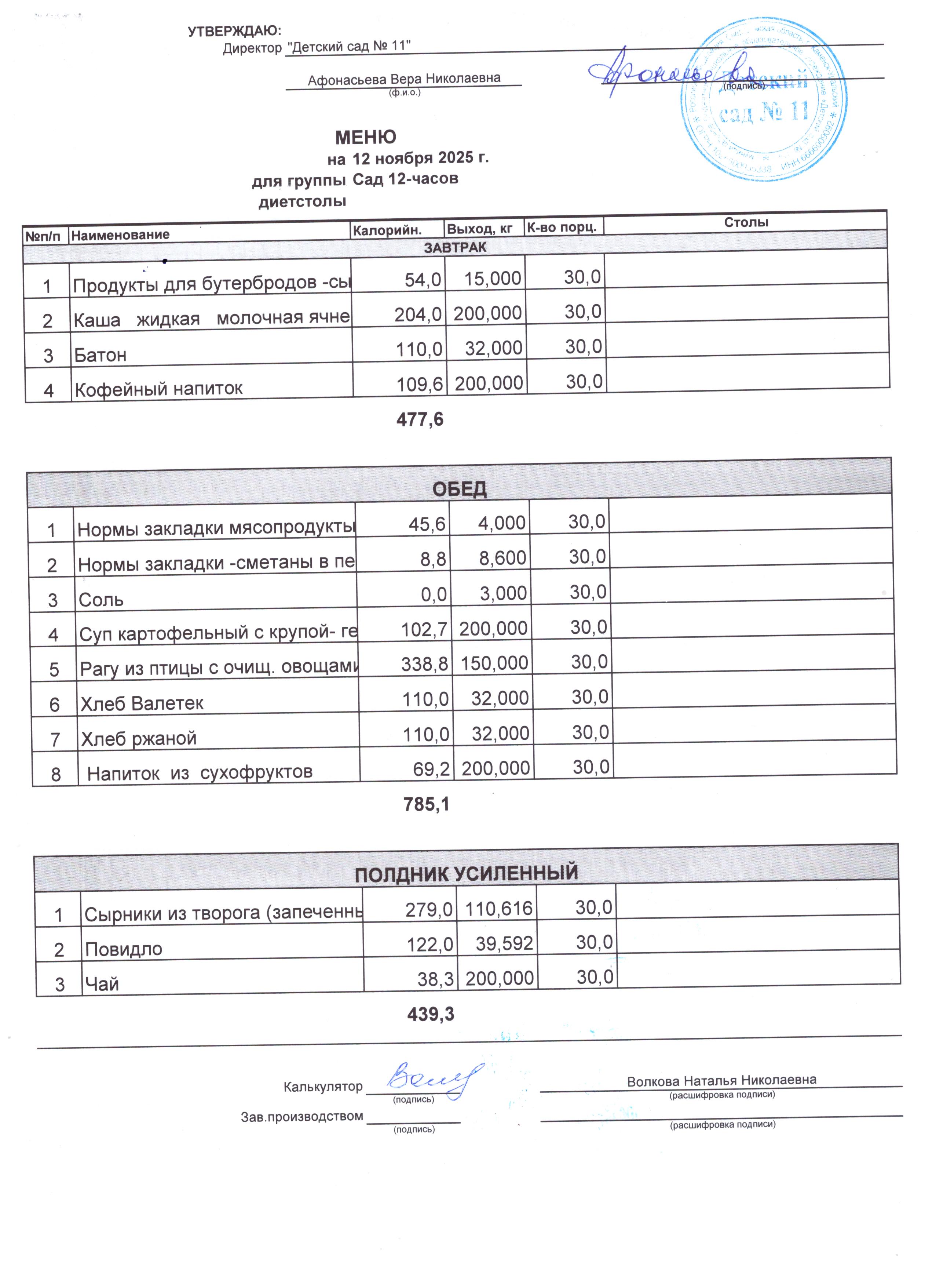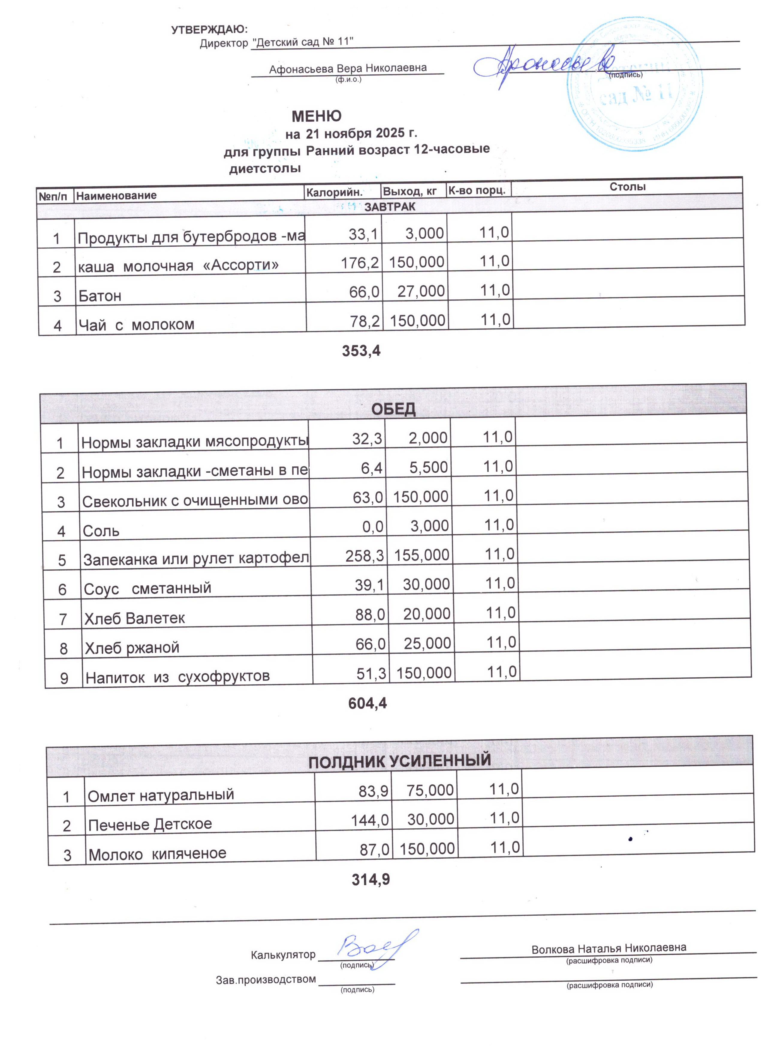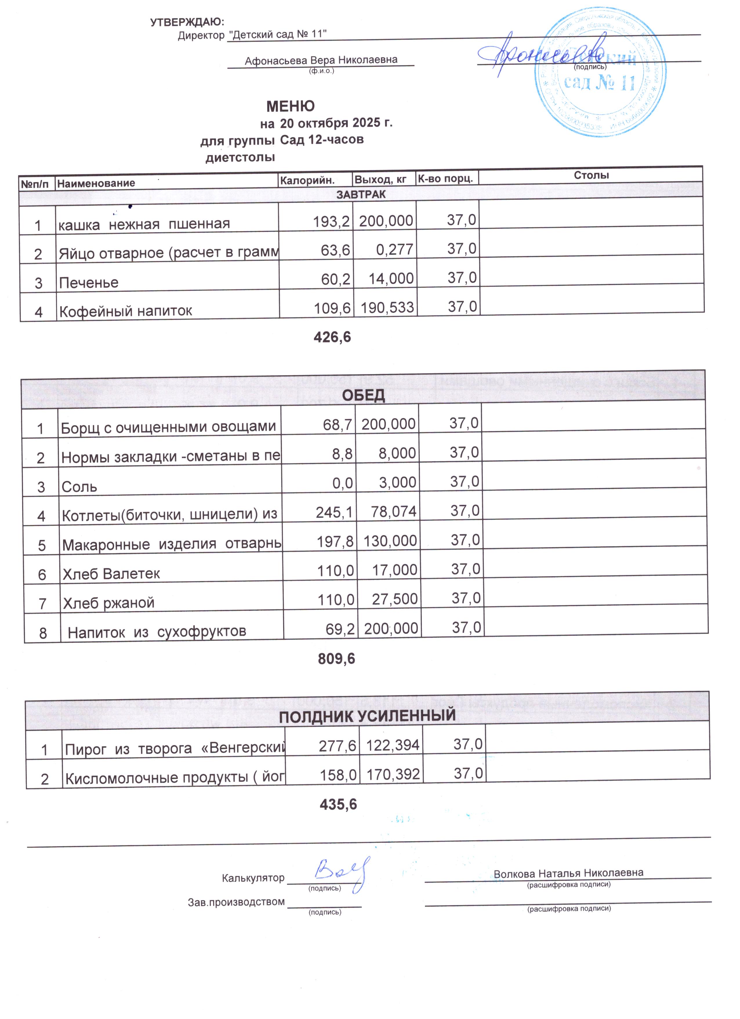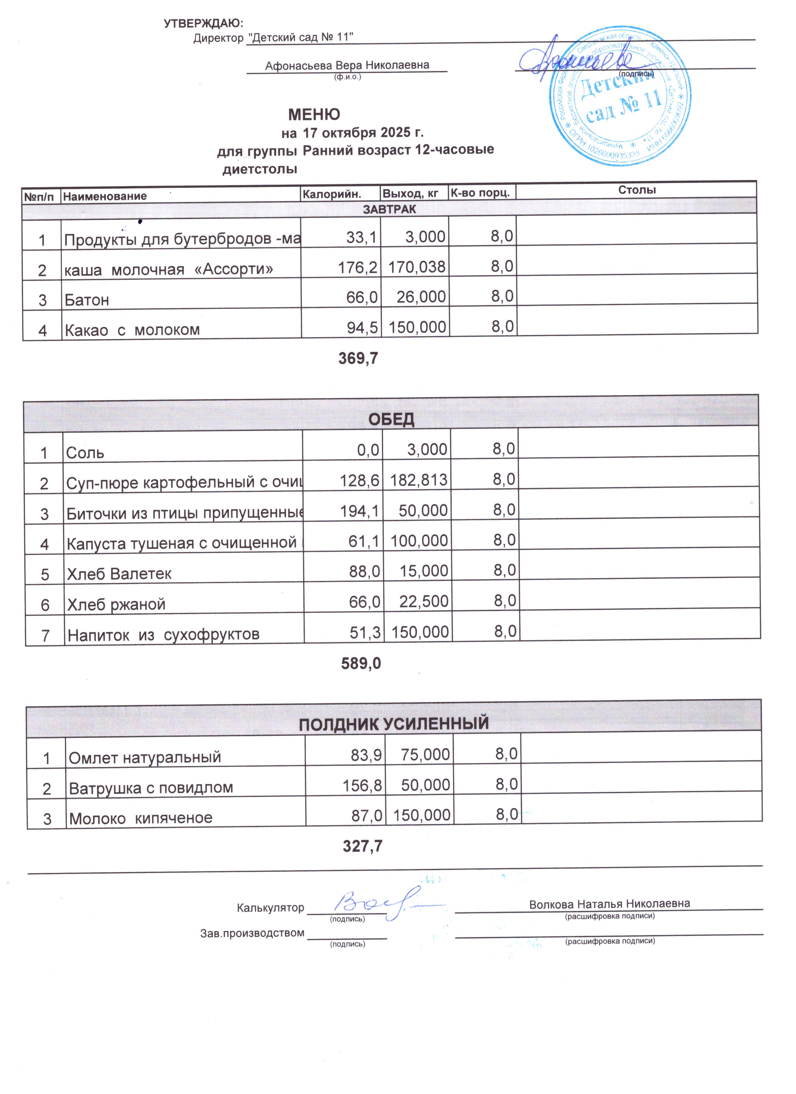 - Соки, фрукты, кисломолочные напитки включены в усиленный полдник.