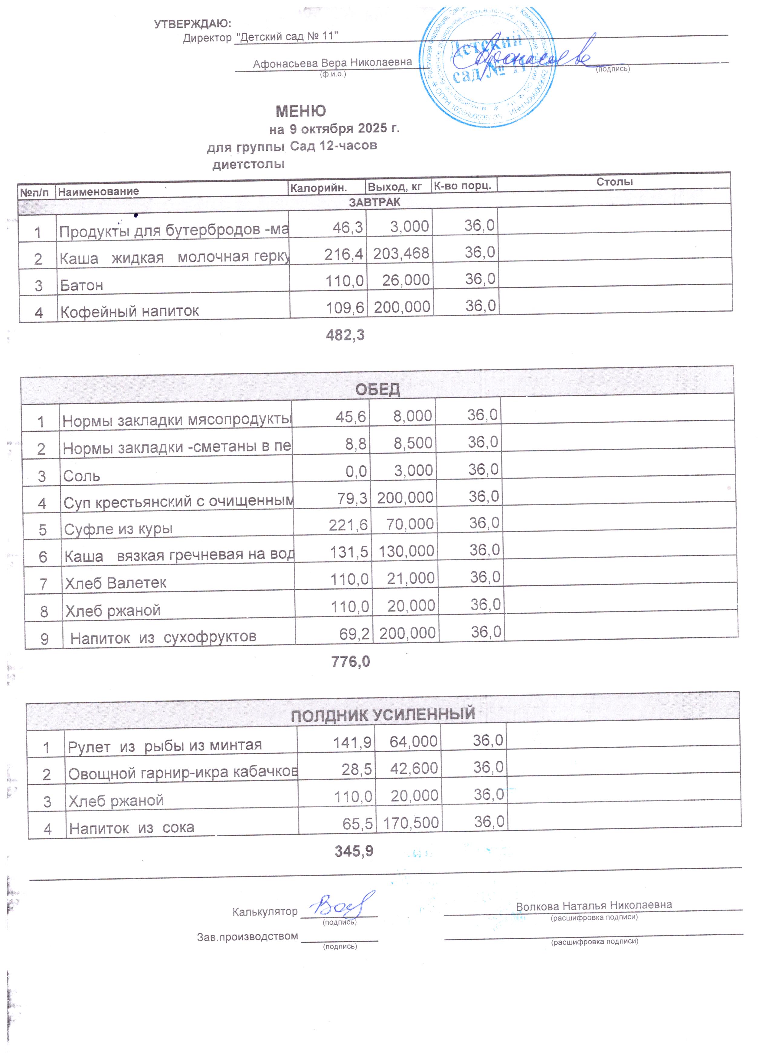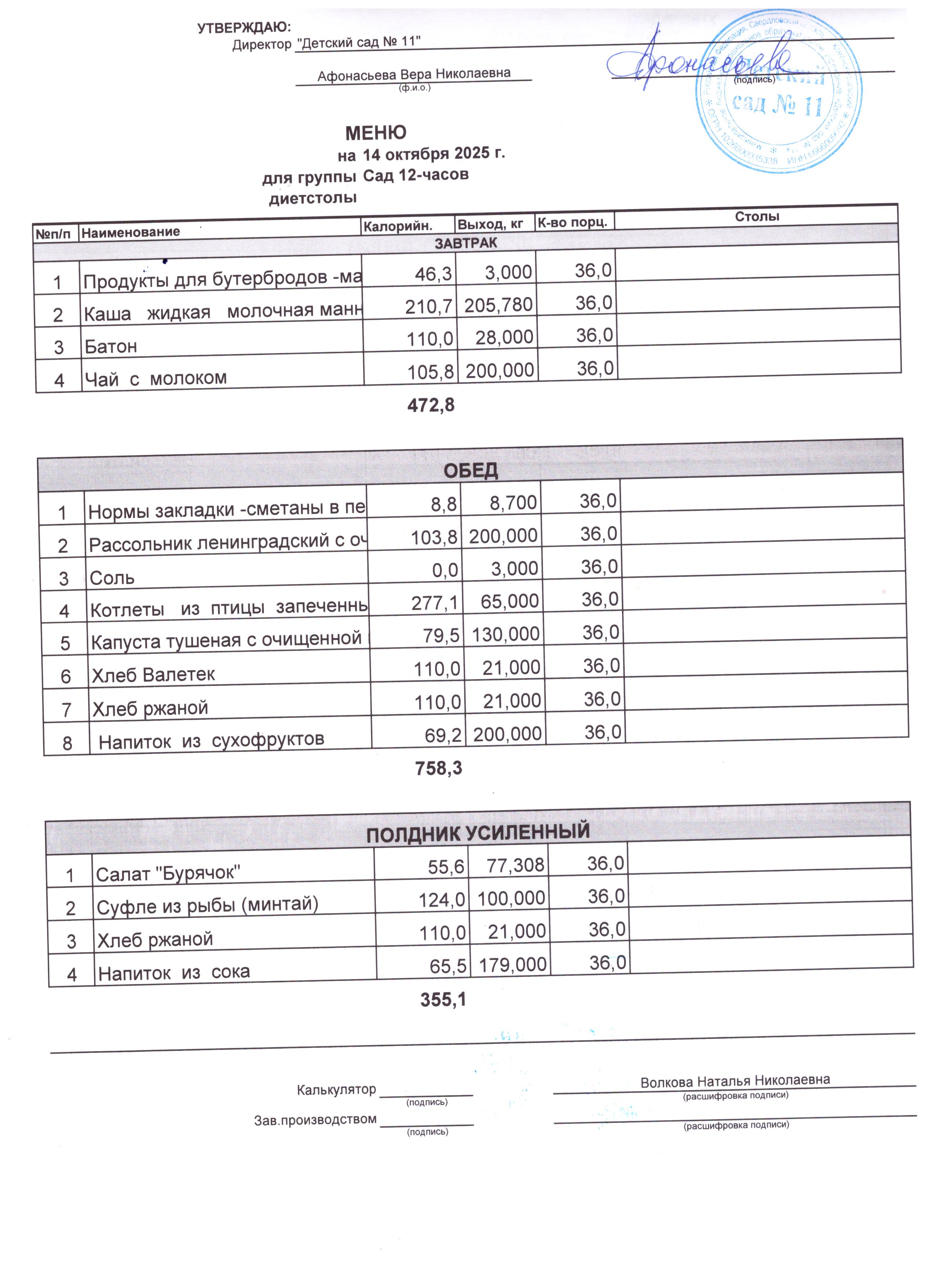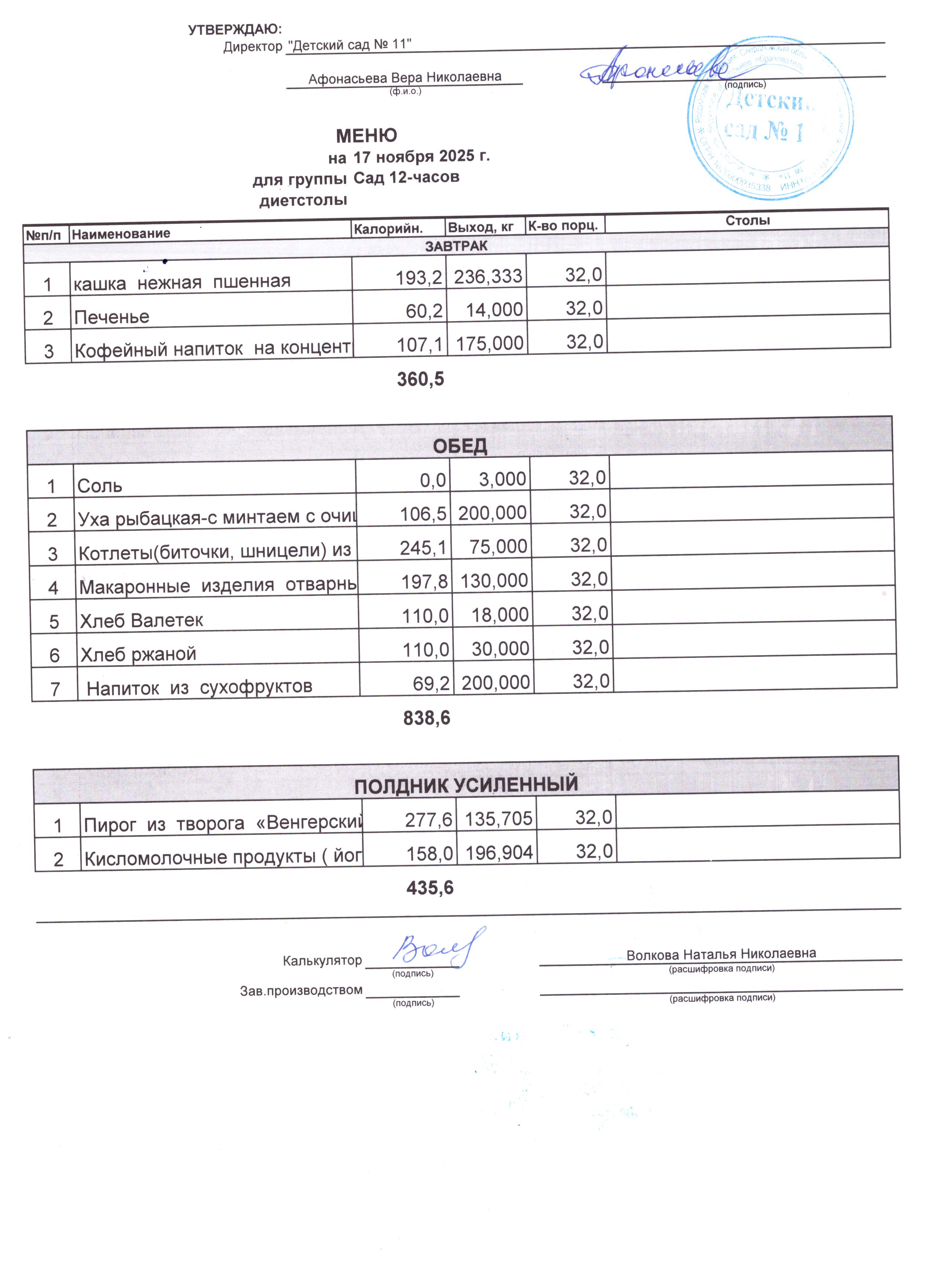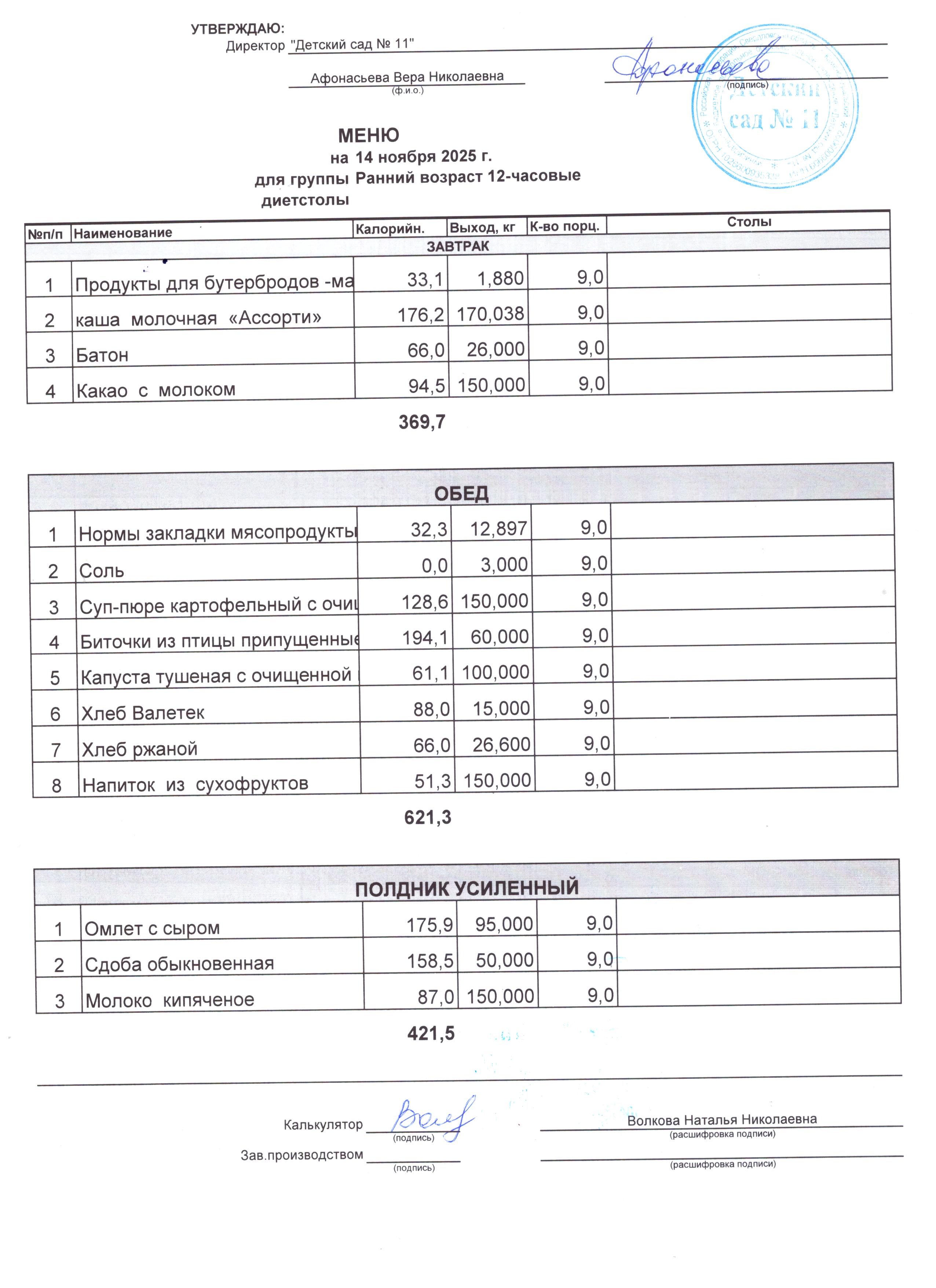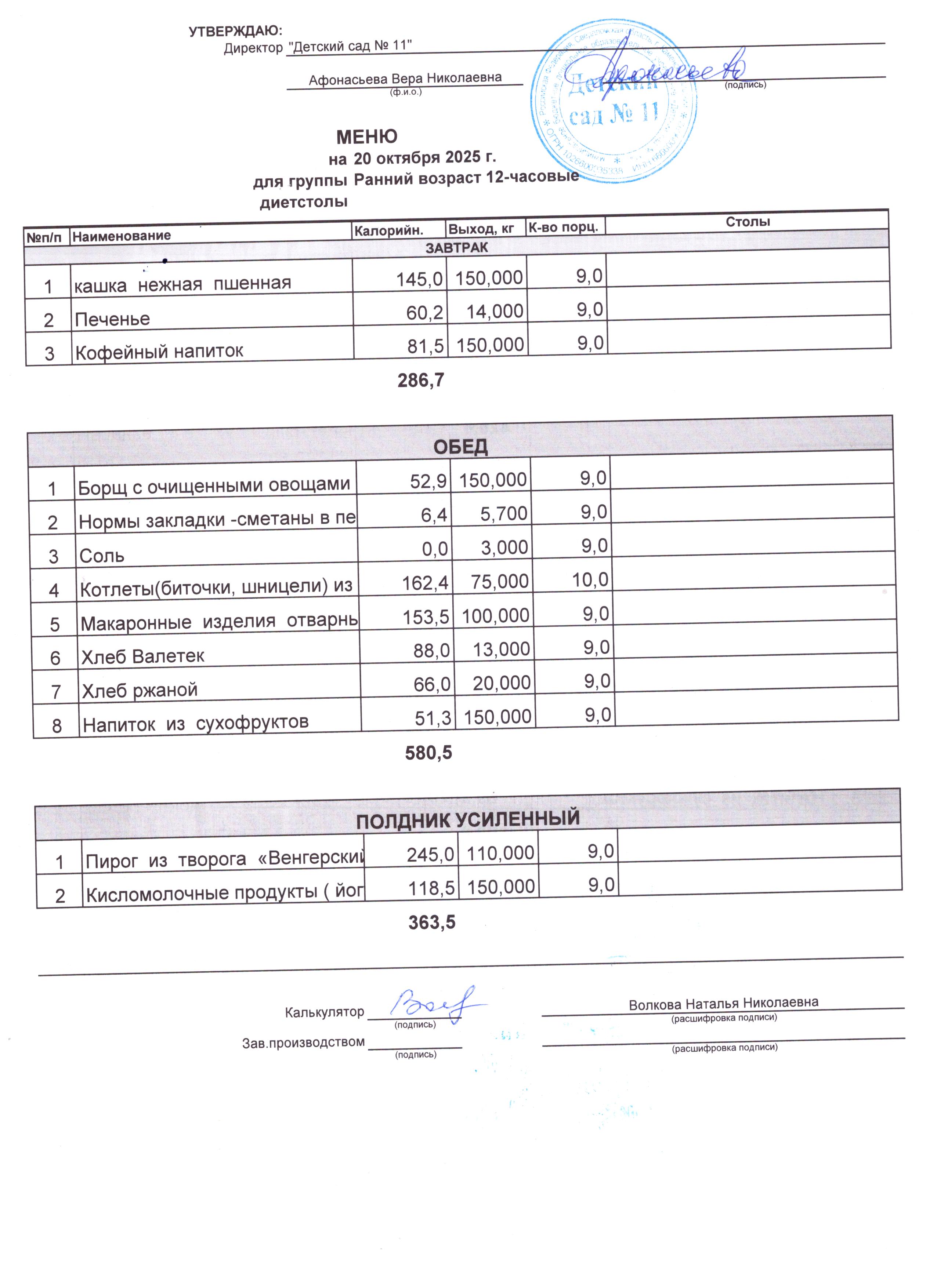- Соки, фрукты, кисломолочные напитки включены в усиленный полдник.