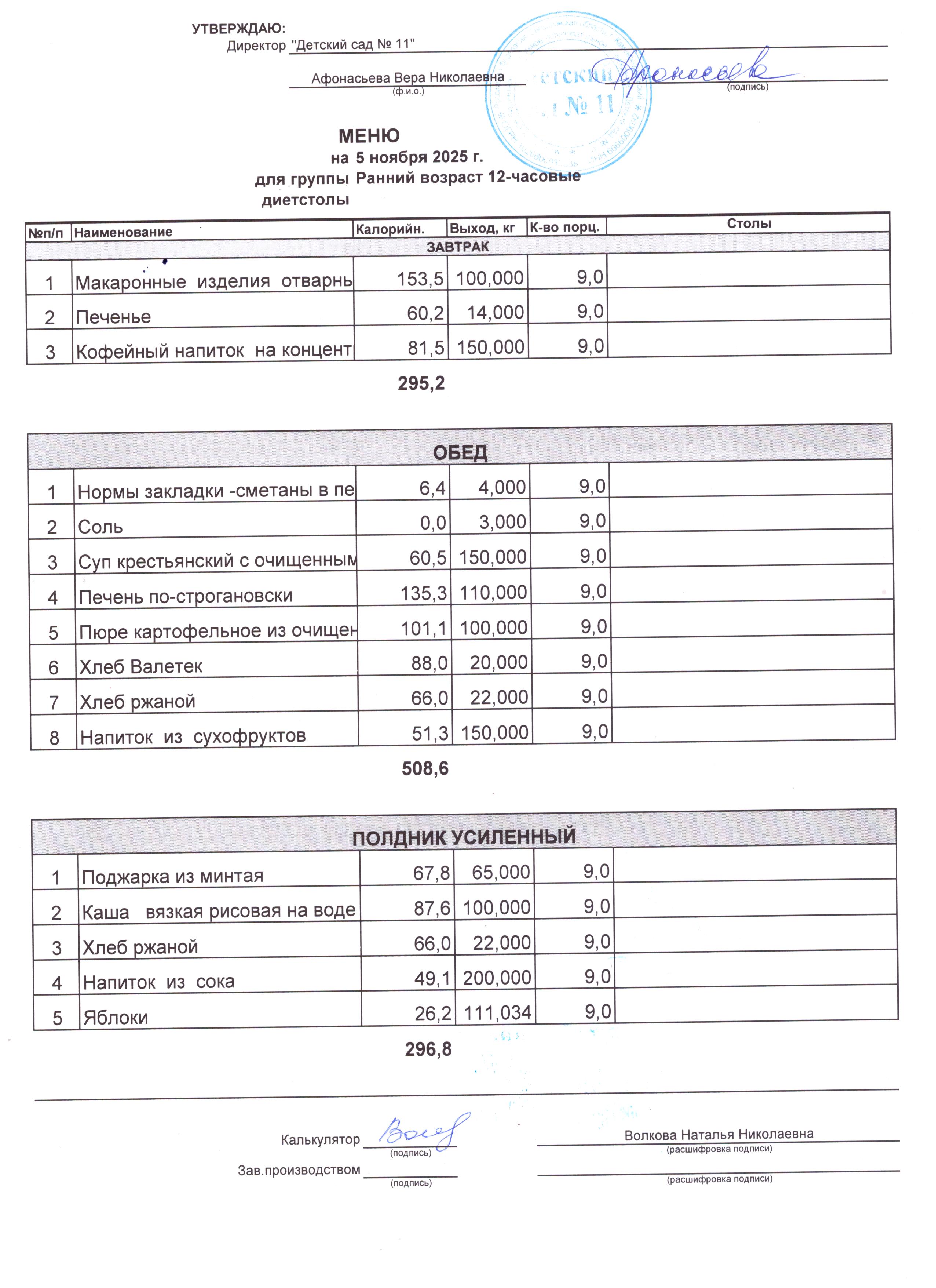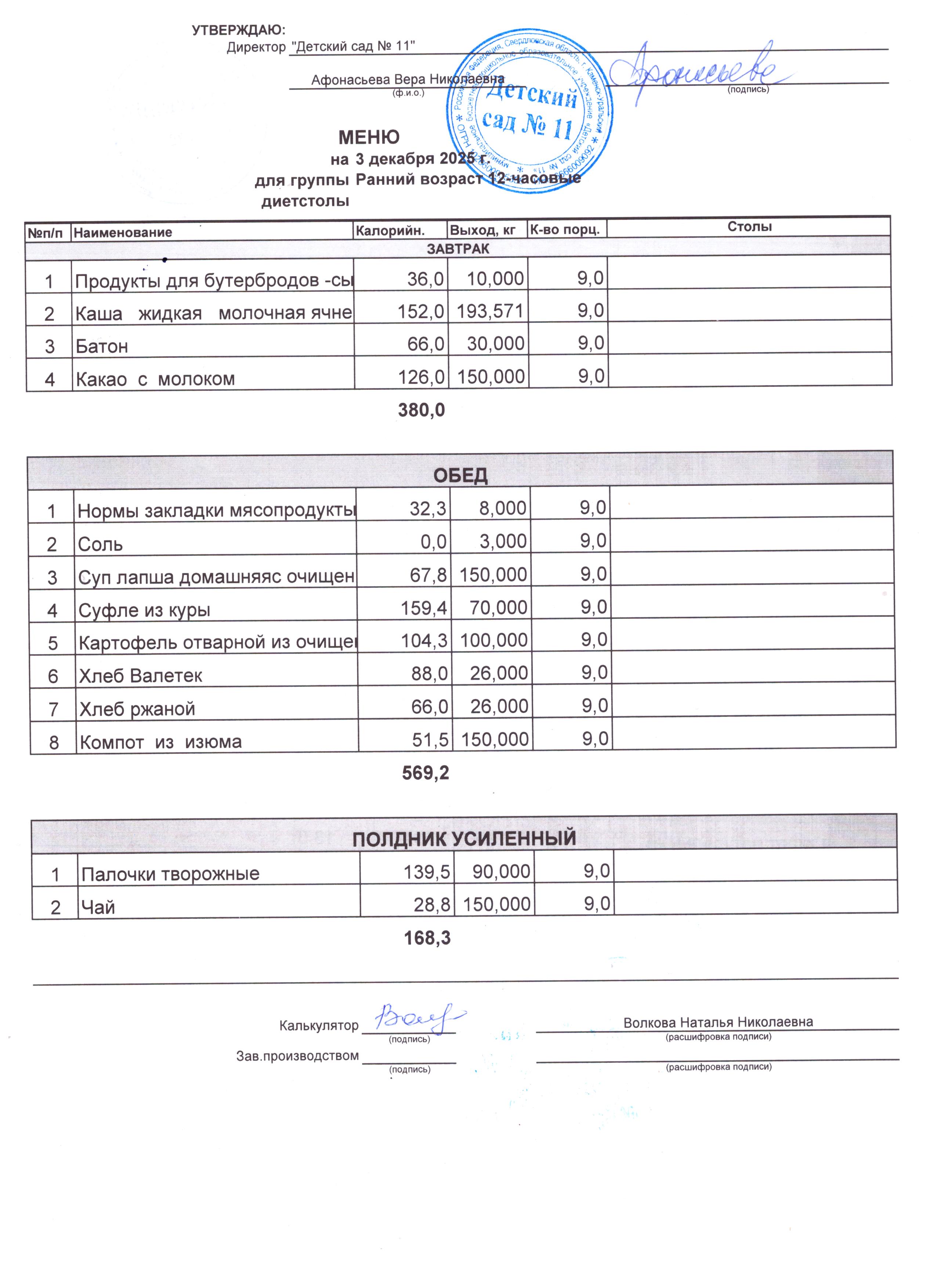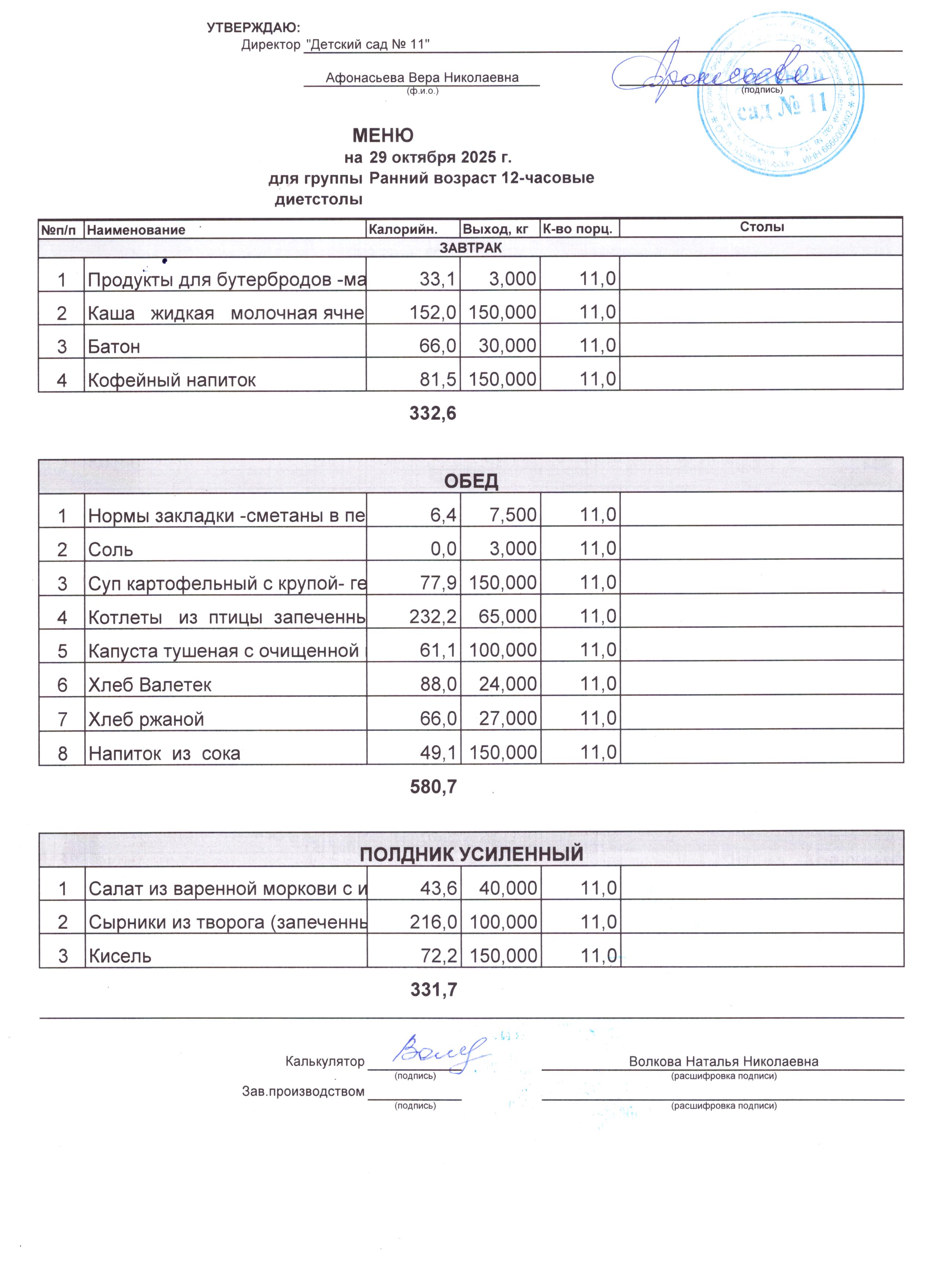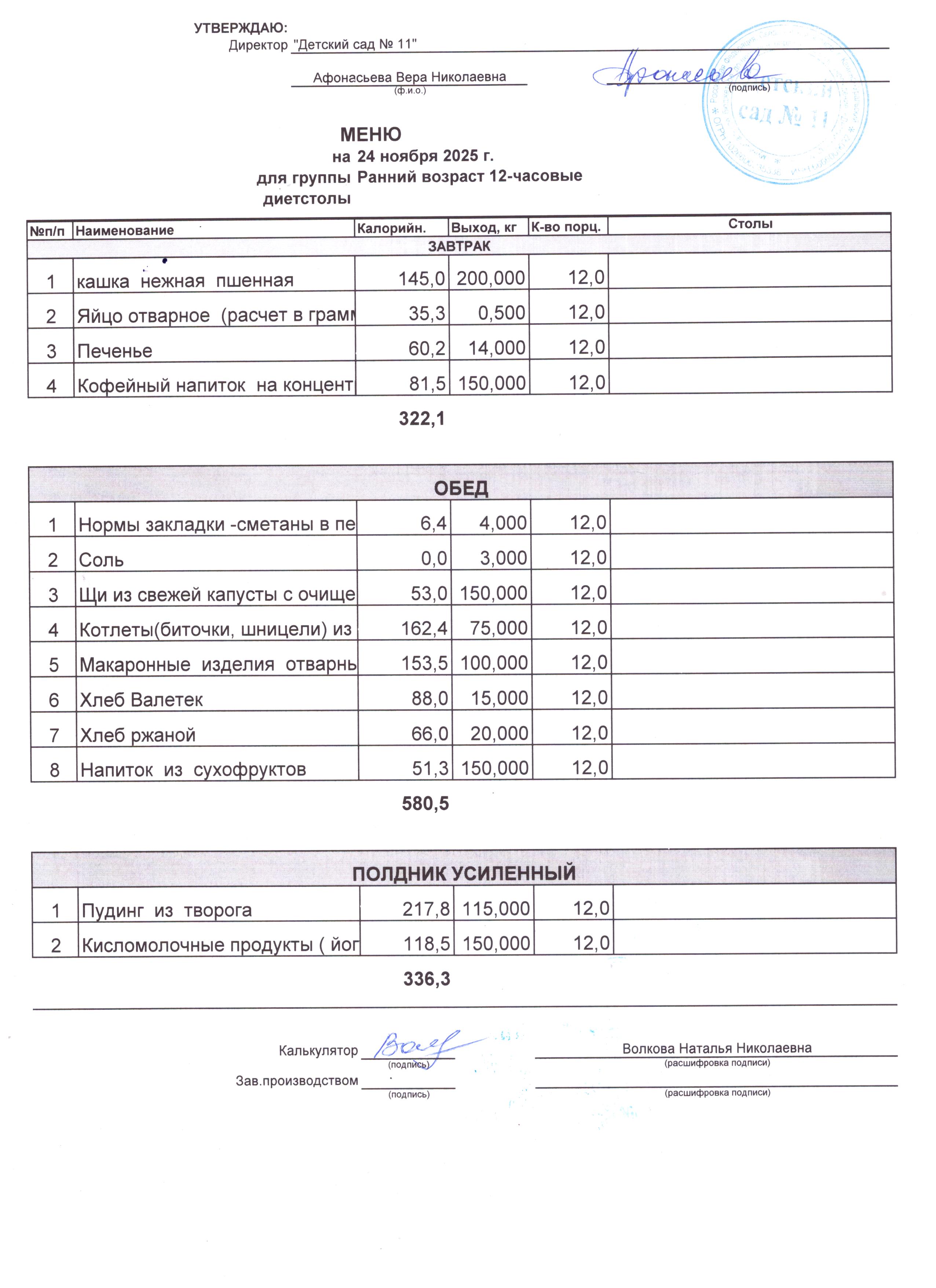 2) выдача детям рационов питания осуществляться в соответствии с утвержденными индивидуальными меню, под контролем ответственных лиц, назначенных в детском саду.