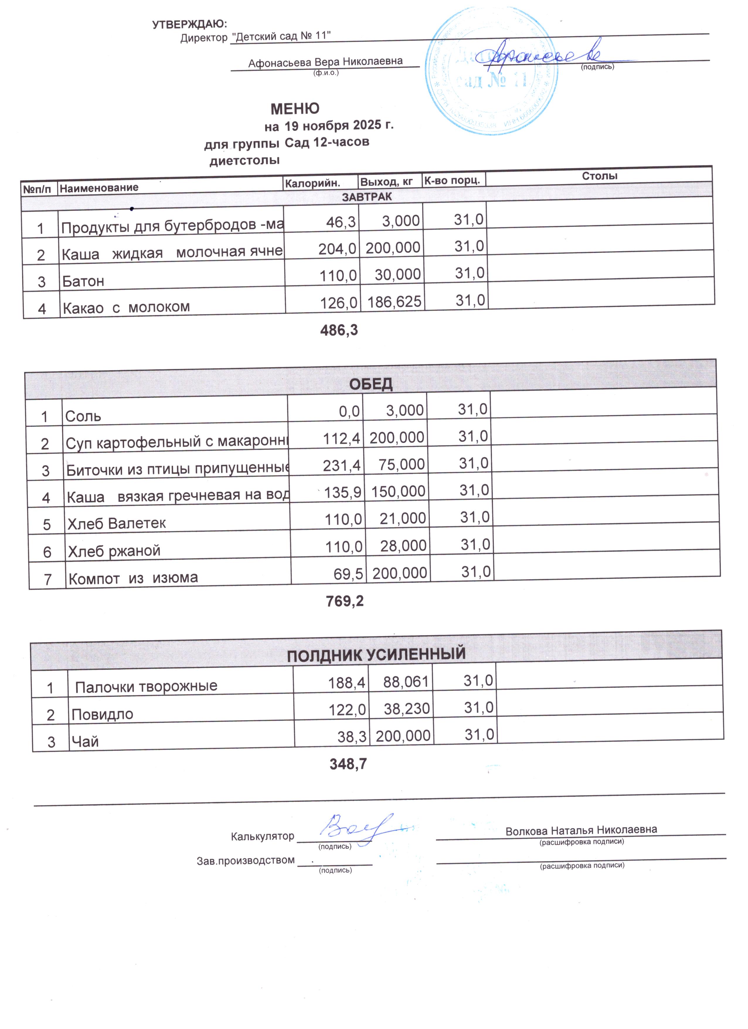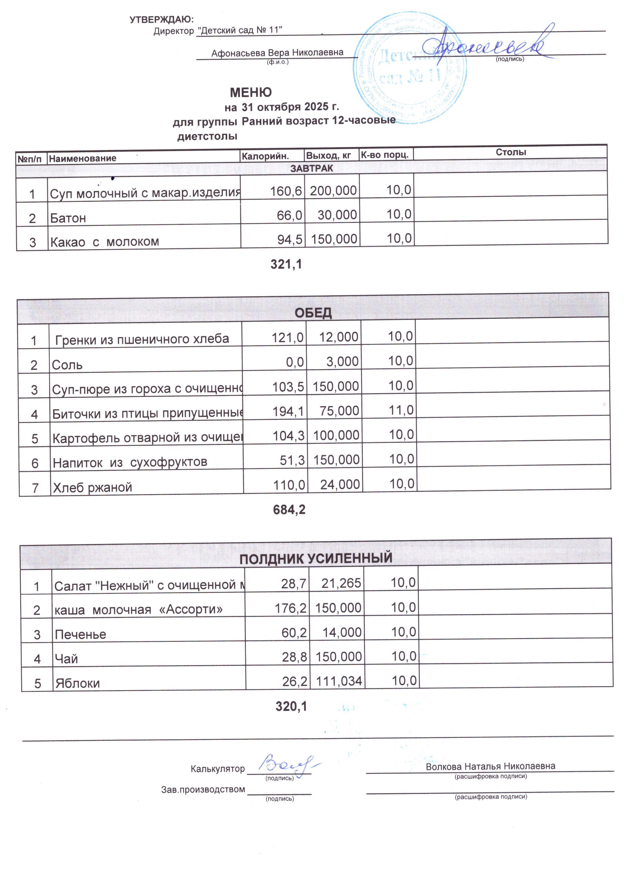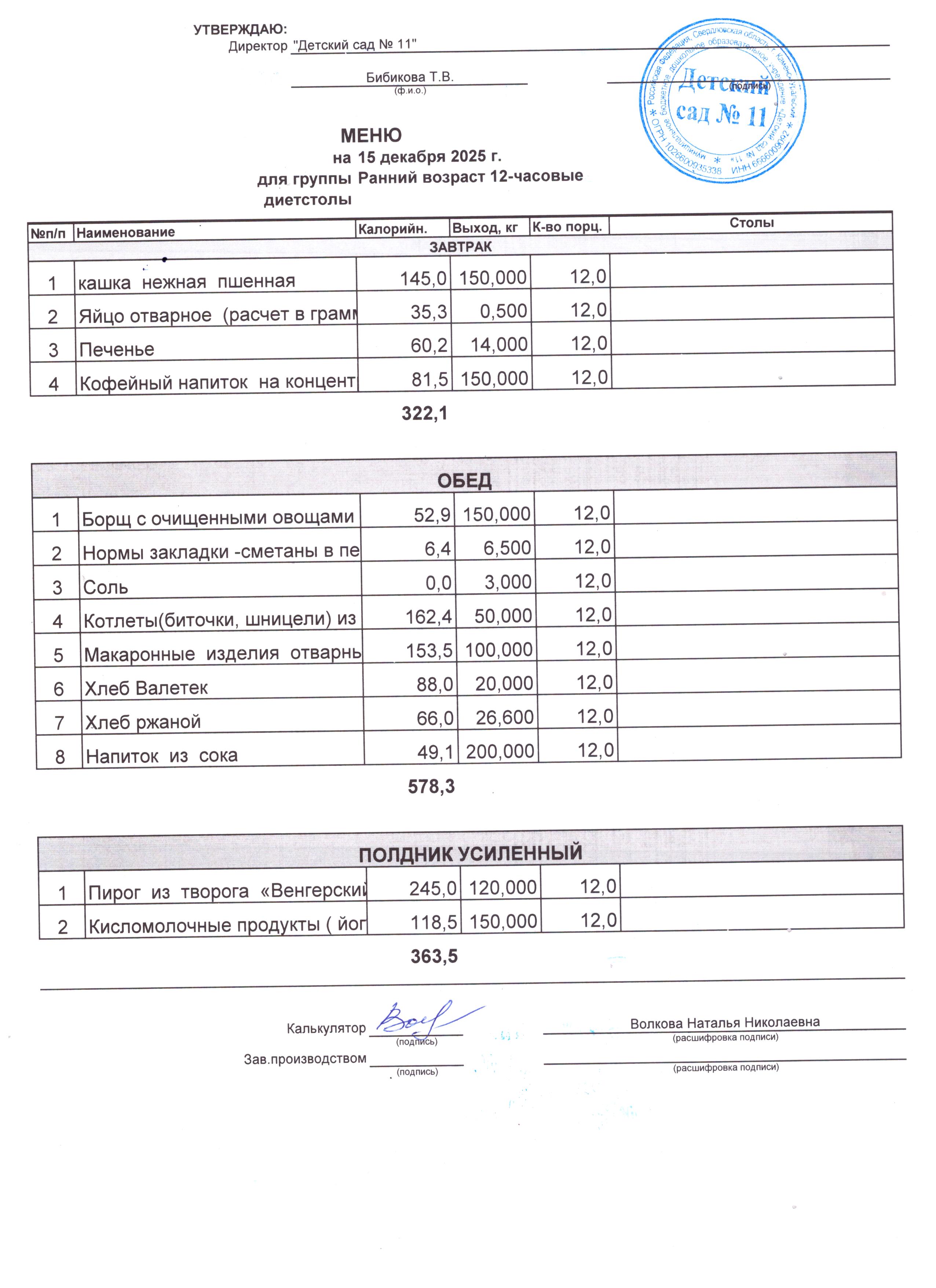 2) выдача детям рационов питания осуществляться в соответствии с утвержденными индивидуальными меню, под контролем ответственных лиц, назначенных в детском саду.