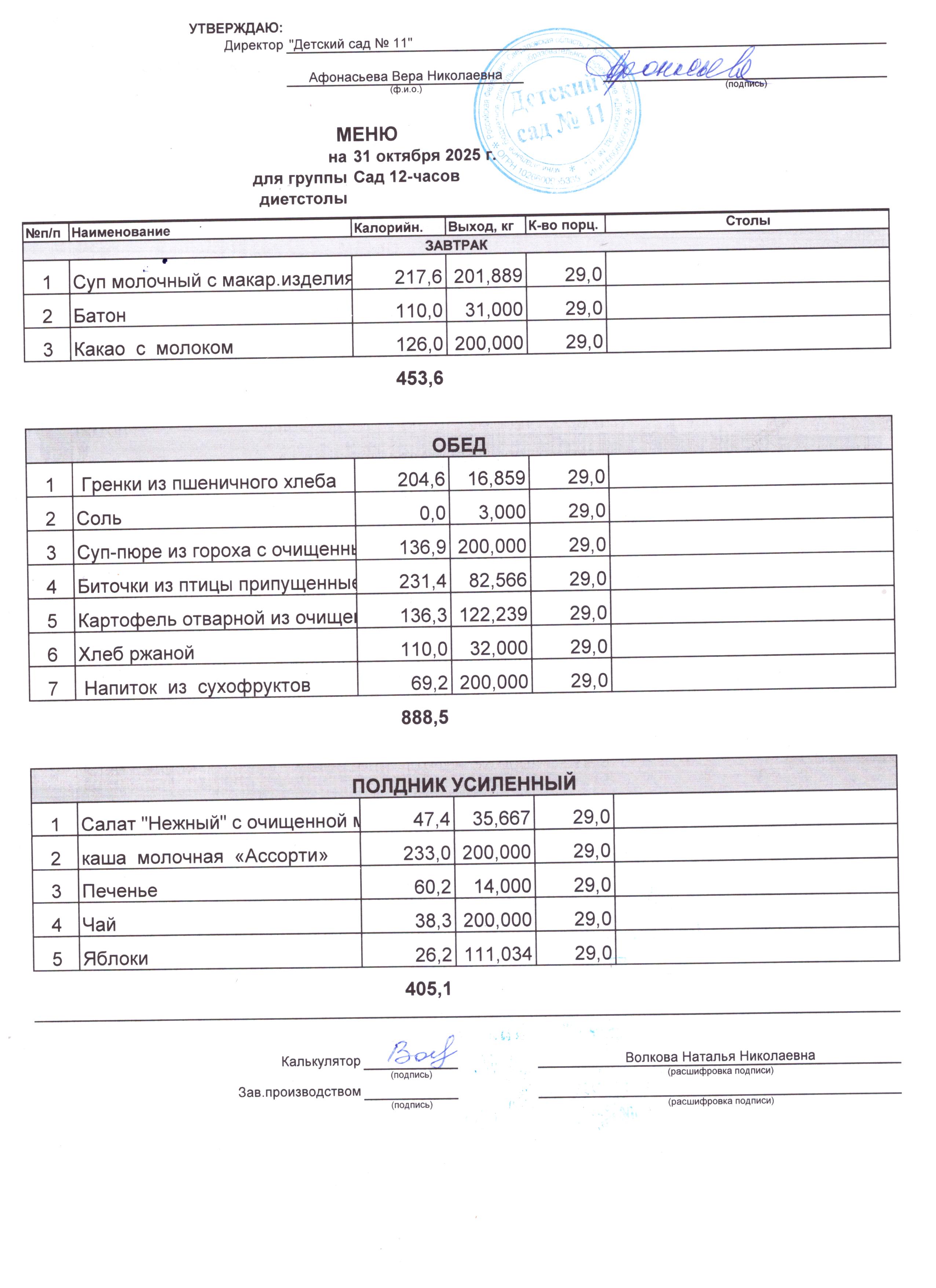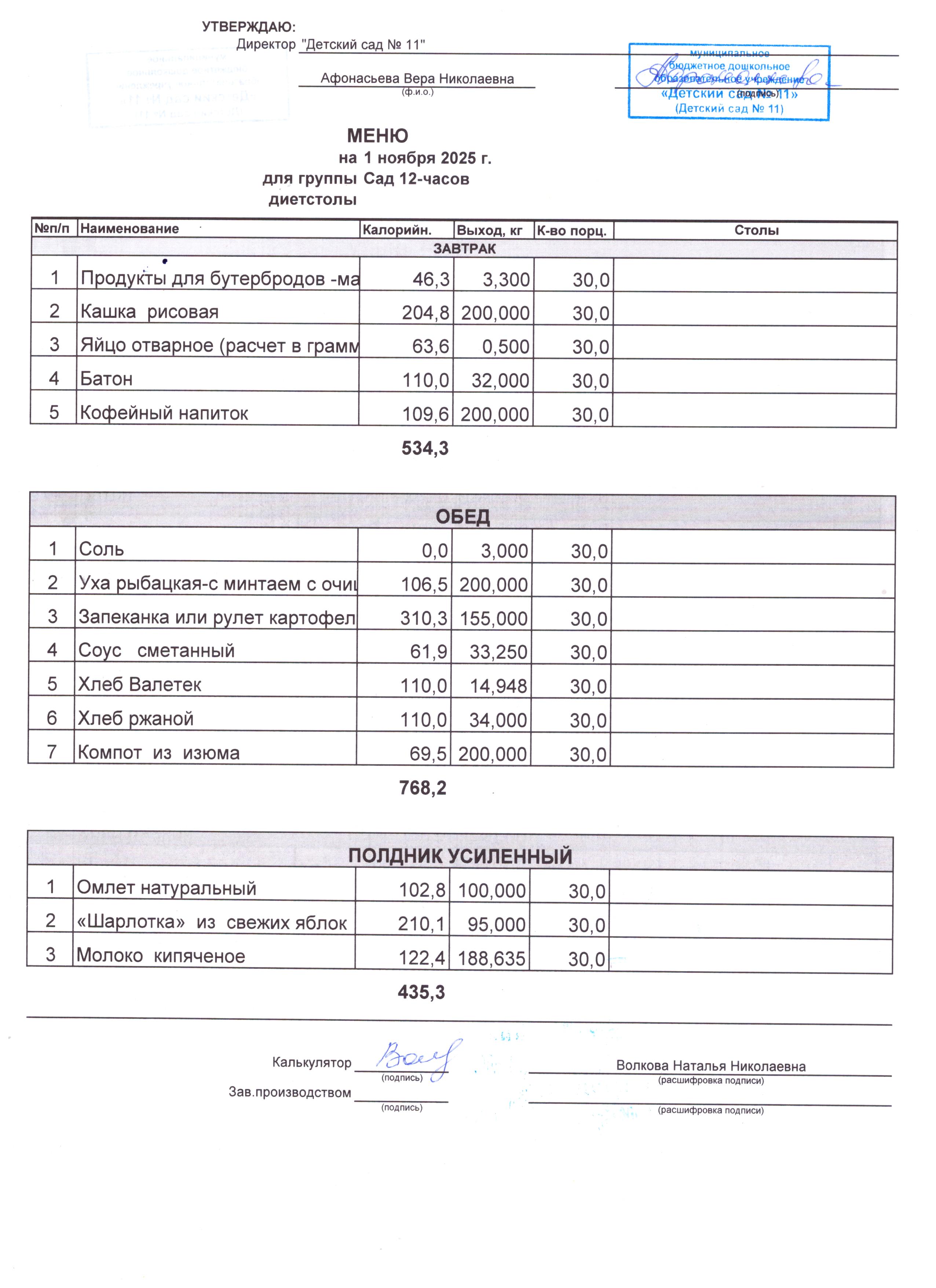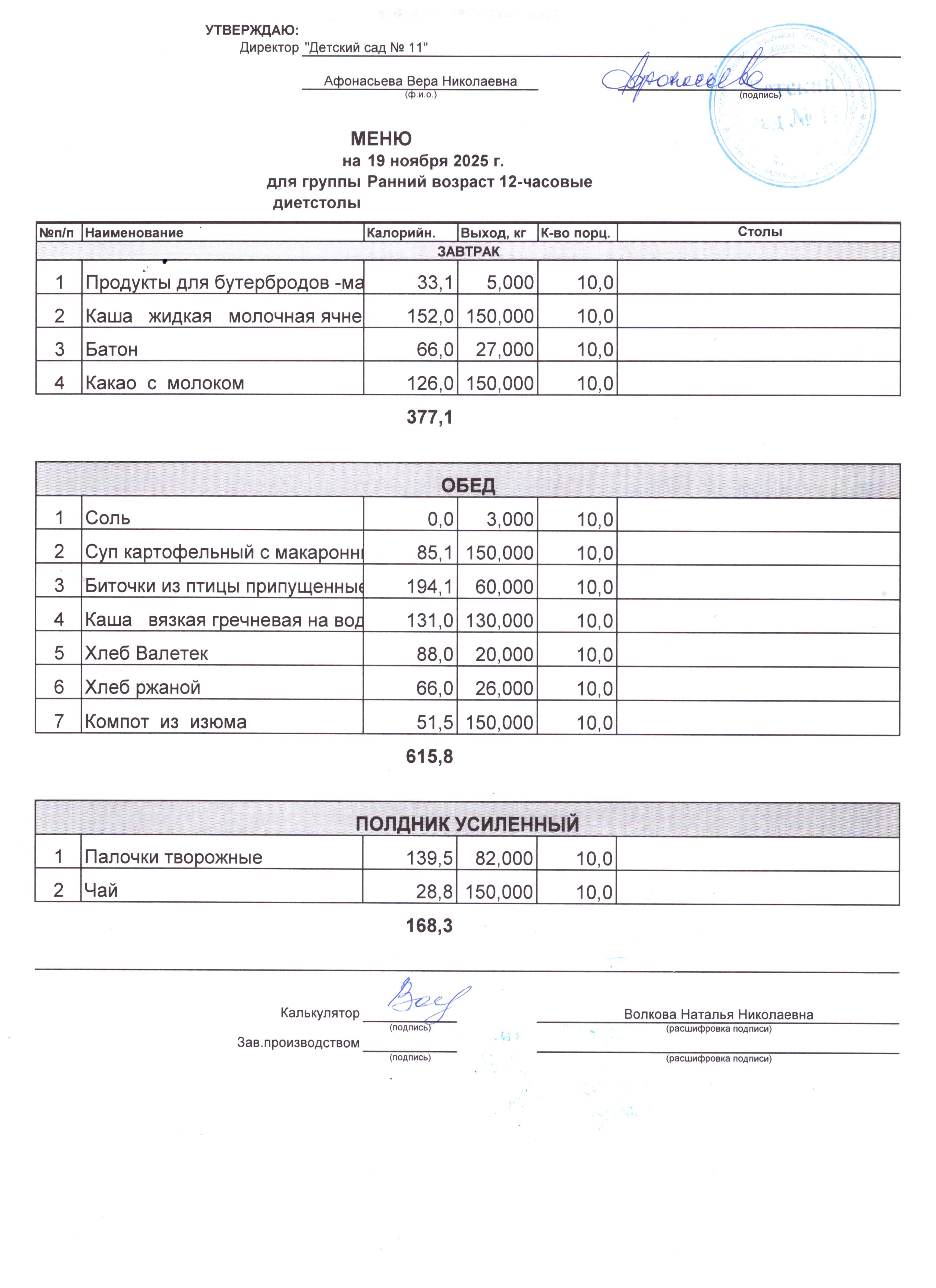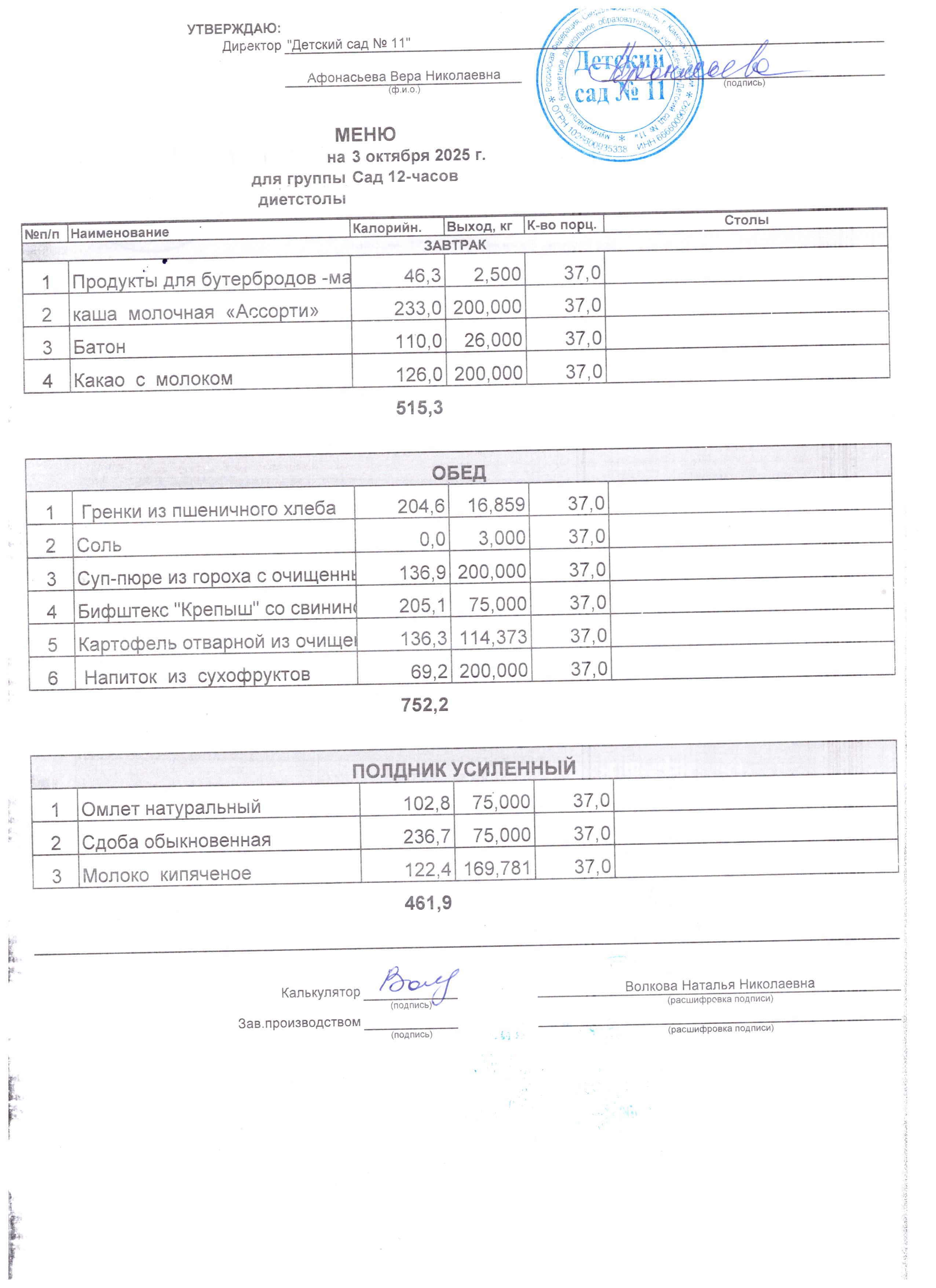 2) выдача детям рационов питания осуществляться в соответствии с утвержденными индивидуальными меню, под контролем ответственных лиц, назначенных в детском саду.